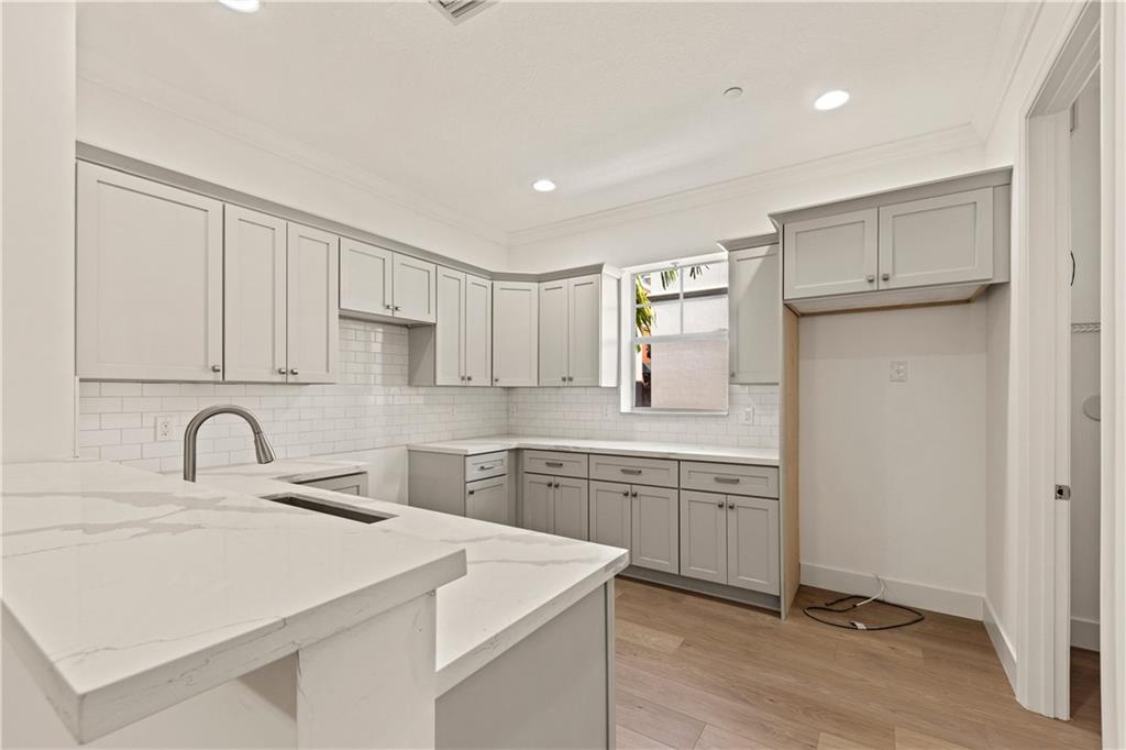 Completely remodeled 3 bedroom townhouse with en suite bathroom for each room plus a powder room is modern and updated.Some photos have been virtually staged.Located in east Fort Lauderdale you can walk and bike to stores, restaurants or the beach 1.5 miles away. New wood look luxury vinyl flooring is waterproof and durable.Designer kitchen features grey,shaker style cabinets,large stainless sink,brand new insinkerator and calacatta quartz countertops with a white subway tile backsplash.Dining options include counter seating plus dining area.Large laundry room off kitchen has a pantry.All bathrooms feature custom tile inlays,new toilets,new faucets and light fixtures.Impact windows.Fully gated complex has security.Community pool.Appliance order could not be fulfilled due to Covid. AC 2018