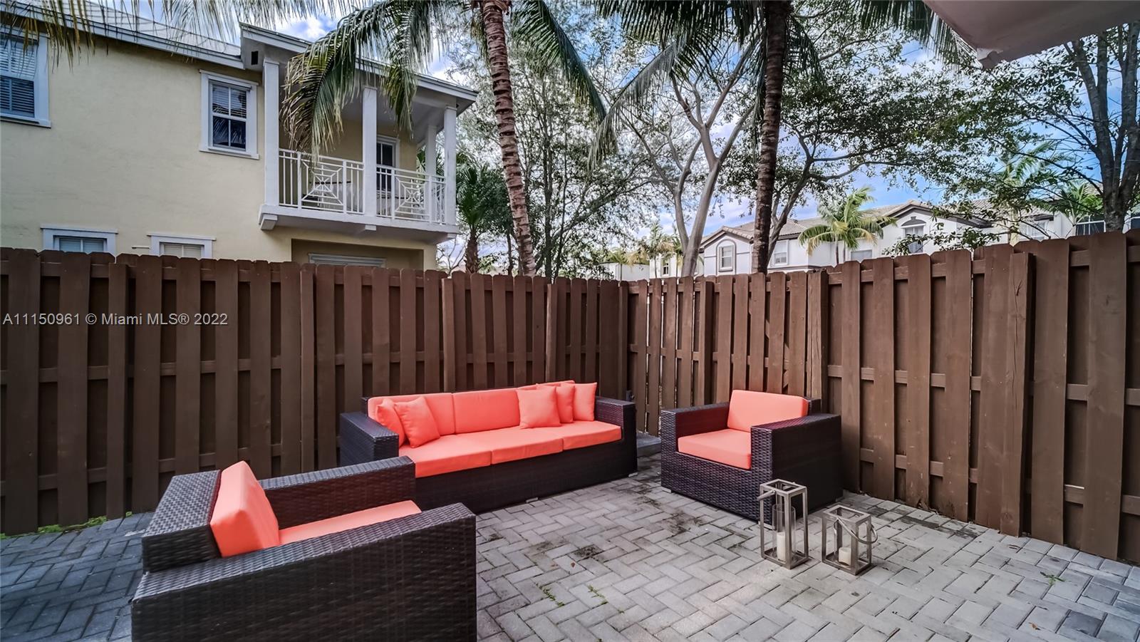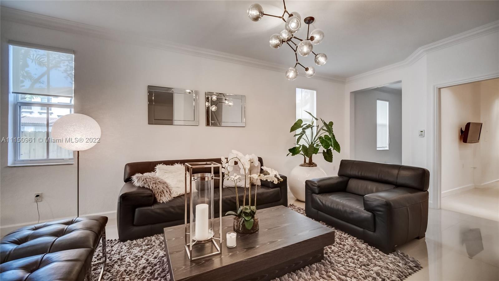 Whether you need a vacation home or a primary home in South Florida, this is the place for you. This 2 story, 4 bedroom, 3 and a half bathroom has 2 additional parking spots, and it's located right around the corner from the community pool and gym. Featuring a kitchen with stainless steel appliances and a wine fridge, 3 full bathrooms for the upstairs bedrooms, and a half bath to accompany the bedroom/den downstairs, balconies coming off of the master suite and one of the guest bedrooms and high quality furniture that is negotiable as a part of the sale. The unit has been maintained and reflects the cleanliness of a new home. This end unit is located in the quiet city of Doral, just minutes from the turnpike making a commute seamless. Come check out this home away from home!