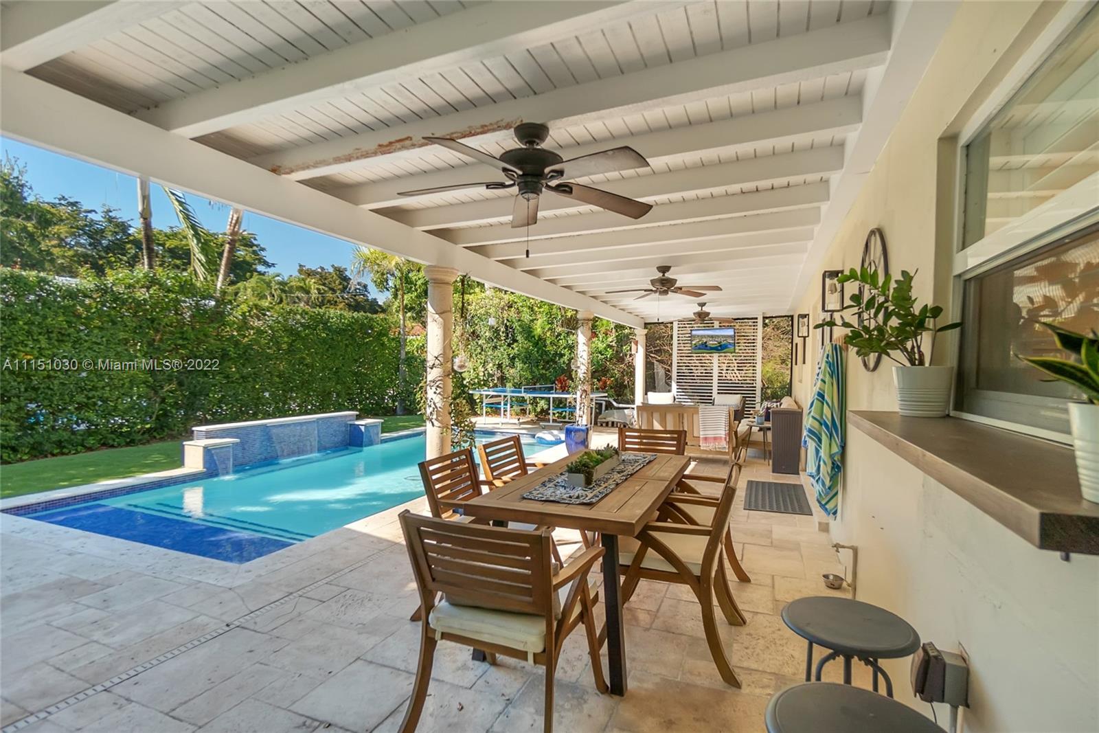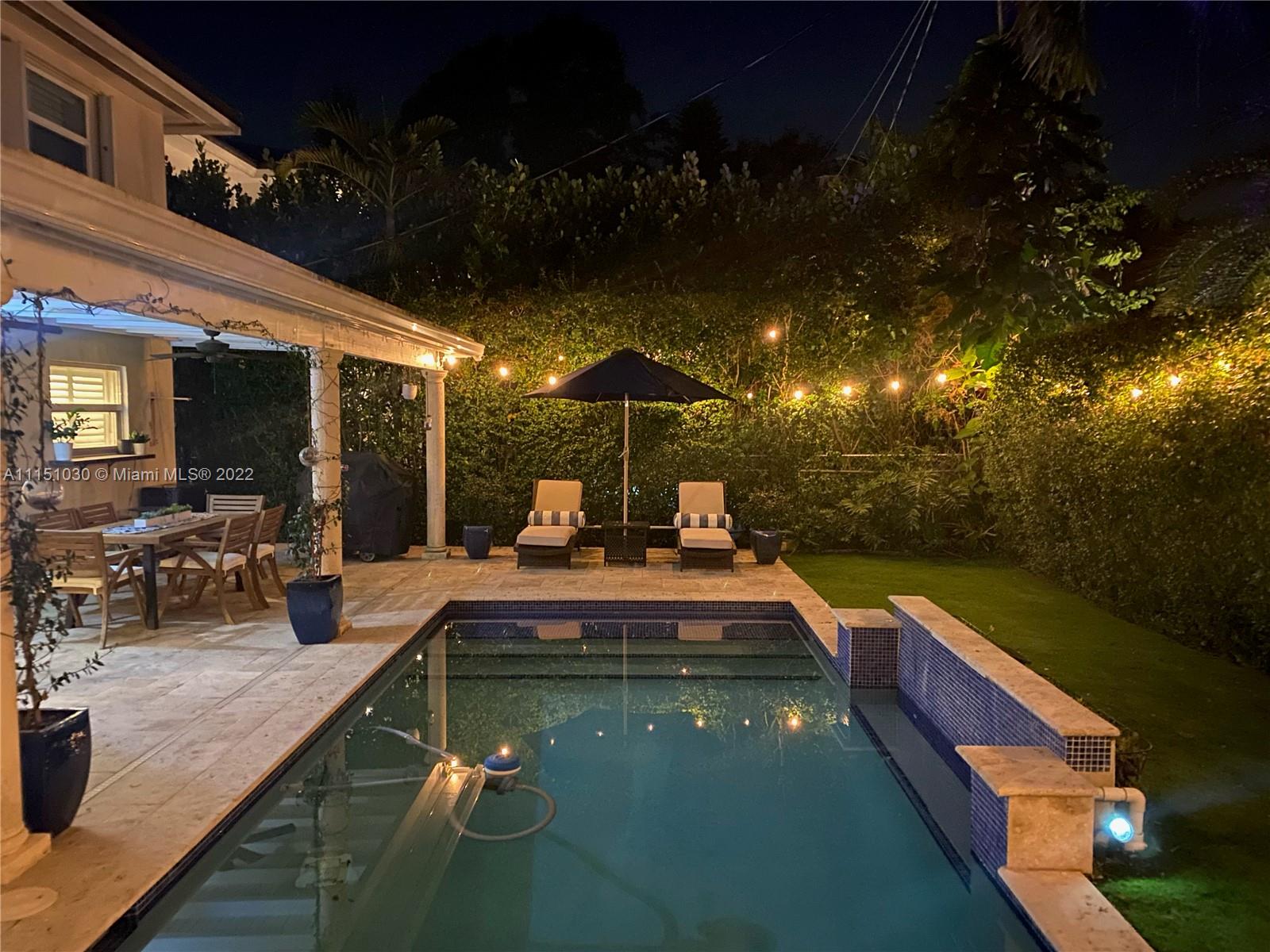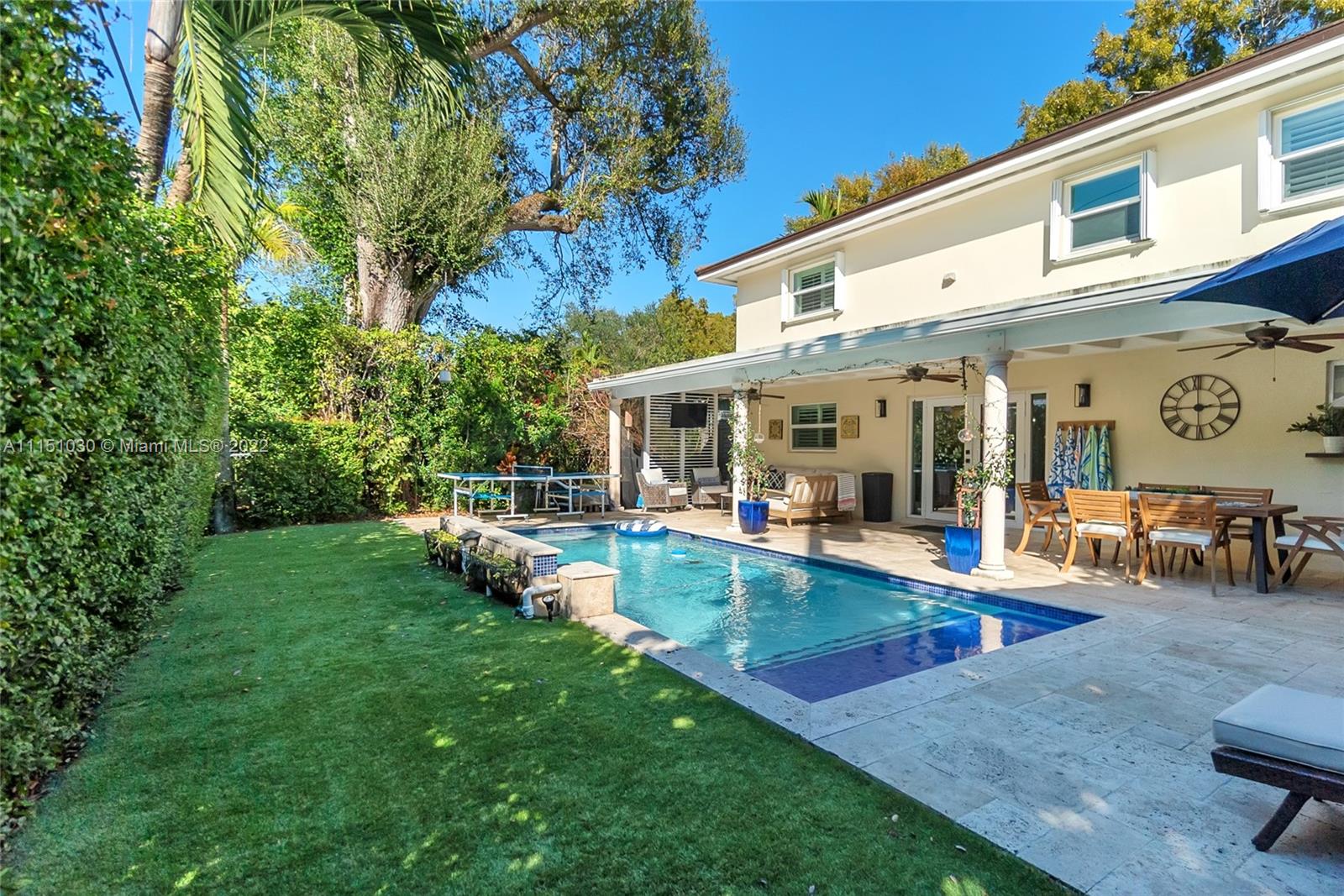 Perfect family home in prime SGables, quiet tree-lined street location! Impeccable turnkey 4bd/2.5 bath, 2 Story home is truly a gem. Boasting an open floor plan w/2,352 sqft under AC & 2,700 sqft total (per owner). Ground floor has a fantastic layout, featuring wainscoting in dining, living and parlor/office w/built-ins. Kitchen features quartz countertops, SS appliances, & prep island. Wine cooler/bar area complete this great space for entertaining. Garage has been converted to a playroom & gym. Covered patio & pool. Upstairs you will find 4 bd, 2 full baths, & laundry. Marble floors on the 1st floor, wood upstairs. Impact windows & doors, partial accordion shutters, 2 ACs, & on demand water heater. Security gate, lighting, & brick driveway. Located in SunsetElemDistrict. OPEN 1/30 1-330