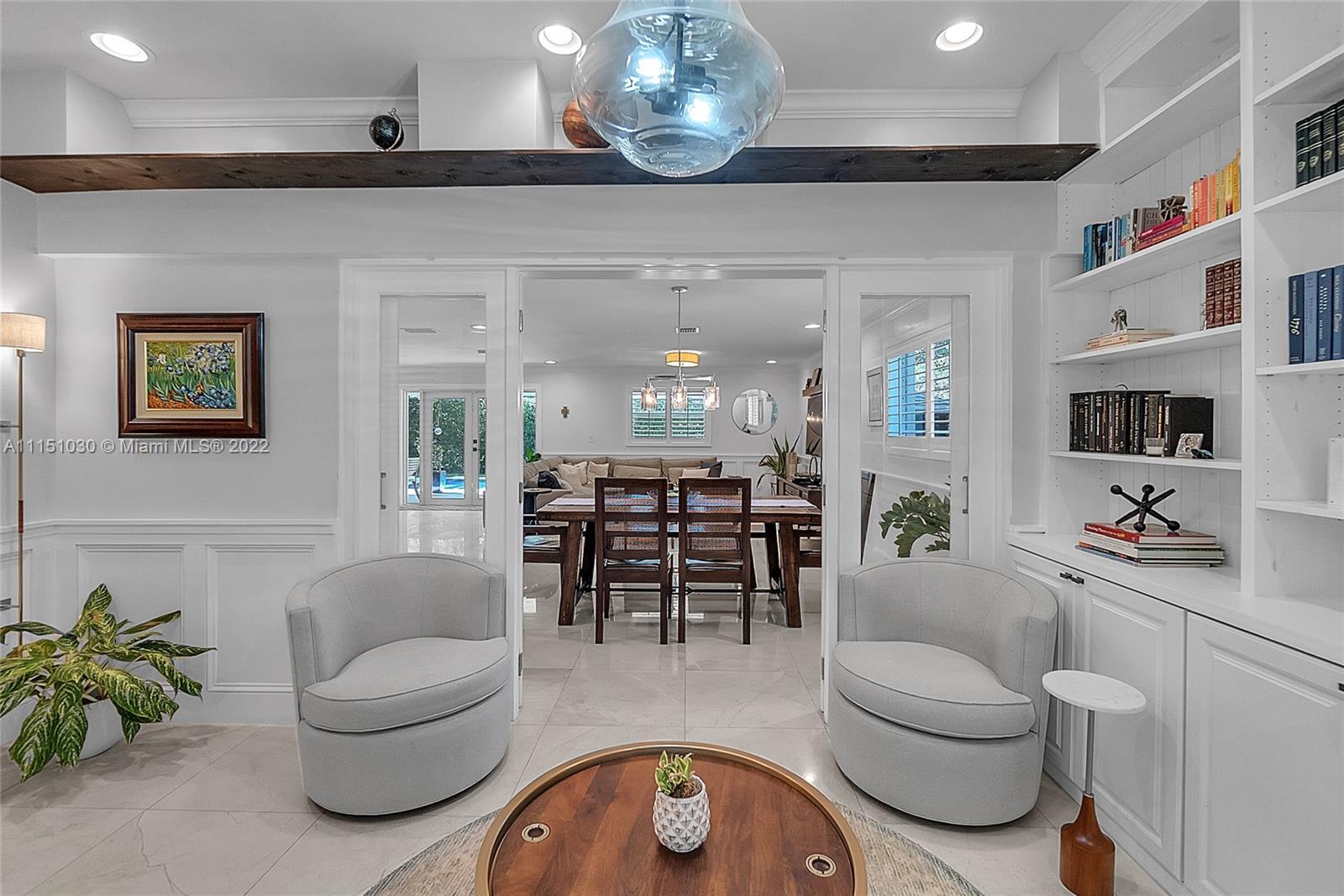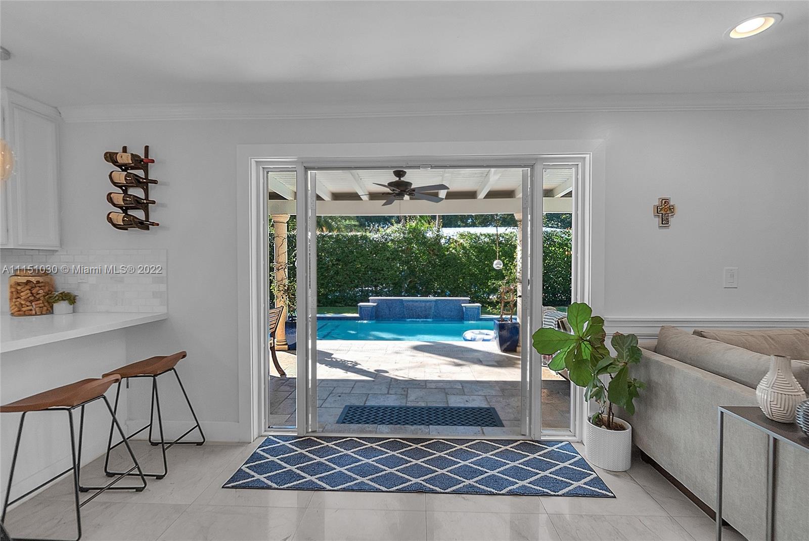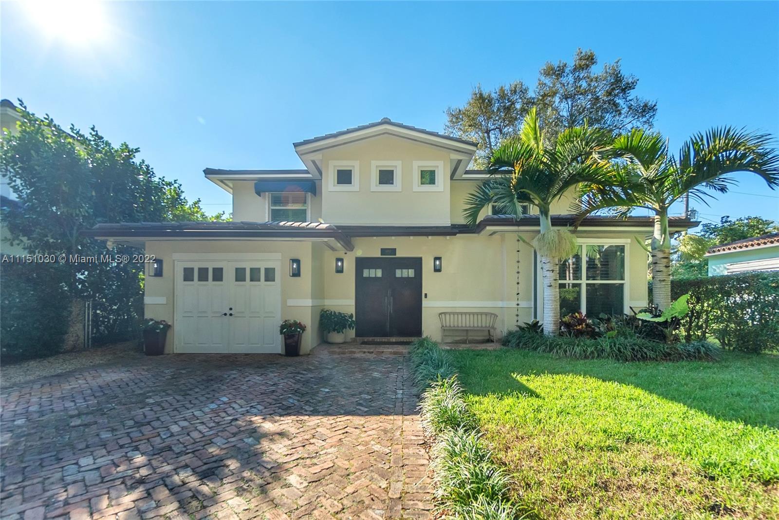 Perfect family home in prime SGables, quiet tree-lined street location! Impeccable turnkey 4bd/2.5 bath, 2 Story home is truly a gem. Boasting an open floor plan w/2,352 sqft under AC & 2,700 sqft total (per owner). Ground floor has a fantastic layout, featuring wainscoting in dining, living and parlor/office w/built-ins. Kitchen features quartz countertops, SS appliances, & prep island. Wine cooler/bar area complete this great space for entertaining. Garage has been converted to a playroom & gym. Covered patio & pool. Upstairs you will find 4 bd, 2 full baths, & laundry. Marble floors on the 1st floor, wood upstairs. Impact windows & doors, partial accordion shutters, 2 ACs, & on demand water heater. Security gate, lighting, & brick driveway. Located in SunsetElemDistrict. OPEN 1/30 1-330