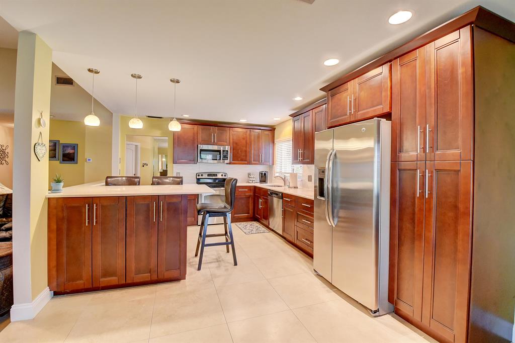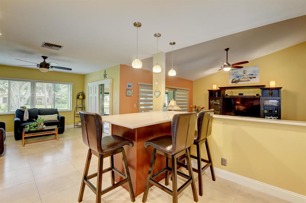 BEAUTIFULLY RENOVATED 3 BEDROOM HOME with 2-car garage! EXPANSIVE GARDEN VIEWS! New in 2020 - Glass Enclosed Florida Room with impact doors, overlooking the park-like view! Gorgeous kitchen w/high-end cabinets, quartz countertops, & stainless steel appliances, open to the family room and living room. Beautifully remodeled bath. New fans & light fixtures. Lovely tile & wood laminate flooring. Vaulted ceilings. NEW Roof & fascia-2020. Flat roof-2016. A/C-2016. Accordion Shutters-2009. New windows-2016. New Interior & Exterior Paint, landscaping, & driveway. Well water for sprinklers keeps water bill low. Walk to clubhouse, pool, tennis, billiards, & upscale Publix plaza. 55+ comm. 2 pets welcome. LOW HOA FEE! Lovely West Boca area, convenient to shopping, dining, & recreation.