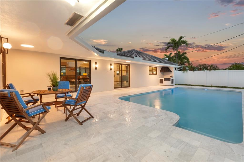 Imagine living in this newly rebuilt and entirely redesigned Midcentury Contemporary masterpiece, nestled in East Fort Lauderdale, just minutes to the ocean. This single-family residence combines the indoors and outdoors in perfect harmony. Features include rectified porcelain floors, designer kitchen, eat-in bar, coffee station + floating server, pantry, laundry room, custom fixtures, interior doors/hardware, brand new modern bathrooms, new walls, and electric, new a/c duct system. All bedrooms w/custom closets, a new roof, impact-resistant windows/doors, outdoor kitchen w/ over 300sq.ft. Covered outdoor space, marble pavers, a new fence and landscaping, a new irrigation system, and so much more. Copies of the complete master plan and blueprints are available for the proud new owners.