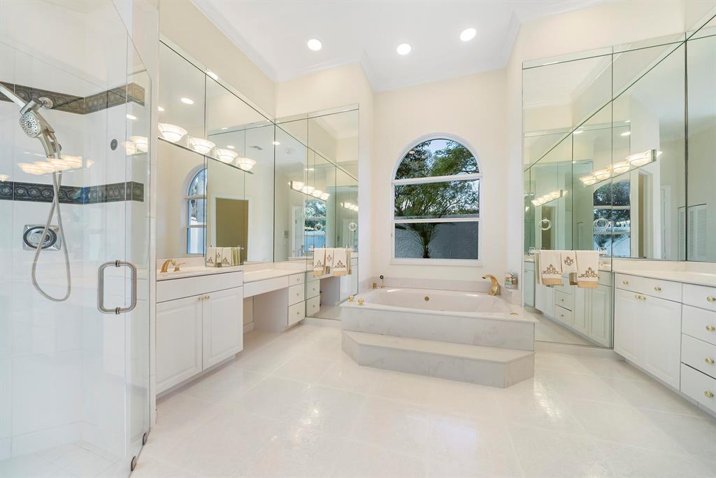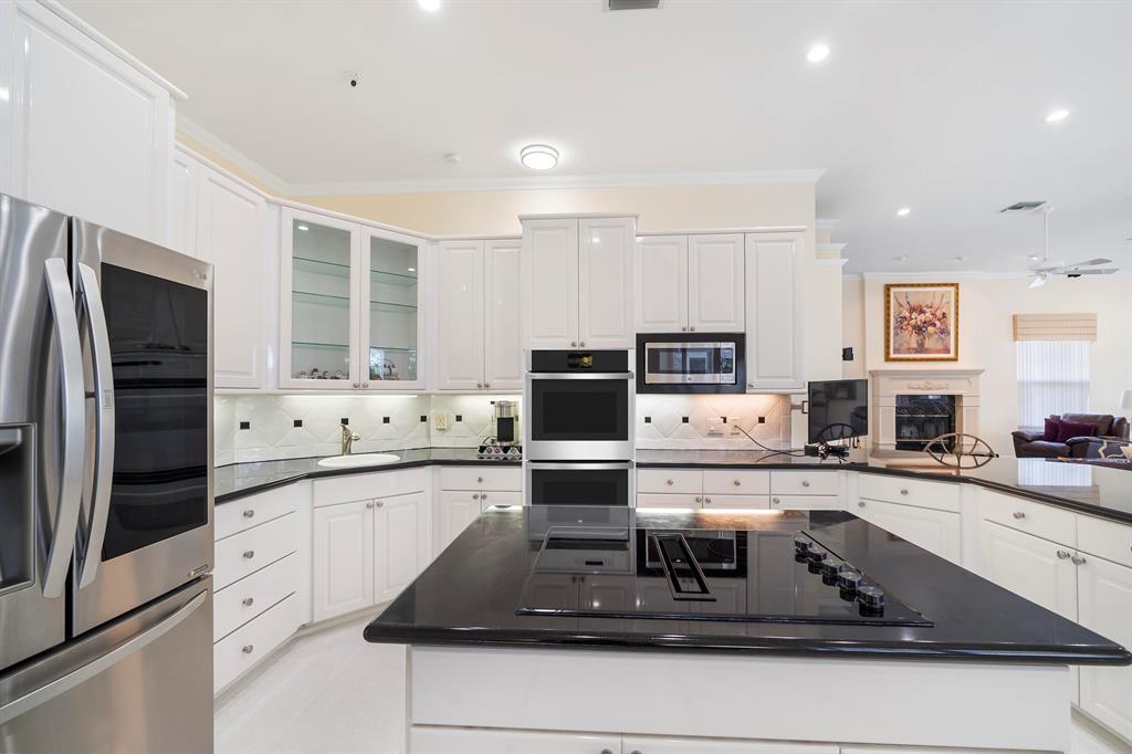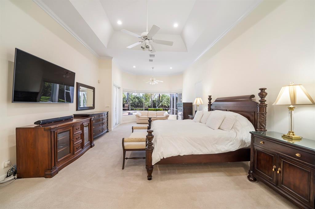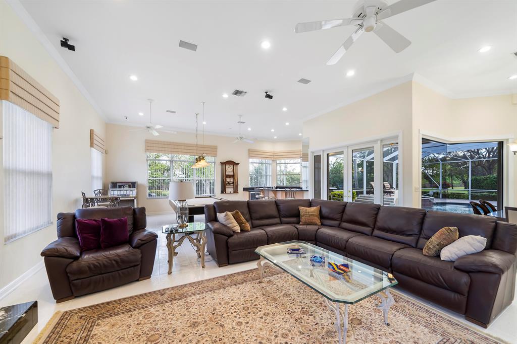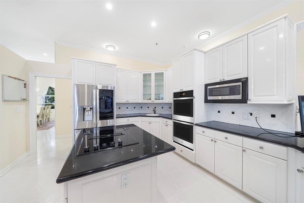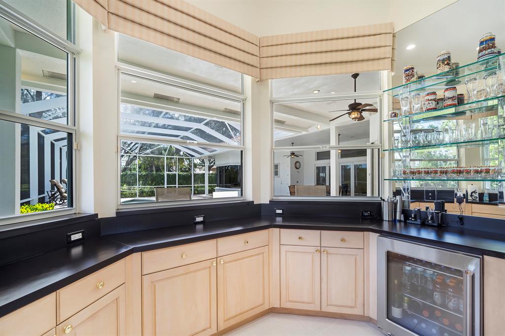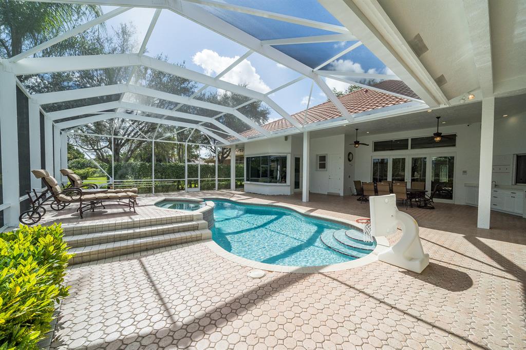 Pride of ownership in this 5 bedroom (1 is a library) 5-1/2 baths, 3 car garage with new coating on floor, kitchen has new Jen-air cook top, double oven G.E. Profile on order, farmhouse and salad sink, All windows protected with impact glass or Accordion shutters, heated pool with Jacuzzi, outside kitchen, newer refrigerator, Large walk-in pantry. Each bedroom is en suite, one with loft. Remodeled Bathrooms with bidet in master bath, closets galore, library with ladder, oversized master bedroom with panoramic windows and electric window treatment, overlooking screen enclosed pool, and Jacuzzi. Oversized Family room with wood burning fire place, game room, wet bar with wine cooler and bar refrigerator,crown molding thru, three zone air conditioners, two new air conditioners being installed