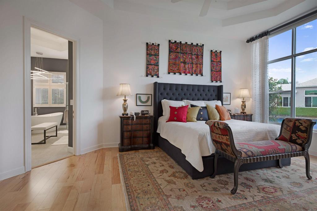 Welcome home! Located on a cul-de-sac this lakefront courtyard one story home sits on more than a 1/4 of an acre and features an open split layout with 3 bedrooms in the main residence plus a guest house with ensuite bath. Double doors open to the expansive and inviting courtyard made for year round entertaining. A recently added summer kitchen in 2020 boasts stone countertops, grill, gas cooktop, wine refrigerator and sink is the perfect addition to the resort style pool and spa. The guest house with ensuite bathroom can be a used as a gym, office or extra guest room. High ceilings and lake views in both the living room and dining welcome you in the main house. Flat ceilings and LED lighting add to the clean and bright feel of this enchanting home.Spectacular chef's kitchen remodele