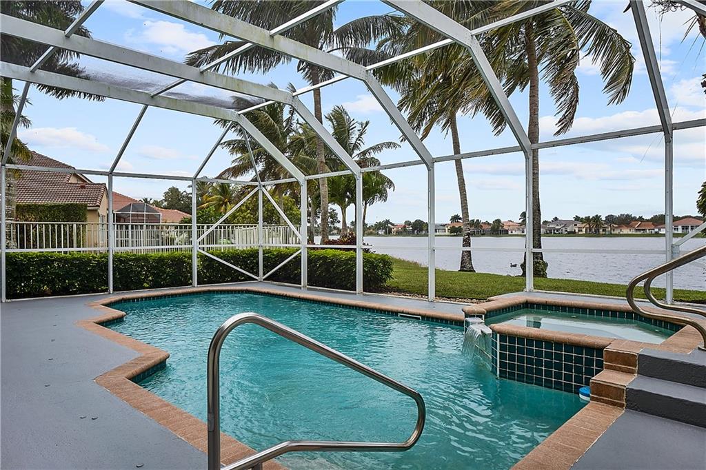 Beautiful Waterfront Home located in the desirable Verona Lakes gated community, in Lakes of Weston. Spacious split floor plan with vaulted ceilings has 4 Bedrooms and 3 Baths. A large Enclosed Pool with a spa is great for entertaining inside or outside with an amazing water view of a beautiful lake. All fans and light fixtures were replaced. The Masterbedroom +a sitting room or office with 2 walk-in closets and an enormous bathroom with a shower, a Roman tub, double vanities, and a separate toilet. The kitchen features granite countertops-wood cabinets. All bedrooms have wood flooring with exception of one. Tile floors are located in all living areas. Roof replaced 2014 and AC 5 yrs. All windows and doors have new Hurricane impact windows with hurricane shutters around patio.