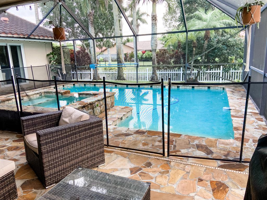 A great opportunity to get your own piece of heaven in the mature and sought-after neighborhood of Butler Farms in Coral Springs. Relax in the hot tub and pool overlooking tropical fruit trees and your waterfront view. Spacious 4/2.5 with a circular driveway for plenty of parking. Impact windows and doors. HOA is very low. Conveniently located with quick highway access and great neighborhood! Your family will love it!