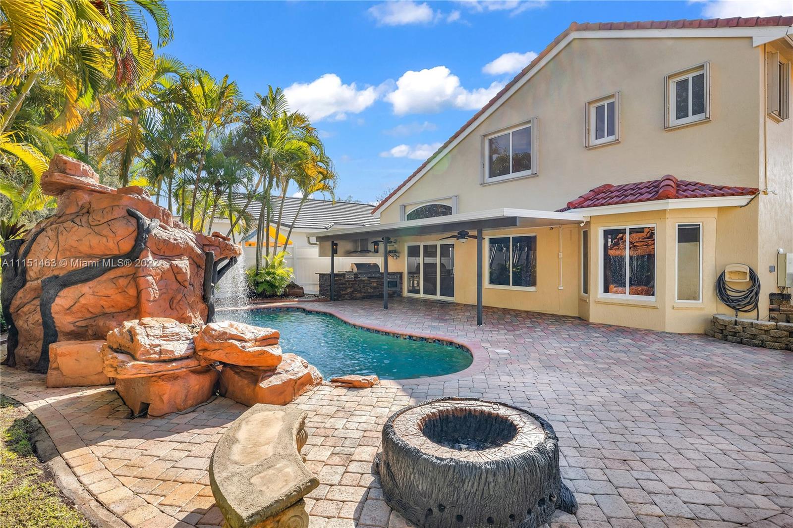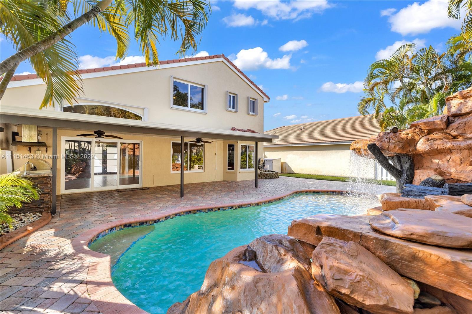 An Outdoor Oasis! Over 2000 sq ft of Living Nestled on an Interior Lot in Highly Sought-After Keystone Lake. This Nairobi offers a Spacious Open Floor Plan 4 beds / 2.5 baths, Living, Dining PLUS Family Room & Breathtaking Views of the Backyard. The 3 Panel Sliding Door leads onto Over 1100 sq ft of Paved Patio, Covered Lanai, Outdoor Kitchen & Fire Pit. Great for Entertaining! The Organic Aesthetic of the Pool’s Faux Stone, Cave & Waterfall will have your Senses Perceive a Hideaway in Nature. Unwind after a Long Day to the Soothing Sound of the Cascading Water. Additional Features: Laundry Room, Breakfast Nook, 2 Car Garage, Impact Doors and Windows (2019), Exterior Paint (2022), Concrete Block & Stucco 2nd level, Heated Pool, Spa, Guard Gated Community, Top Rated Schools, Low HOA.