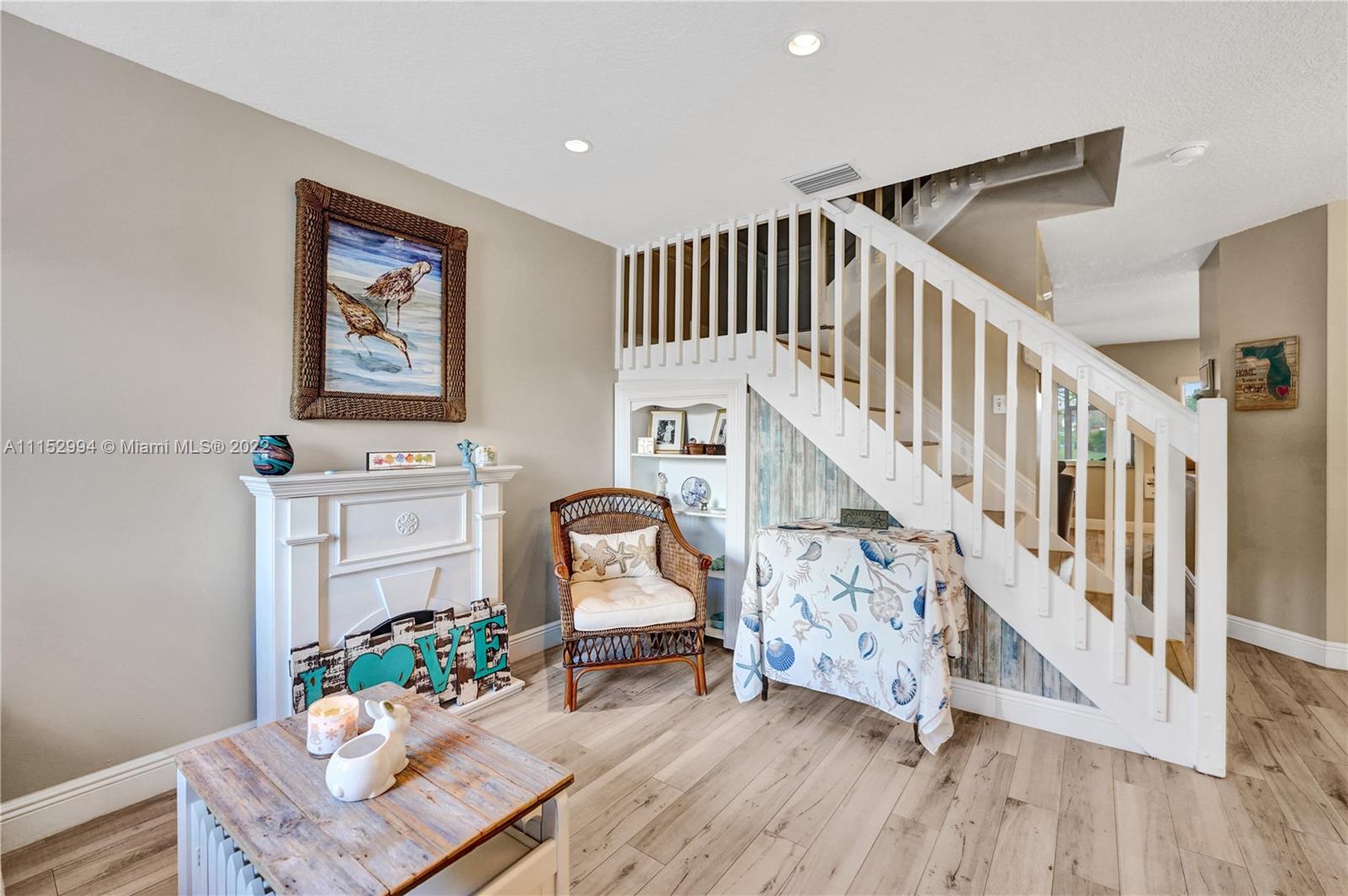 Welcome home to this beautifully updated 3/2.5 lakefront home in sought after Malibu Bay. This home is in pristine condition & offers many upgrades in addition to being on a peaceful lakefront lot. Features include a beautifully renovated kitchen with expanded & ceiling high, soft-close cabinets, SS appliances, beautiful backsplash & granite counters including a custom island/breakfast bar. Newer wood-look tile floors throughout & brand new PVC flooring on stairway. Newer vanities in 2 of 3 bathrooms. Enjoy the best of FL living on the large screened patio overlooking the lake. This gated community offers great amenities & is zoned for some of the areas top schools. This is a must-see home and will not last!