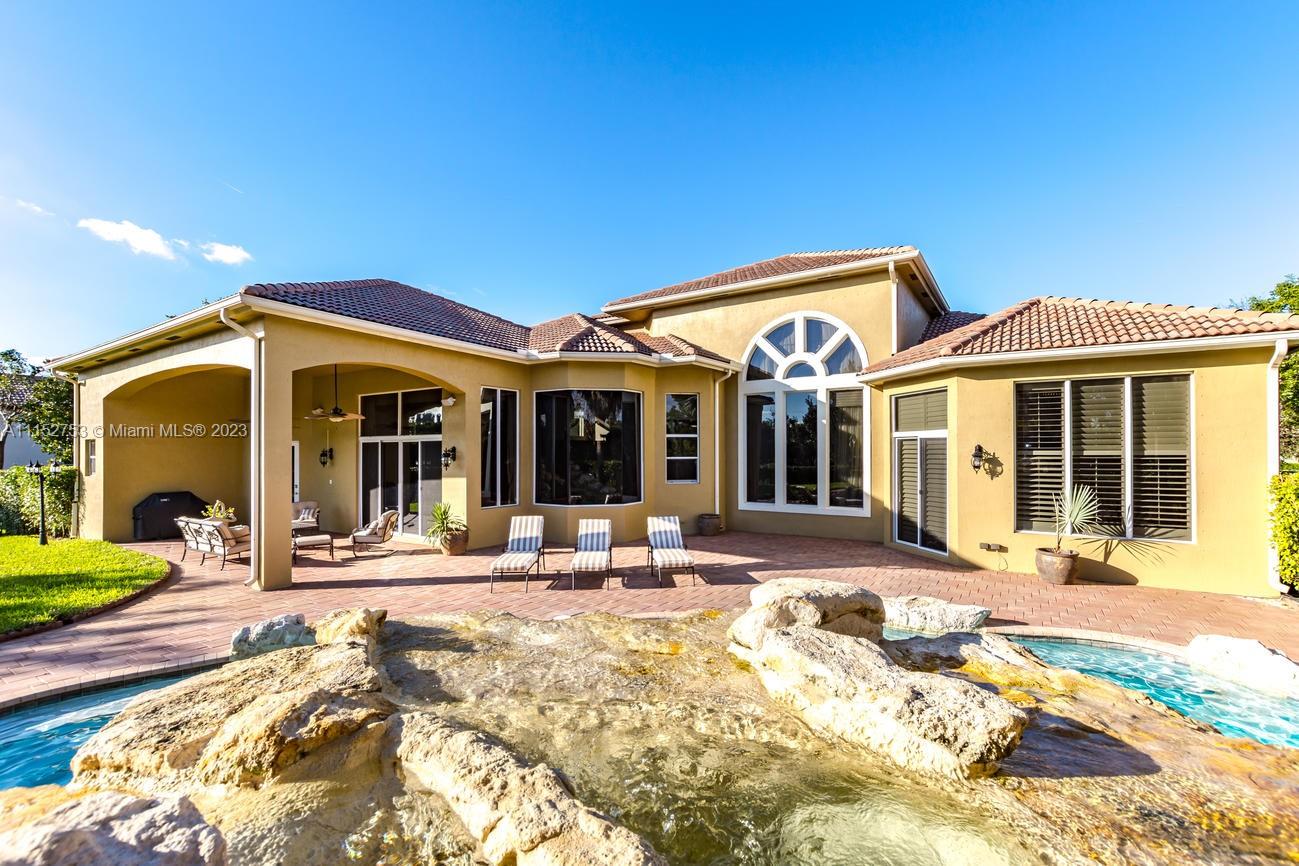 STUNNING LUXURIOUS HOME IN 1 BUILDER'S ACRE LOT, FEATURING; IMPACT WINDOWS & DOORS!, MARBLE FLOORS THROUGHOUT LIVING AREA & STAIRS! PRIVATE CUSTOM HOME THEATER, ENJOY YOUR OWN RESORT STYLE POOL W/ JACUZZI, CANAL, GOURMET KITCHEN W/GRANITE COUNTERS! NEW REFRIGERATOR! WET BAR IN FORMAL LIVING ROOM, LARGE MASTER SUITE AND GUEST BEDROOMS DOWNSTAIRS. NEW WATER HEATER! THIS HOME IS ENHANCED BY ITS PRIME LOCATION IN THE GATED COMMUNITY OF BLACKHAWK RESERVE, SURROUNDED BY MULTI MILLION DOLLAR NEW HOMES! CONVENIENTLY LOCATED RIGHT NEAR WESTON! A+SCHOOLS. ORIGINALLY OWNED BY A PROFESSIONAL FOOTBALL PLAYER. A LIFE OF COMFORT & STYLE. LARGE CIRCULAR DRIVEWAY PLUS 3 CAR GARAGE GREAT FOR FAMILY & FRIENDS GATHERINGS AND ENTERTAINING! MUST SEE IT TO APPRECIATE IT!