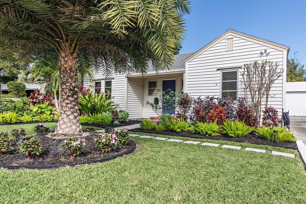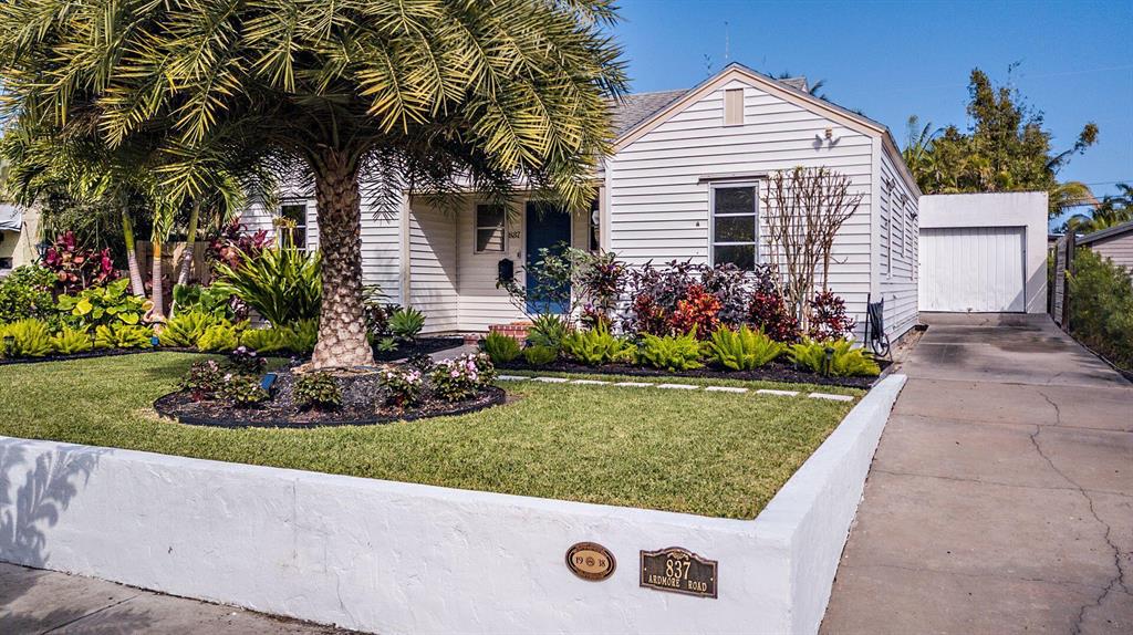 Adorable Key West cottage style home in the heart of desirable Historic Flamingo Park! This charming and lovingly updated 3BR/1BTH home also has a 1BR/1BTH guest cottage. Situated on a high lot, this home shines with original details finished with modern touches. Gleaming hardwood floors throughout, wood burning fireplace with original mantel in living room. Formal dining room opens to gorgeous kitchen with white shaker cabinets, tiled backsplash, quartz countertops & black stainless steel appliances. Renovated bath has a shower with plenty of countertop space. Through the private backyard the cottage hosts a kitchen, full bath, large bedroom plus large storage area. Close proximity to Downtown, Rosemary Square (CityPlace), Palm Beach Island, and Grandview Warehouse District