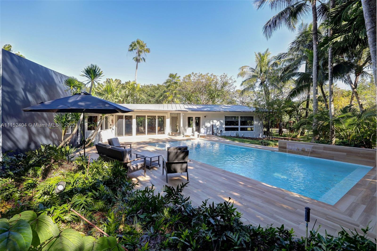 Nestled on a lush 3/4 acre corner lot in North Pinecrest, this home is a modern/rustic dream. Canopied by gorgeous Sea Grape Trees and embodied with a peaceful Koi Fish pond that welcomes you to meditate. Designed with integrity and aesthetic in mind, each room feels warm and inviting. Enveloped in vintage, handmade and high-end fixtures throughout that provide a natural yet unique look. This property's unique exterior provides natural beauty and is easily enjoyed throughout the entire house with stunning views from almost every room. A private oasis carefully customized to be one of a kind. Captivating for nature lovers and those who appreciate attention to detail. 3,996 sf living area as per survey.