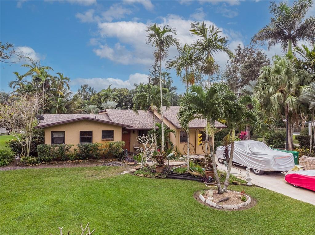 A RARE FIND IN WEST DAVIE. Over 1.7 acre, 3 bedroom 2 bath pool home. A beautiful red brick fireplace. You have new kitchen cabinets and counter tops, ample cabinet space with new appliances. Kitchen opens to the huge family room. Impact windows in the house and oversized 2 car detached garage which is 1178 sqft. You have a 10 inch thick apron slab in front of the garage. The property has two separate folio numbers,504015010262. One for the home and one for the vacant adjacent land. It has a beautiful pond that has a walk over bridge. Many exotic trees, plants and fruit trees. This house has so many possibilities. It need some TLC. The roof is four years new. The house is all tiled inside, completely fenced in and very private. Jump on this property. IT WON’T LAST LONG.