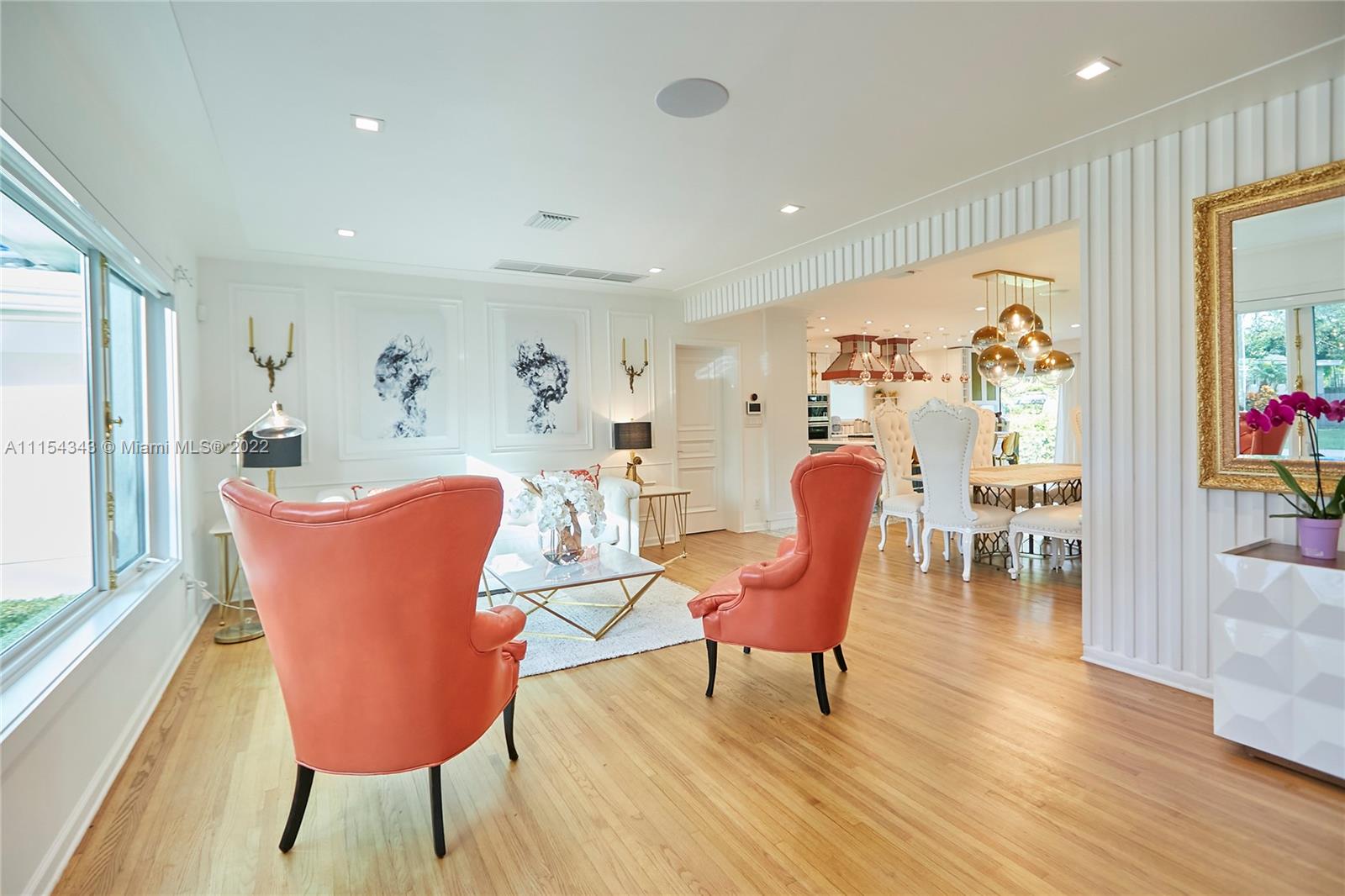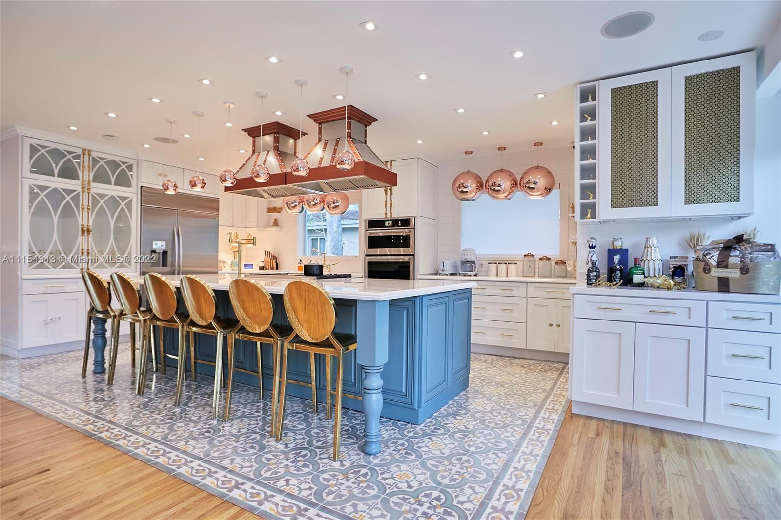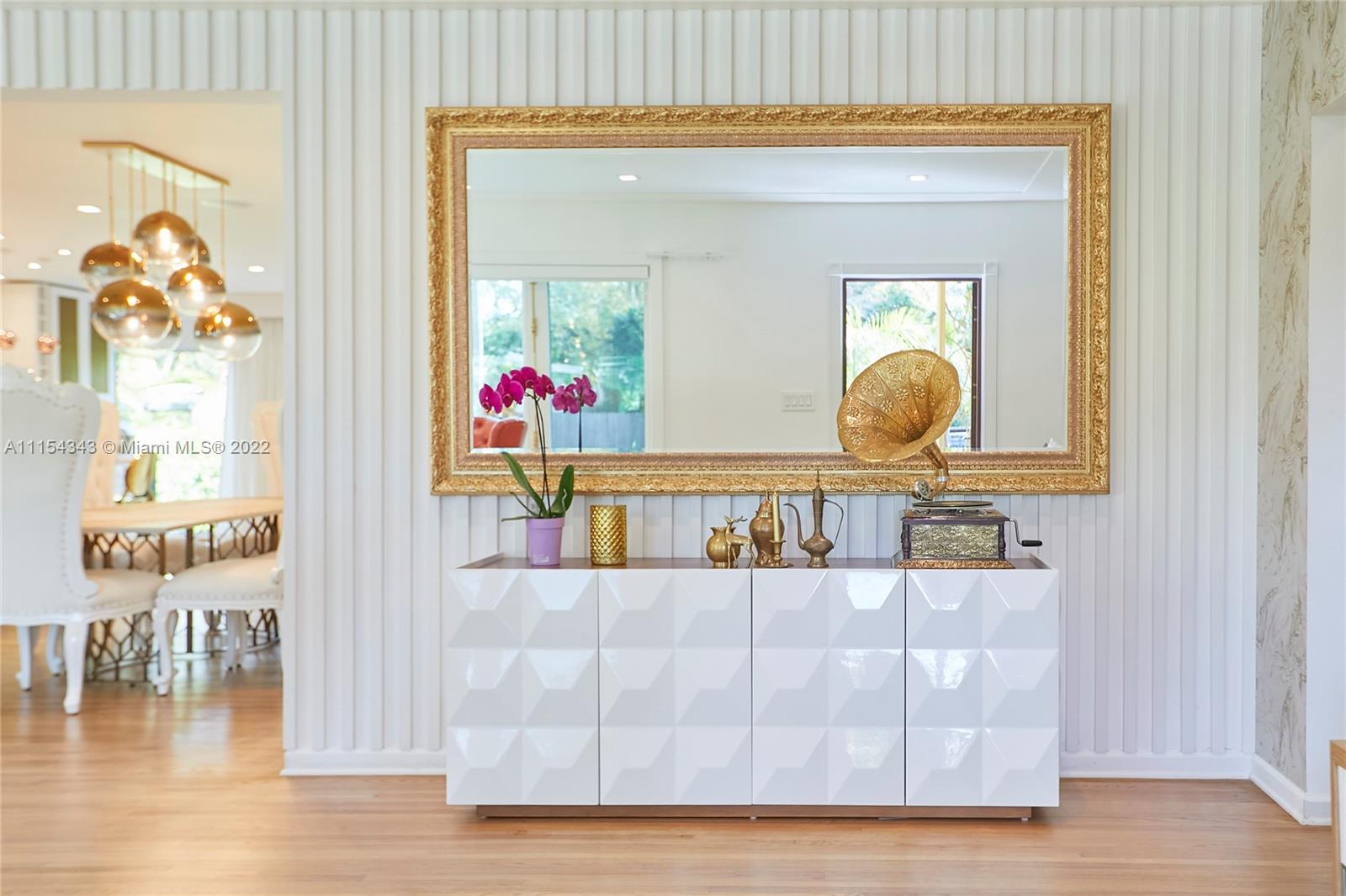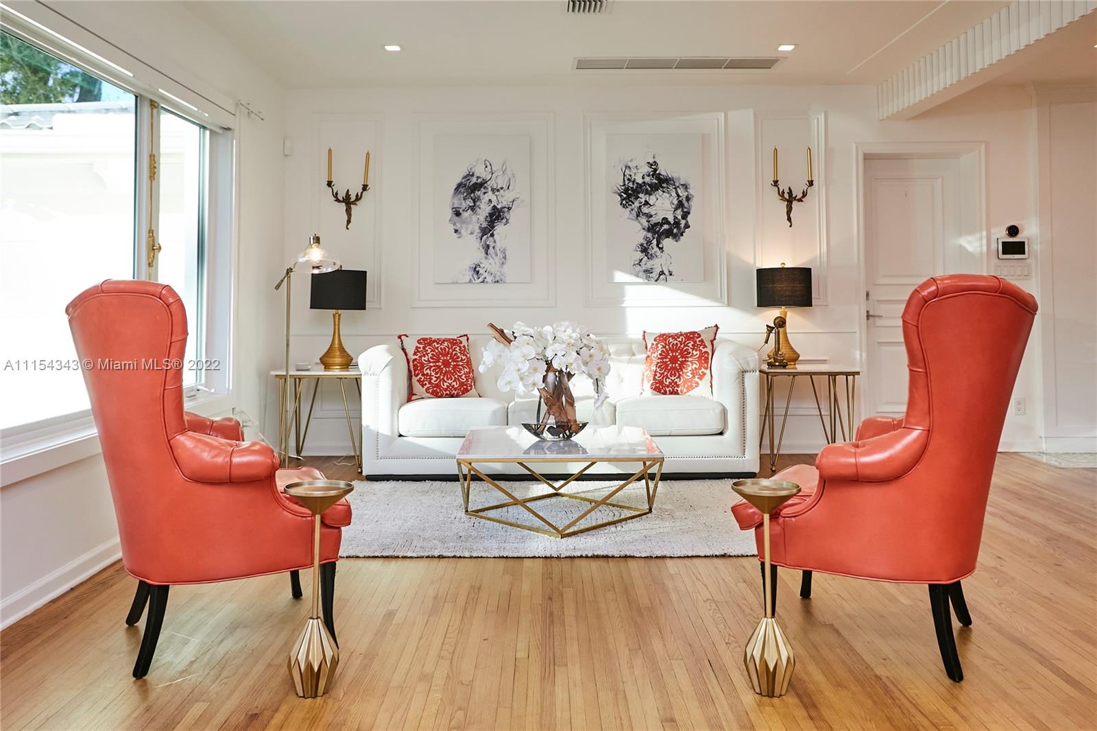 The Deco Baroque House, a unique renovated mid-century modern designer home with deco baroque accents, spacious master suite with large walking closet; spa shower and imperial-shaped tub with handmade mosaic floors. Two guest bedrooms, 3 1/2 rococo-style baths, elegant open living room, formal dining, spectacular gourmet kitchen with high-end appliances and media room. Luxury hardwood floors throughout; wired audio/theater system; wall fences, customized gates & electric car charger. You’ll be proud to call this Miami Shores charmer your home... and be around great schools, close to restaurants, shops and golf course. This property has an unspoiled authenticity & royal architectural value perfect for discerning art & design aficionados.