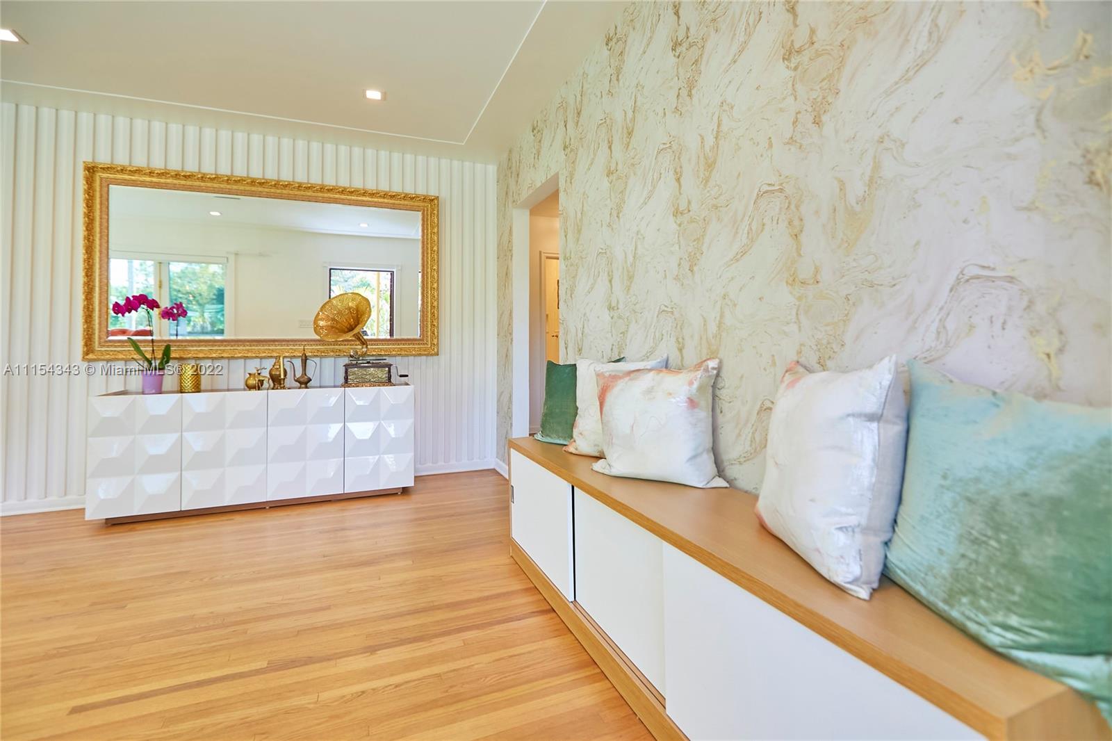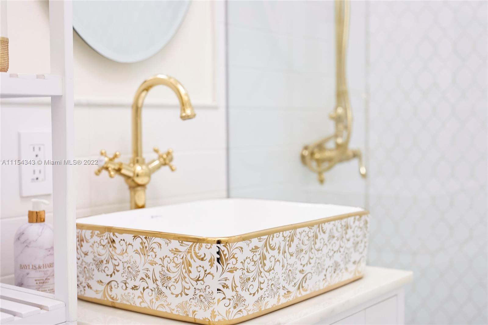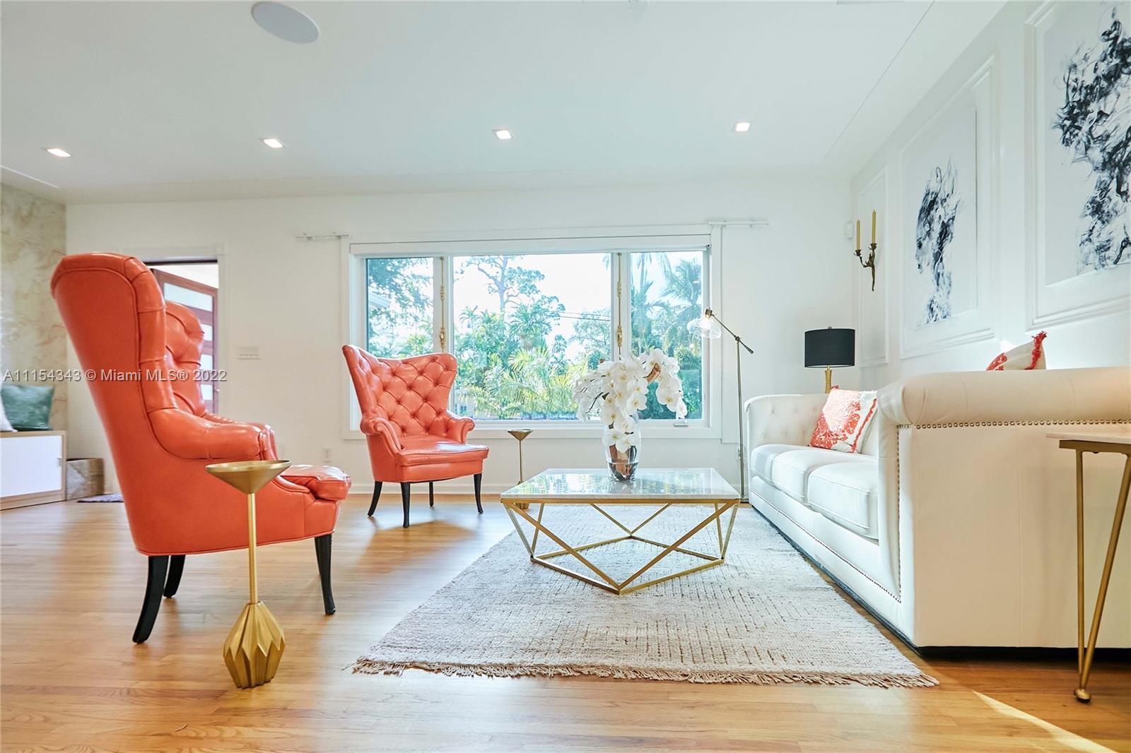 The Deco Baroque House, a unique renovated mid-century modern designer home with deco baroque accents, spacious master suite with large walking closet; spa shower and imperial-shaped tub with handmade mosaic floors. Two guest bedrooms, 3 1/2 rococo-style baths, elegant open living room, formal dining, spectacular gourmet kitchen with high-end appliances and media room. Luxury hardwood floors throughout; wired audio/theater system; wall fences, customized gates & electric car charger. You’ll be proud to call this Miami Shores charmer your home... and be around great schools, close to restaurants, shops and golf course. This property has an unspoiled authenticity & royal architectural value perfect for discerning art & design aficionados.
