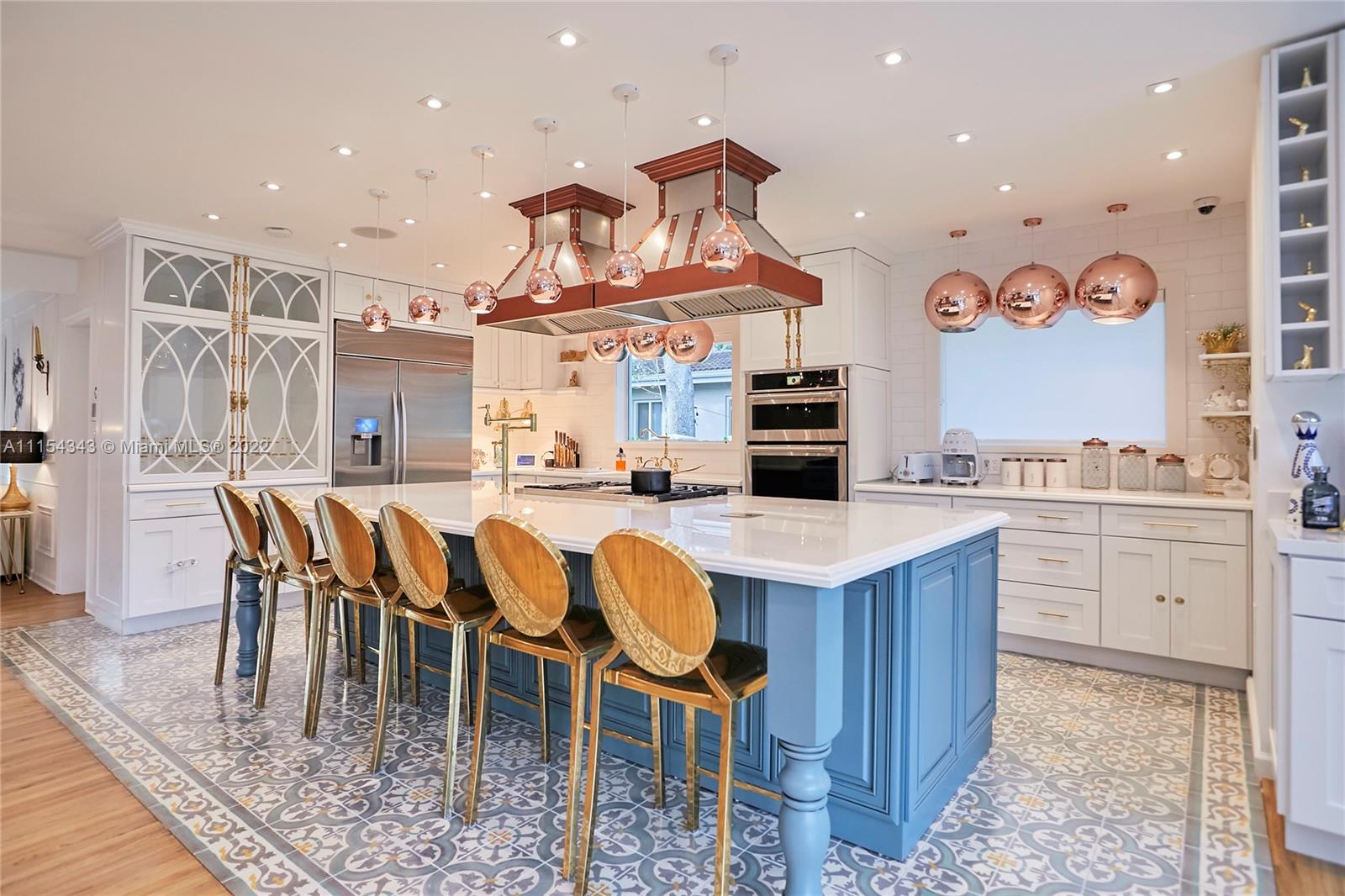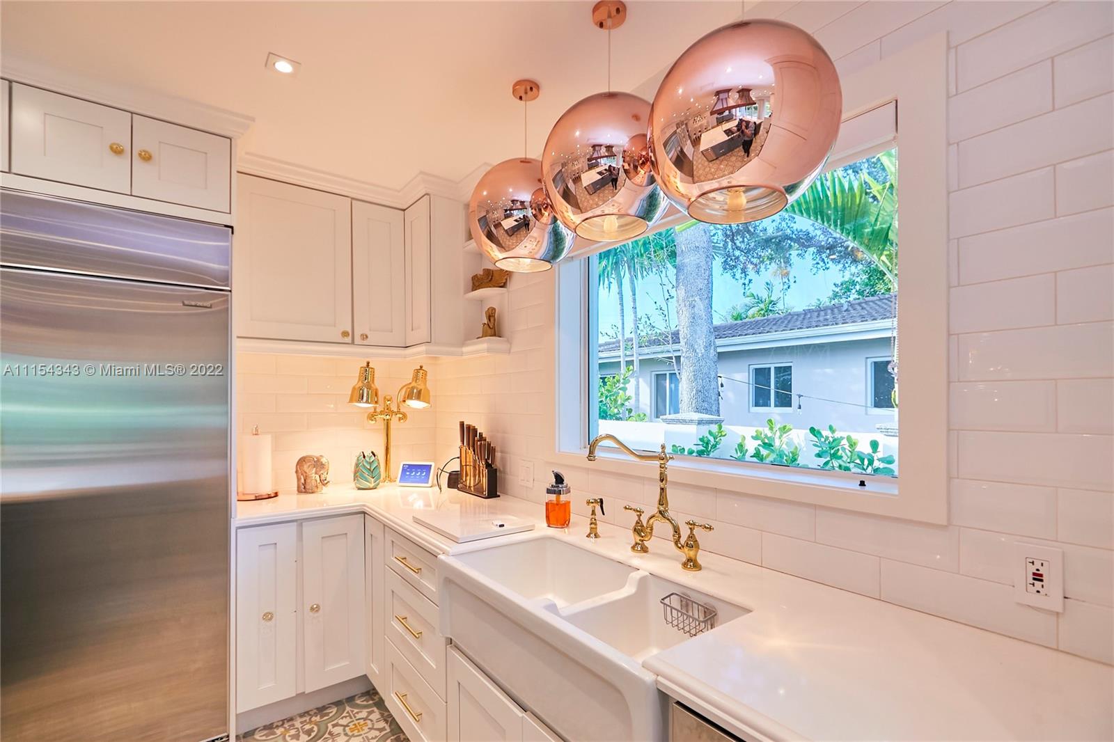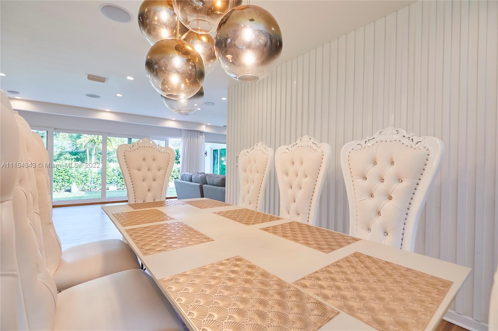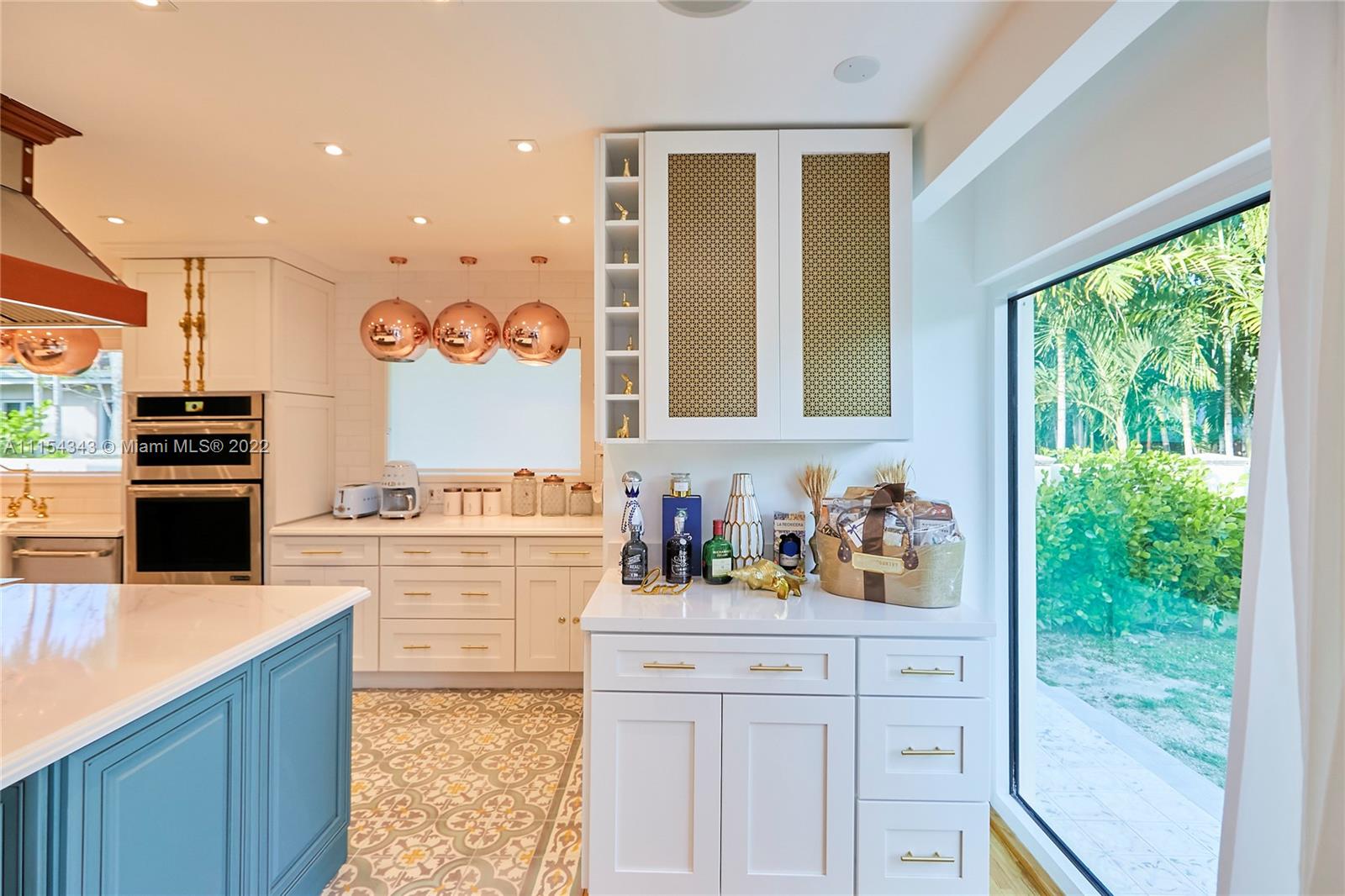 The Deco Baroque House, a unique renovated mid-century modern designer home with deco baroque accents, spacious master suite with large walking closet; spa shower and imperial-shaped tub with handmade mosaic floors. Two guest bedrooms, 3 1/2 rococo-style baths, elegant open living room, formal dining, spectacular gourmet kitchen with high-end appliances and media room. Luxury hardwood floors throughout; wired audio/theater system; wall fences, customized gates & electric car charger. You’ll be proud to call this Miami Shores charmer your home... and be around great schools, close to restaurants, shops and golf course. This property has an unspoiled authenticity & royal architectural value perfect for discerning art & design aficionados.