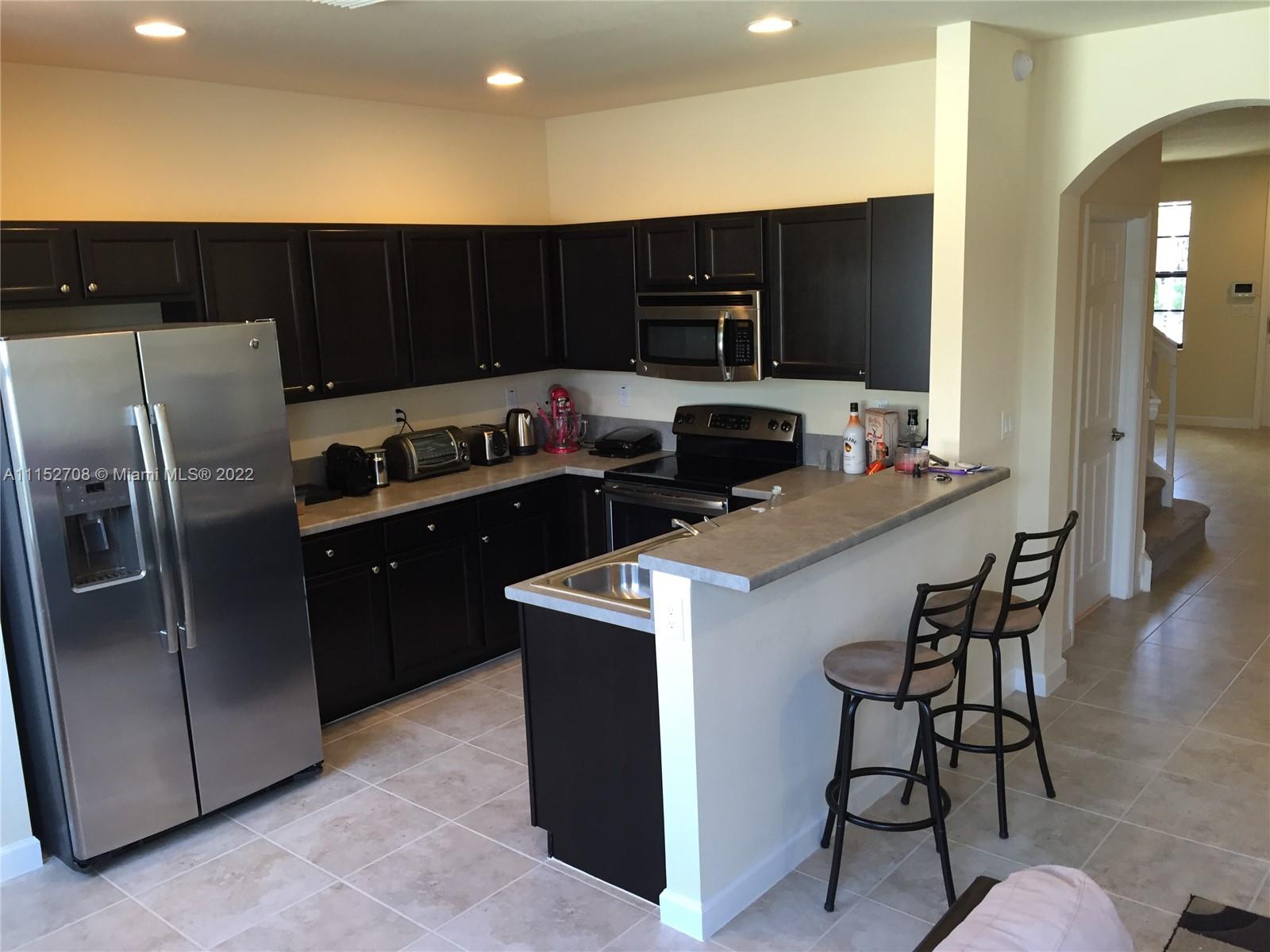 ONE OF FEW 4 BED/2.5 BATHS Great Floor Plan in Aragon New Development Community. Easy access to Highways, close to schools, supermarkets, convenience stores and much more. Tiles in the first floor, carpet in stairs and second floor. Washer/Dryer in unit. Very nice kitchen with stainless steel appliances. Master bedroom with plenty of space, beautiful bathroom and spaciously walking closets. Fenced 37' X 22' Half paved Patio to play and enjoy. 1 car garage with plenty of visitors parking. Beautiful community pool, gym and recreation area. No contingency to appraisal, best offer will be considered on 2/10/22.
