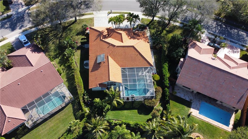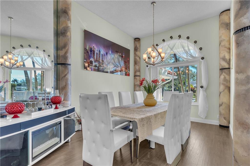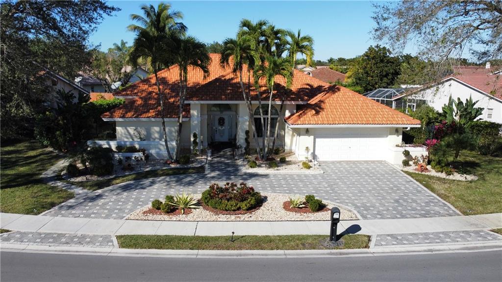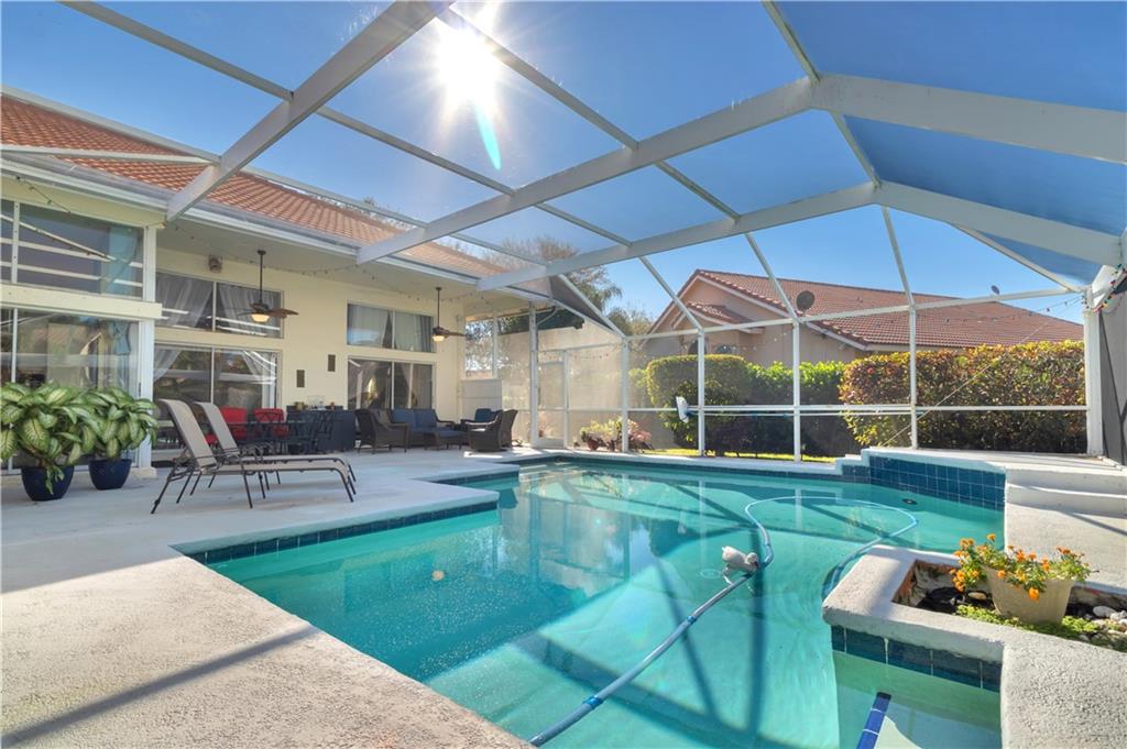 Open Floor plan with tall walls, tall ceiling, tall windows! Triple split with one of the guest bedrooms having complete privacy with their own bathroom and hall door and own entrance. You're able to see the pool from many of the rooms through the large windows. The beautiful kitchen shows off light, bright counters and cabinets with double oven, wine refrigerator and lots of counterspace and a 4+ seater island. Roof 12 yr, impact windows all around (except sliders), Pergo flooring through out, beautiful vessel sinks in bathrooms, central vac, computerized whirlpool in primary bathroom with changing color light, padded head rests and much more. Decorative fire place that gives heat surrounded with lighted block glass. Back yard has Plantain, avocado and mango trees. Good Schools. No HOA.