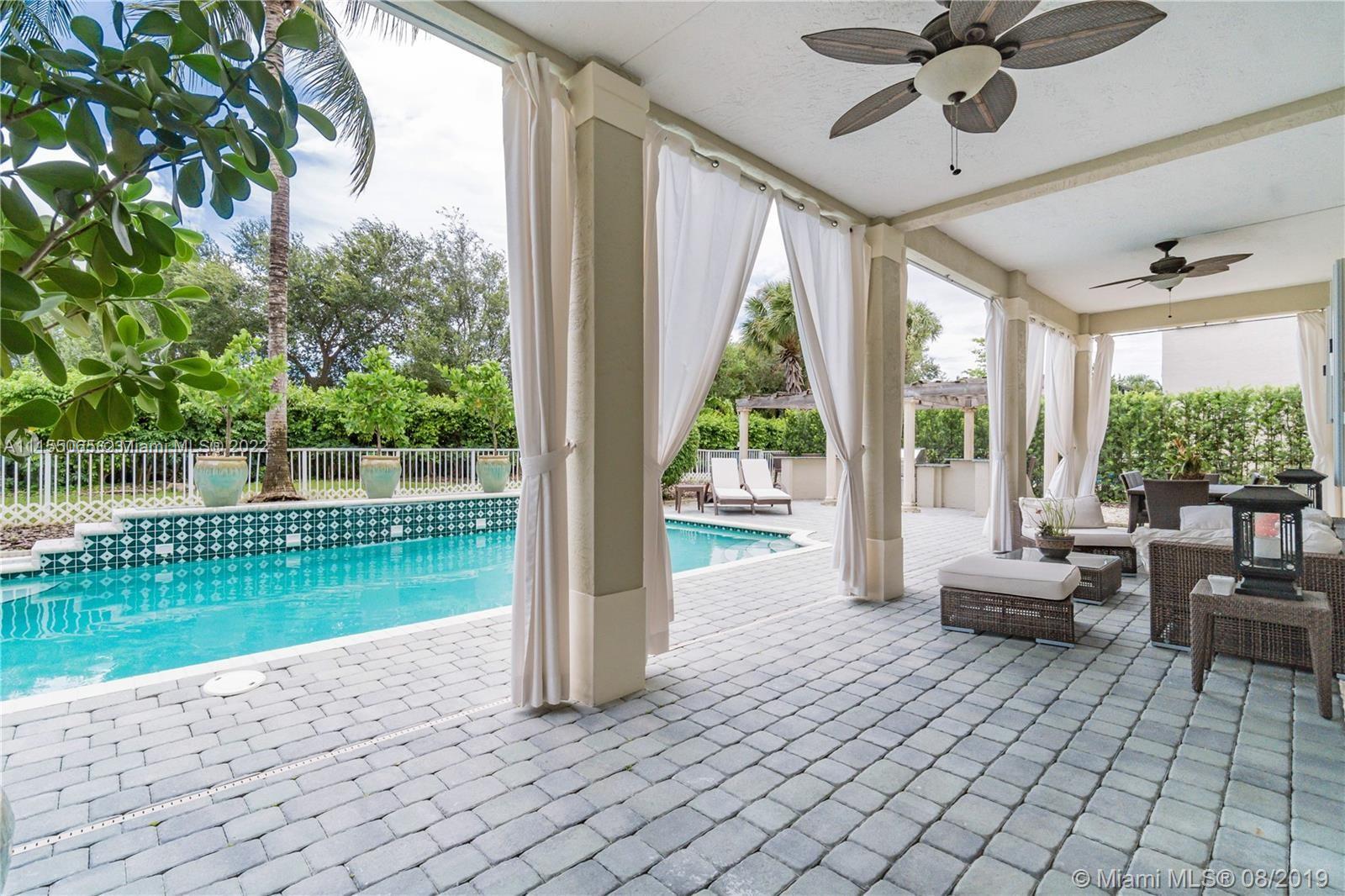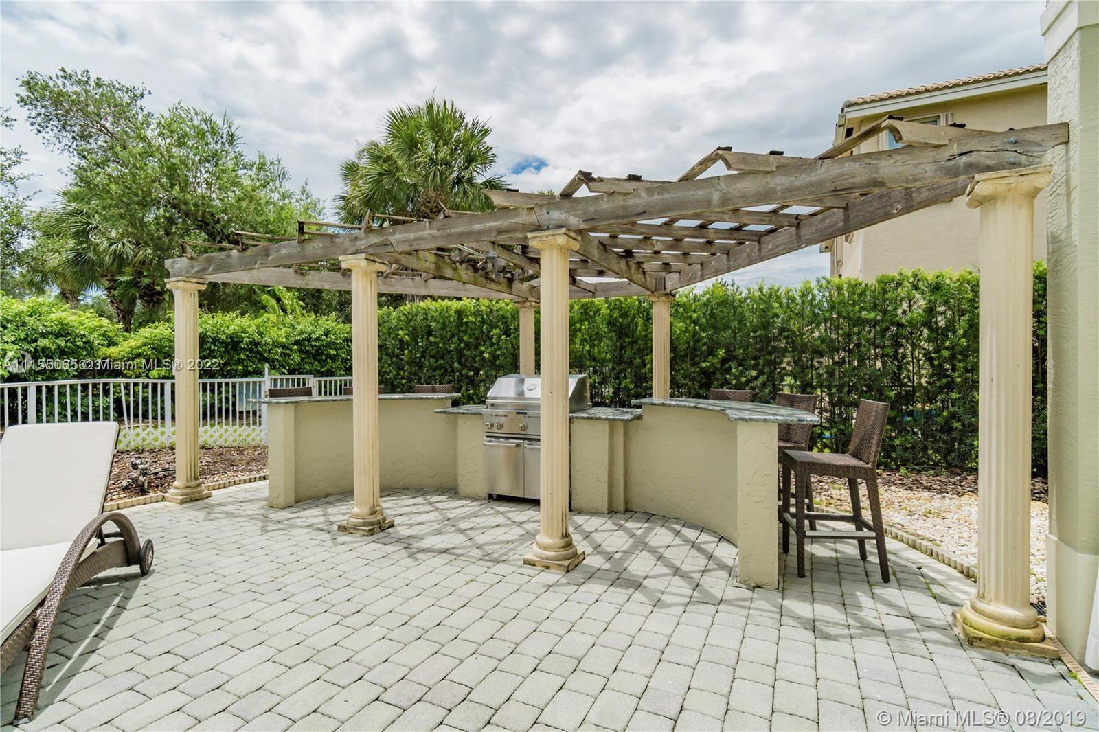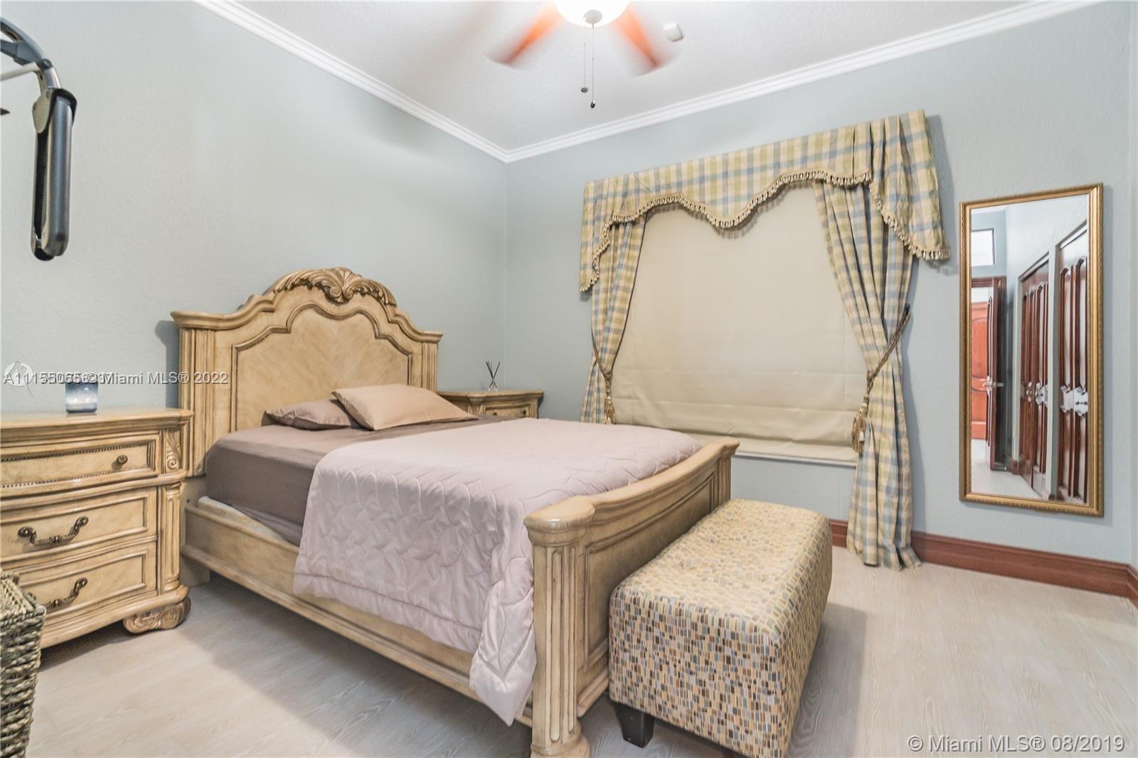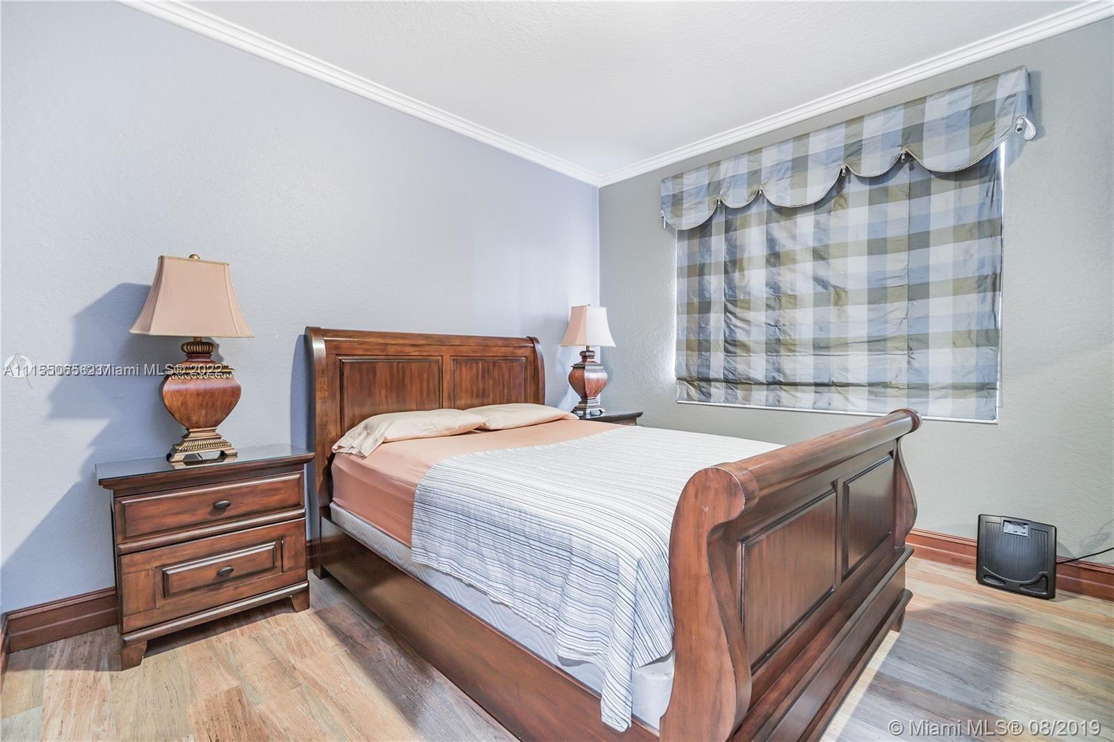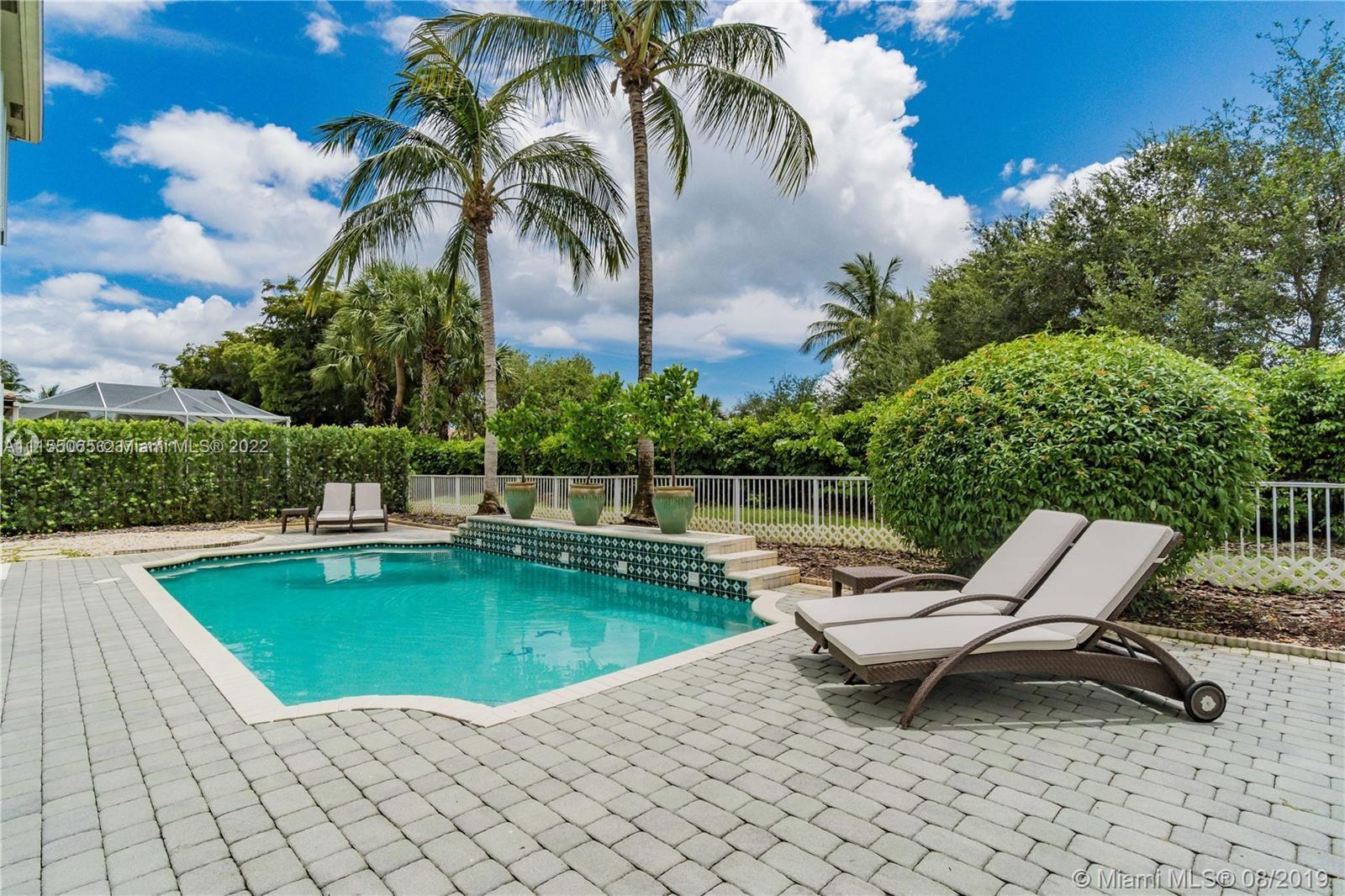 Desirable and well maintained home in Sunset Lakes. This 2 story home features 6 beds, 5 baths, 3 car garage in addition to a great Pool area and lush landscaping. Gated community. No neighbors on the back. The patio is great for entertaining, has a BBQ area. Enter to an impressive volume ceilings, marble flooring on the first floor, quality kitchen w/wood cabinetry and fine appliances including a Gas stove. One bedroom on the first floor w/full bath across. Cabana bathroom completes the great outdoor area. Windows have Hurricane Accordion Shutters. Wet bar in the family room. Double stairs, from living area & from family room. The master suite features an oversized sitting area, walk in closet with built in cabinets & large master bedroom with shower and tub. Porcelain flooring upstairs.