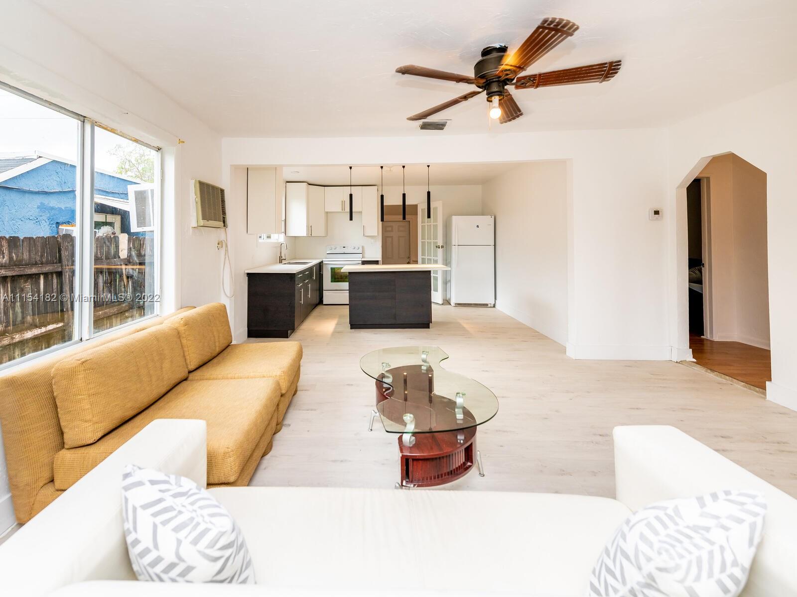 AMAZING CORNER LOT SINGLE FAMILY HOME LOCATED IN HOLLYWOOD, minutes away from Hollywood beach. This property features 2 bedrooms 1 bathroom, laundry & 2 bonus rooms that are BIG enough to set one up as a home office, or a dining room, the bonus room can be set up as a playroom or a Florida room. Wood kitchen cabinets and an island. Beautiful wood laminate flooring throughout the entire home! New windows were installed in the laundry room and back bonus room. The roof is only 3 years old. You'll love all the landscaping this house has to offer, the variety of palm trees around the yard with wood fences & the best part of the back patio is the MAGNIFICENT PRODUCING HUMONGOUS MANGO TREE. Click on the virtual tour to see the YouTube video walk-thru tour and property website for more info!