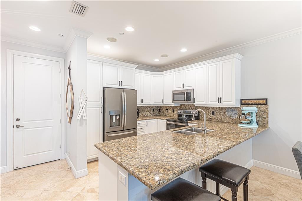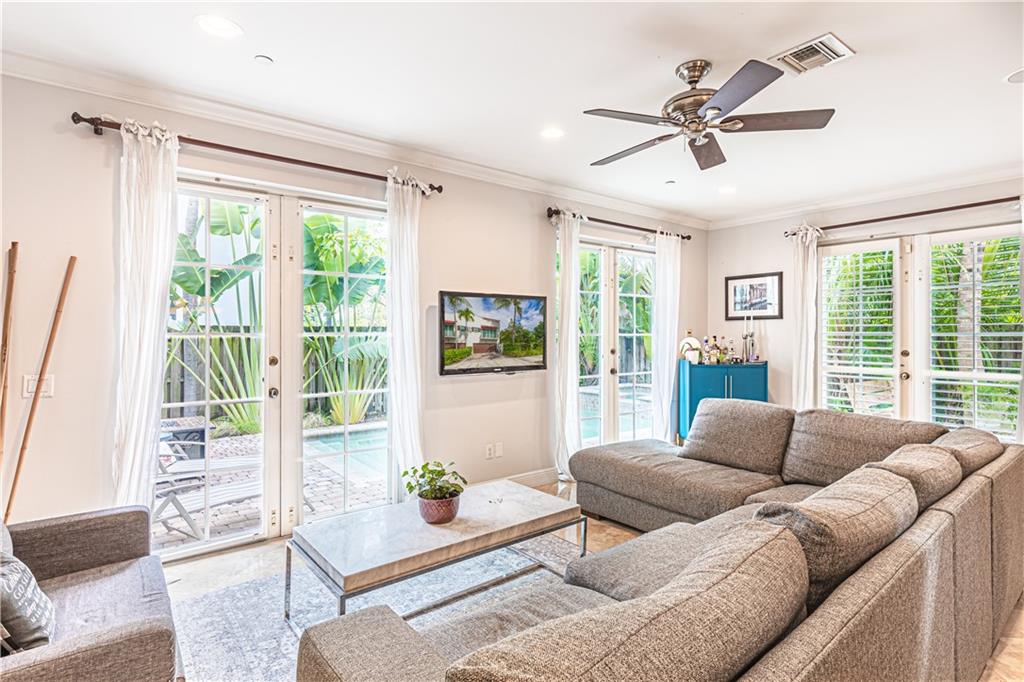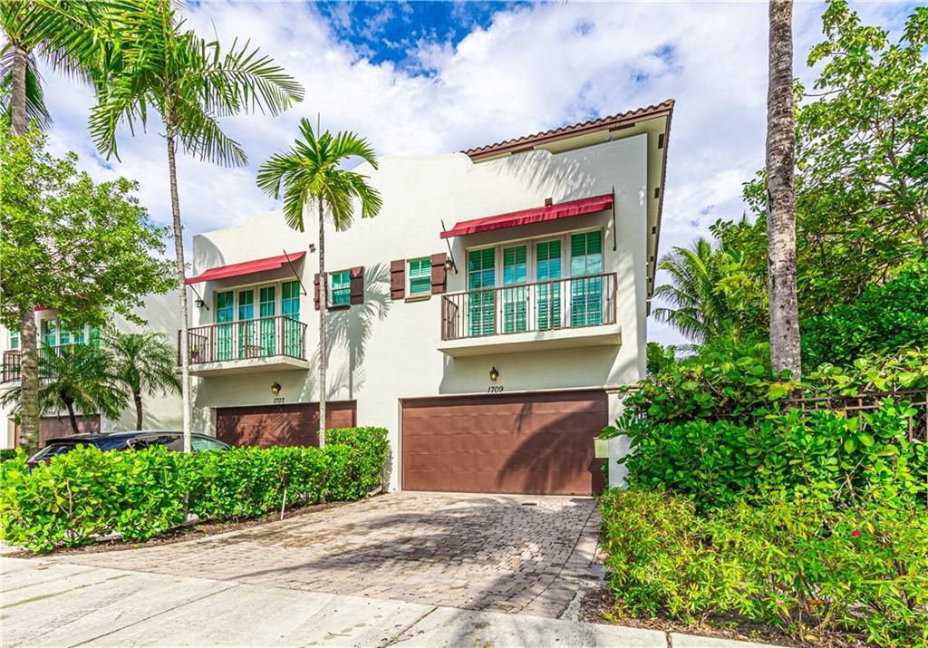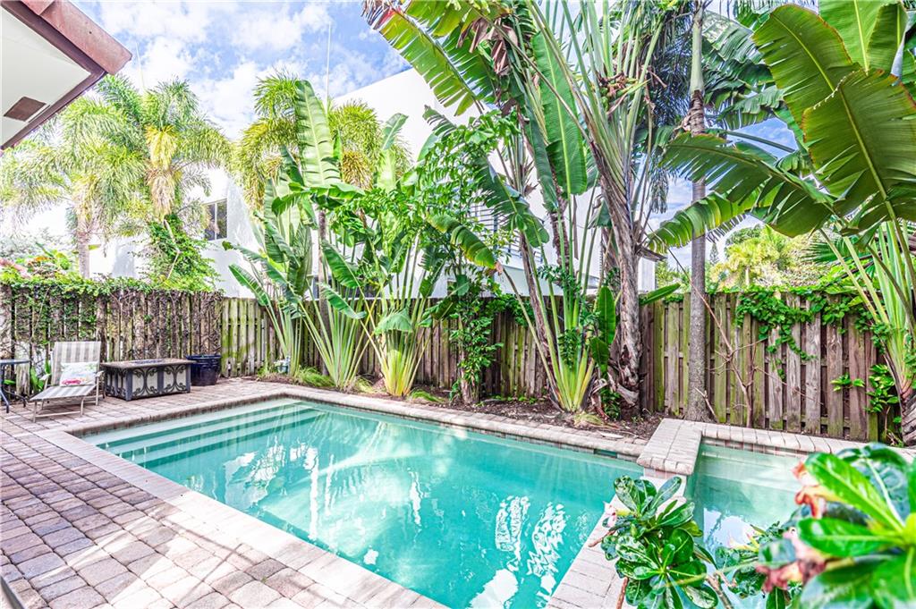 Victoria Park Tri level townhome on a Large Double Corner Lot, completely private w/professional landscapes, paved outdoor areas, heated pool&hot tub. Over 2700 sqft of intelligently designed space, living areas located on main level & 4 oversized bedrooms w/ensuite baths & private terraces on 2nd&3rd levels. Finishes include marble & wood floors,open kitchen w/ample cabinet space,updated appliances,expansive breakfast bar seating & open living & dining space w/glass French doors surrounding the area to bring in natural light & ease of access to the private tropical outdoor oasis. The second floor features a spacious master suite, wet bar, laundry & guest suite, w/3rd & 4th bedroom suites & loft on the 3rd level. 2 car garage, impact windows & doors, irrigation, 2 A/C units & central vac.