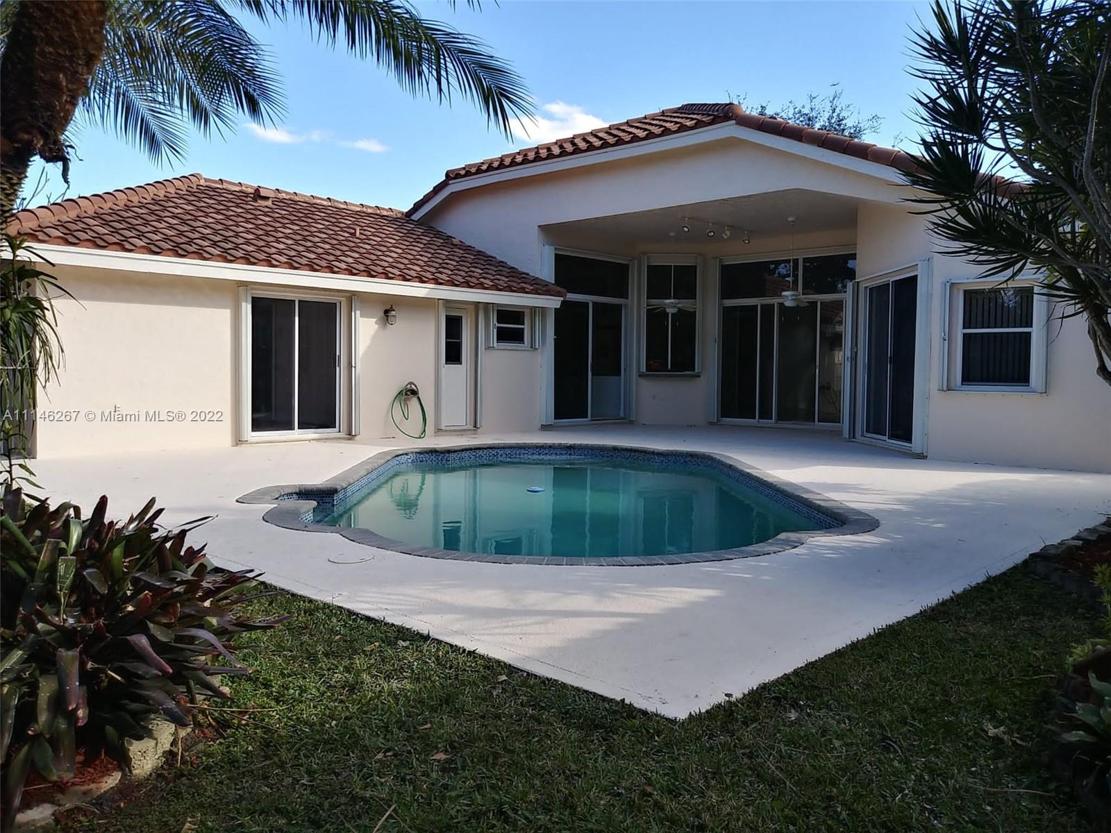 Gorgeous House 5 bed 3.5 bath... One room completeley separated with a bathroom can be used as an office or guest room. Just completely painted inside and out ready to move in!!!. Marble floors, Renovated, fantastic floor plan. Beautiful pool area overlooking the lake. Great neighborhood with ammenities like tennis court. Nothing Like this on the market. Take a look!!!