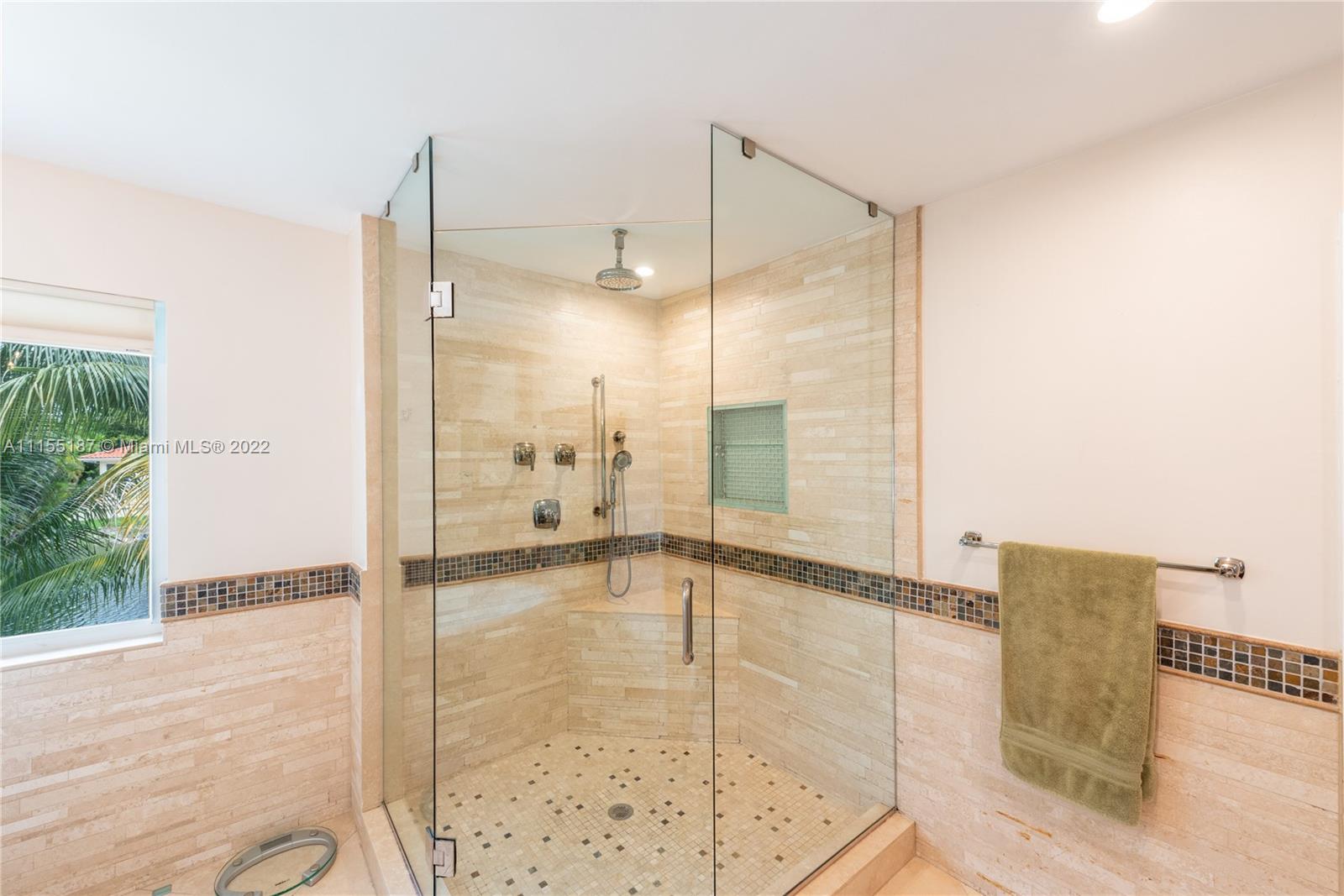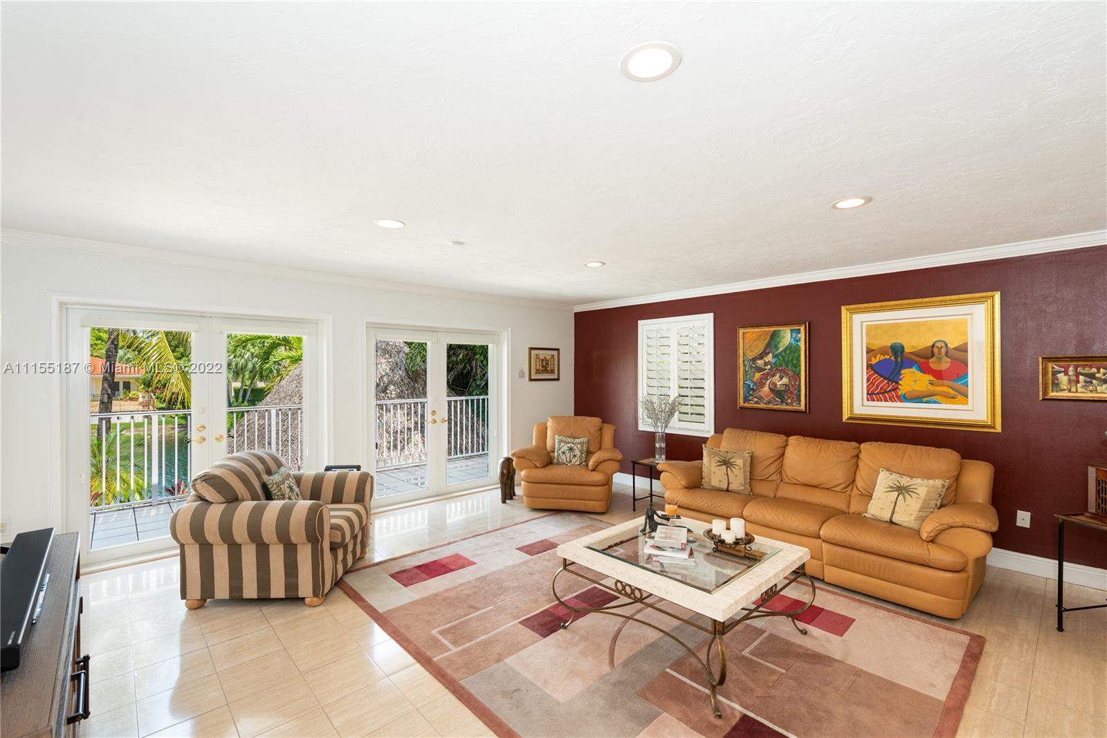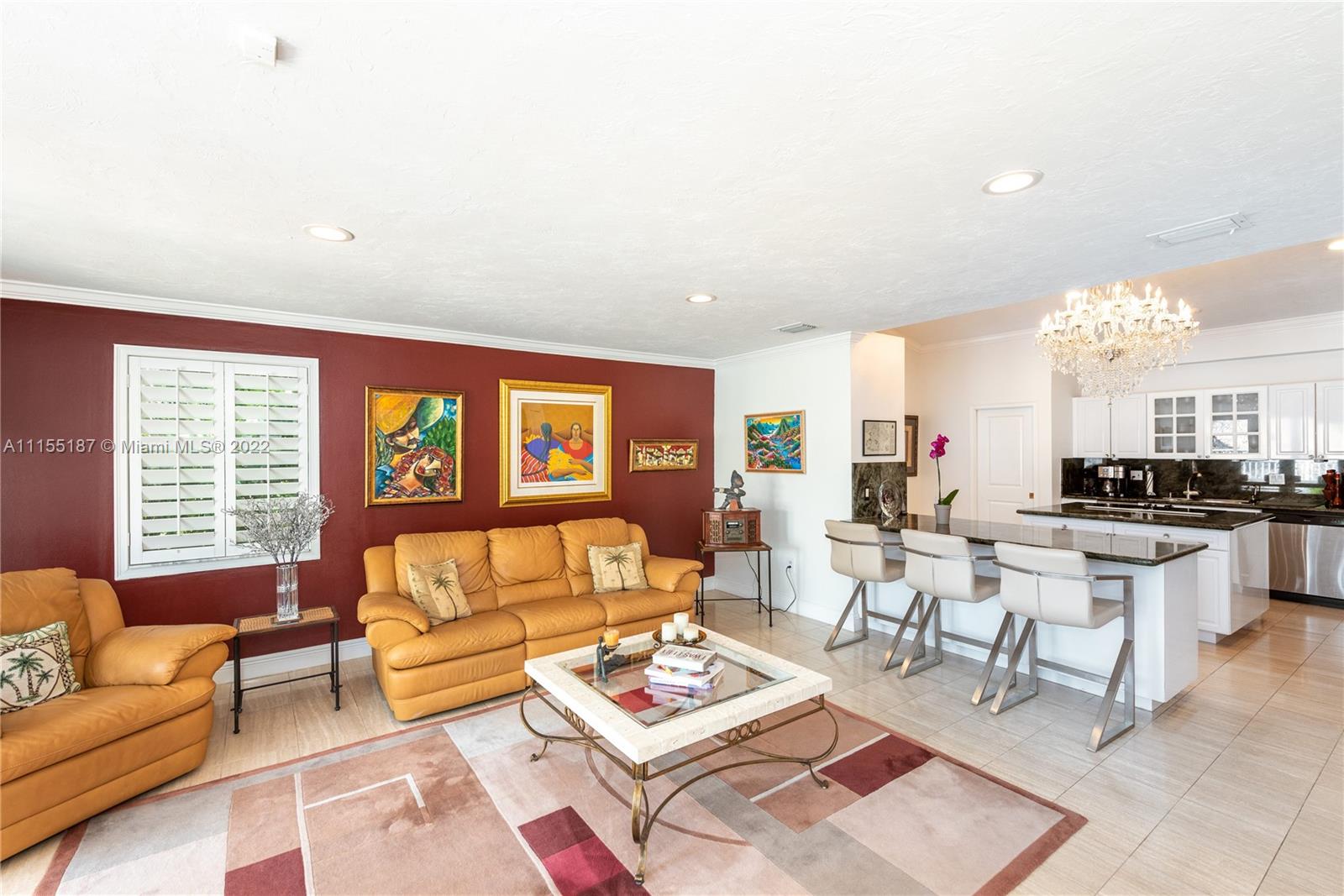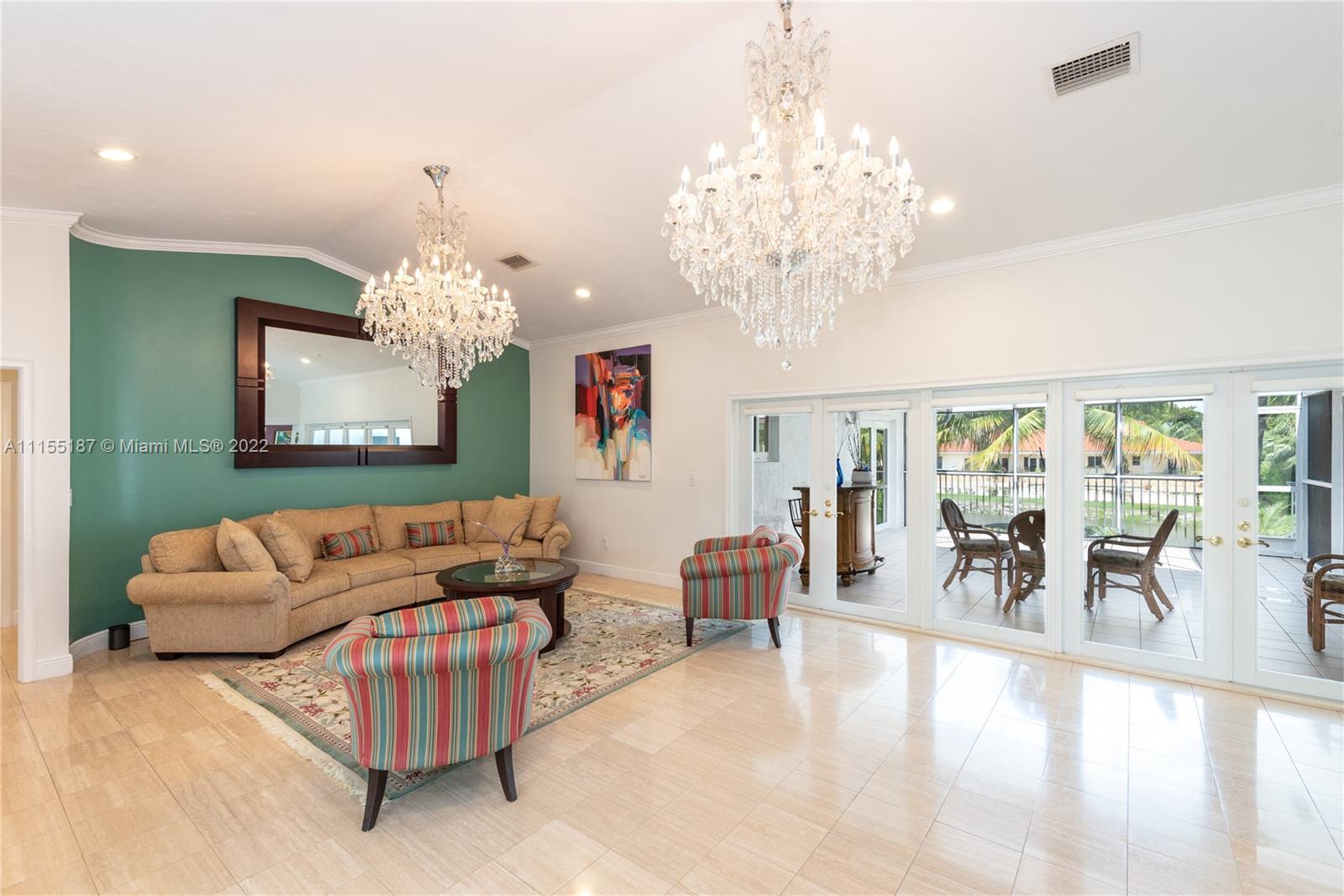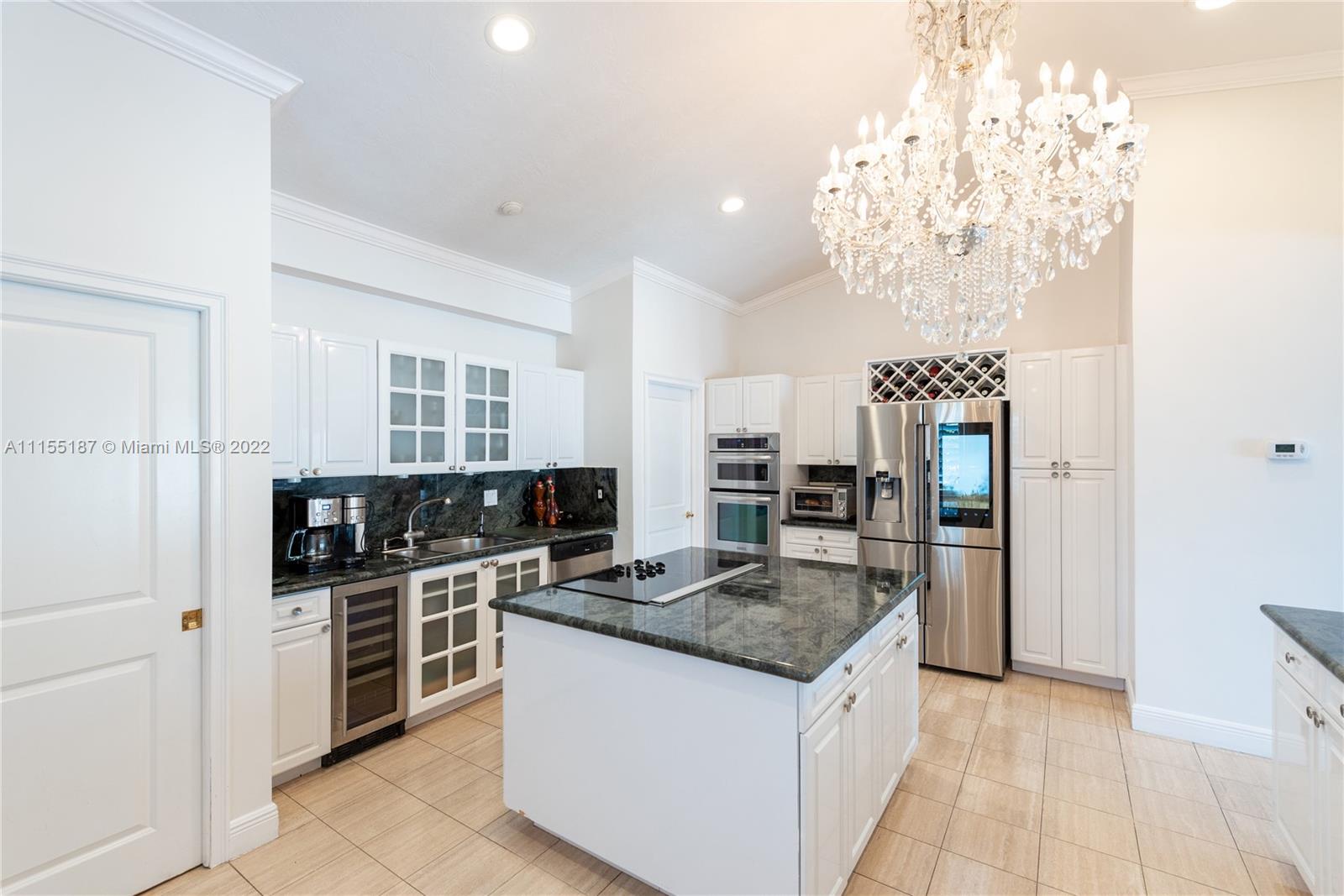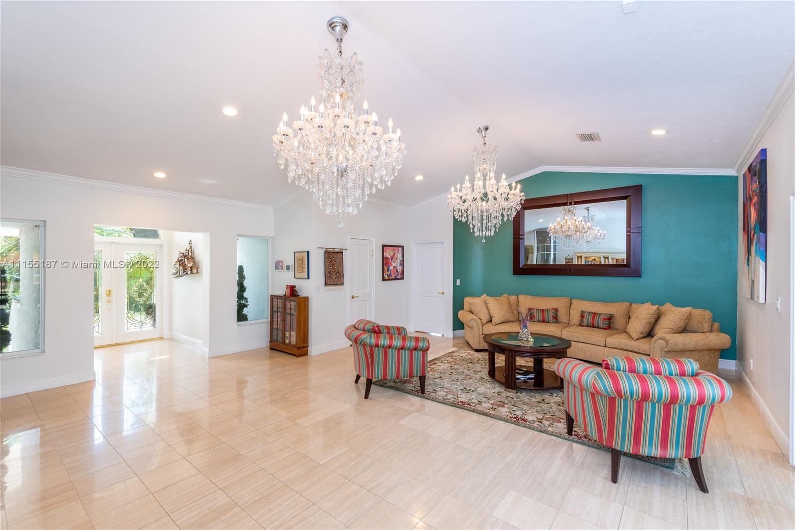 Elegant, two-story waterfront home with 5 bdrms / 4½ baths (with bidets), heated pool. a 10-seat movie theater, and a 4-car garage. 4,642 adj. sq. ft. on a 12,600-ft waterfront lot (NO ACCESS TO OPEN BAY). A curved driveway leads to the front door. Foyer entry. Formal DR to the right. Elevator. All white, newer kitchen with high-end appliances, and pantry overlooks the spacious Family room. Downstairs is an in-law suite with a full bath, billiard room, gym area, library/office, and storage. Outside find the covered entertainment patio with bar. Water cascades, a chickee hut, and the theater entrance. Gated Gables by the Sea with lots of parking and privacy. Excellent public/private schools nearby. Spectacular!. The owner is FIRM on price. Sold "as is". The roof needs some tiles replaced.