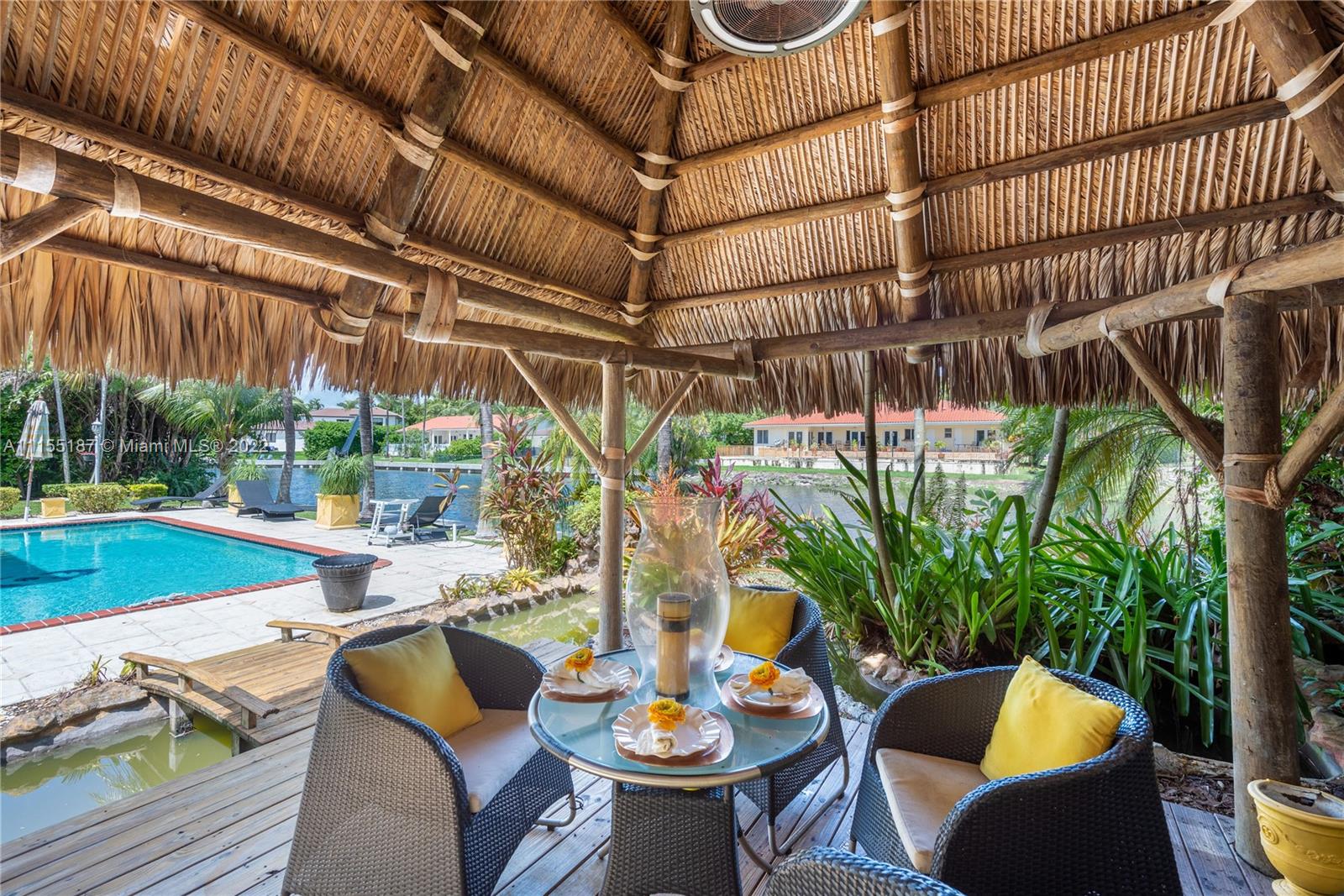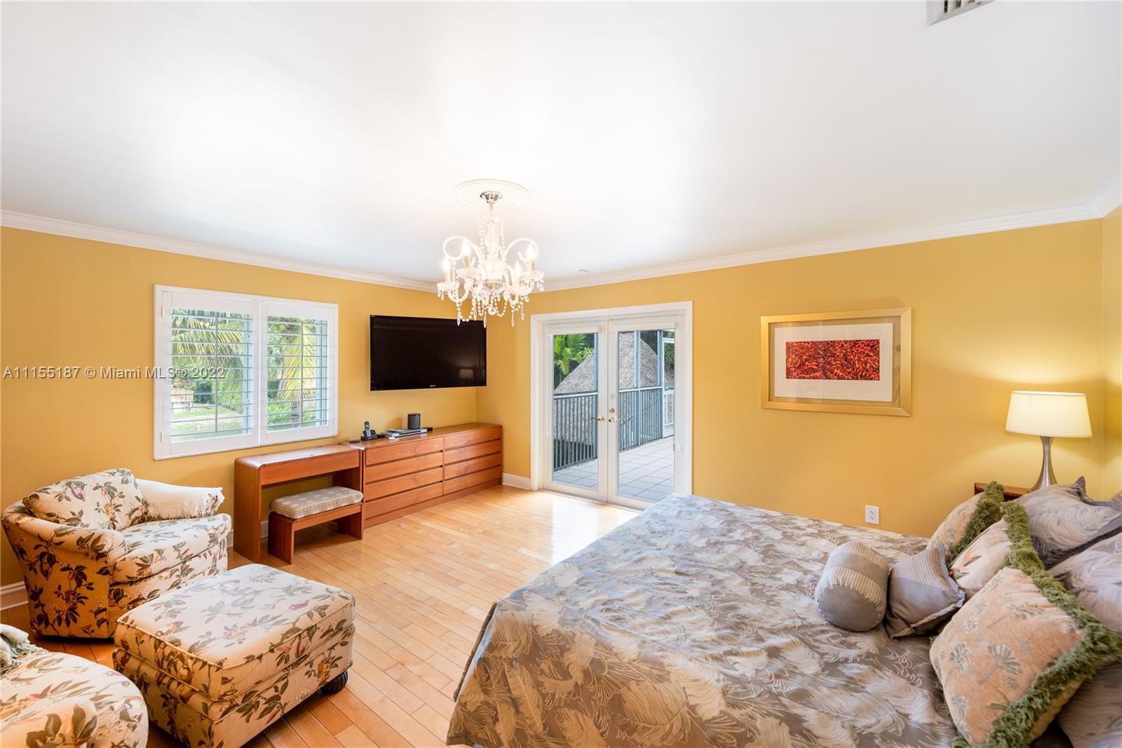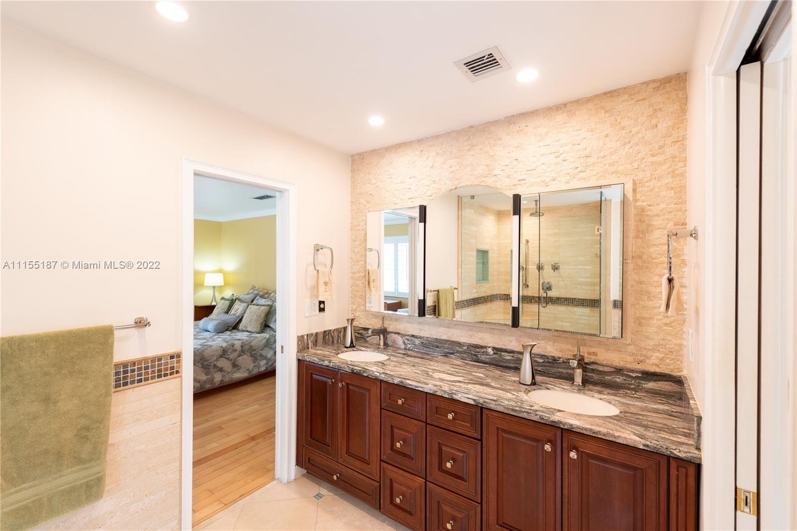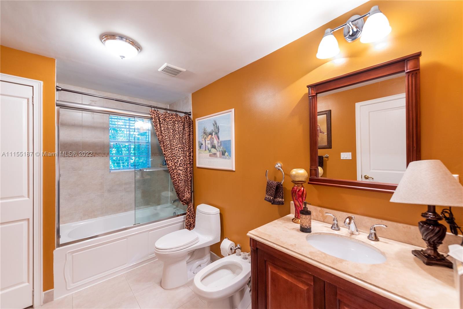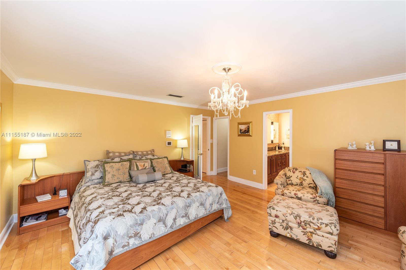 Elegant, two-story waterfront home with 5 bdrms / 4½ baths (with bidets), heated pool. a 10-seat movie theater, and a 4-car garage. 4,642 adj. sq. ft. on a 12,600-ft waterfront lot (NO ACCESS TO OPEN BAY). A curved driveway leads to the front door. Foyer entry. Formal DR to the right. Elevator. All white, newer kitchen with high-end appliances, and pantry overlooks the spacious Family room. Downstairs is an in-law suite with a full bath, billiard room, gym area, library/office, and storage. Outside find the covered entertainment patio with bar. Water cascades, a chickee hut, and the theater entrance. Gated Gables by the Sea with lots of parking and privacy. Excellent public/private schools nearby. Spectacular!. The owner is FIRM on price. Sold "as is". The roof needs some tiles replaced.