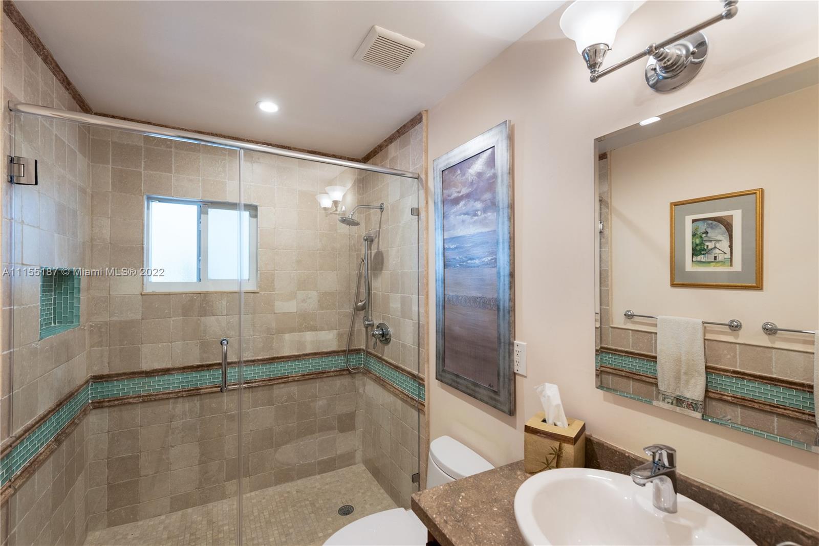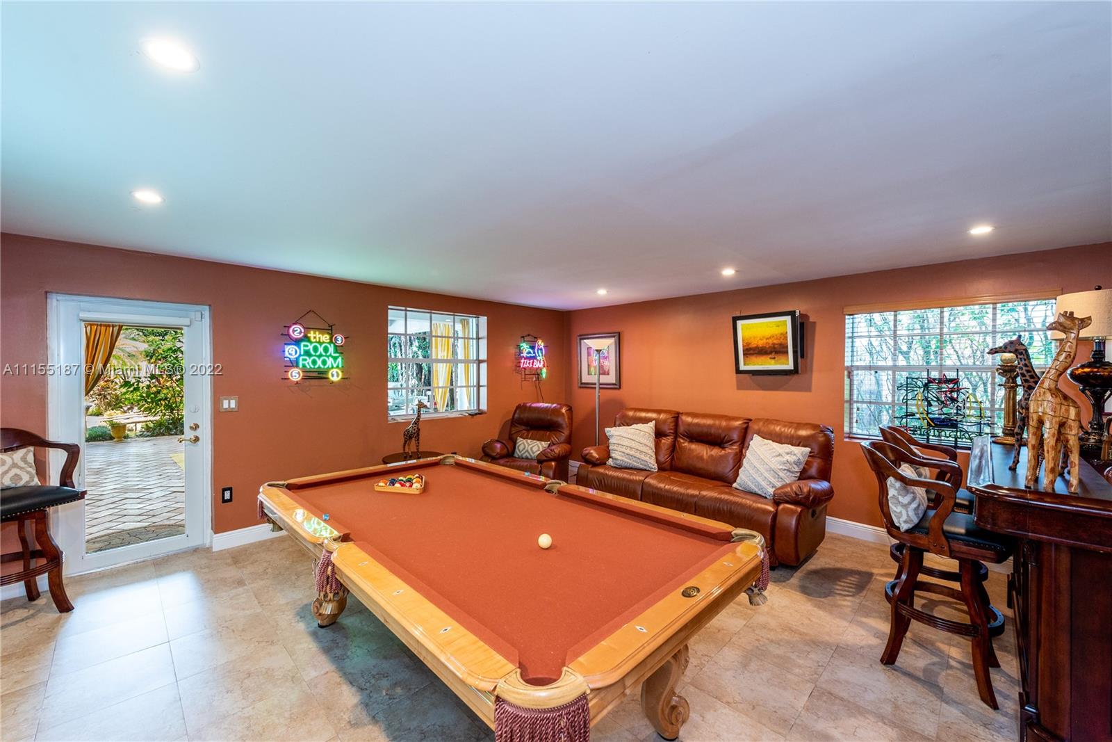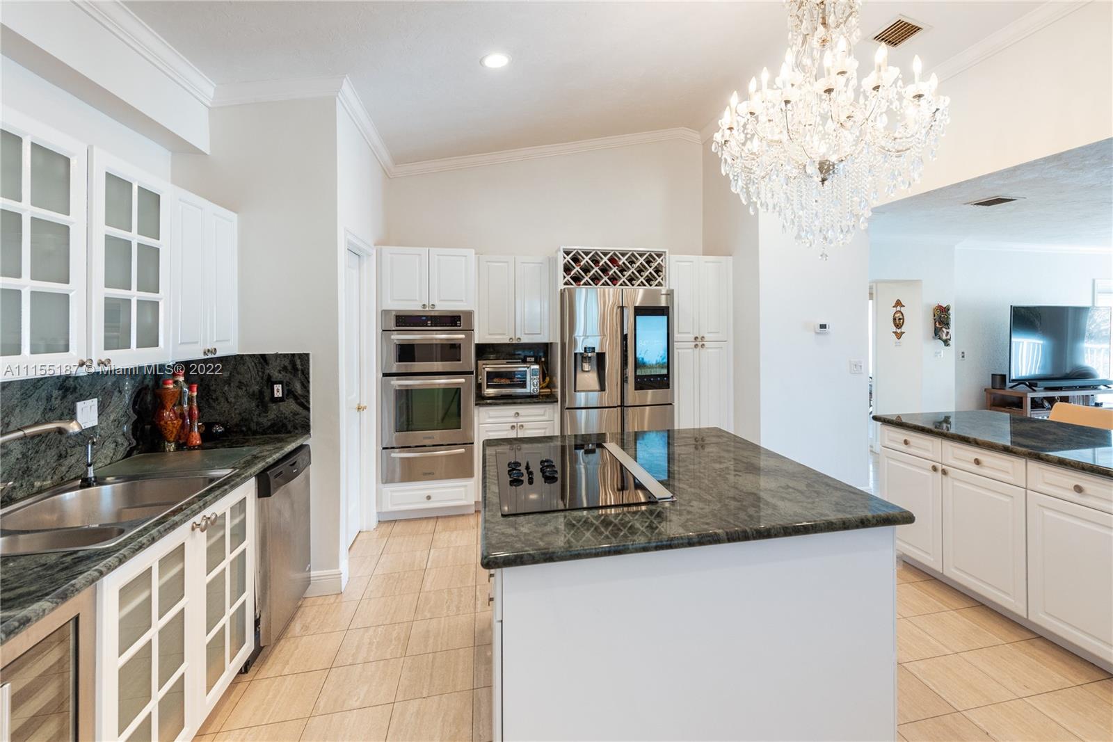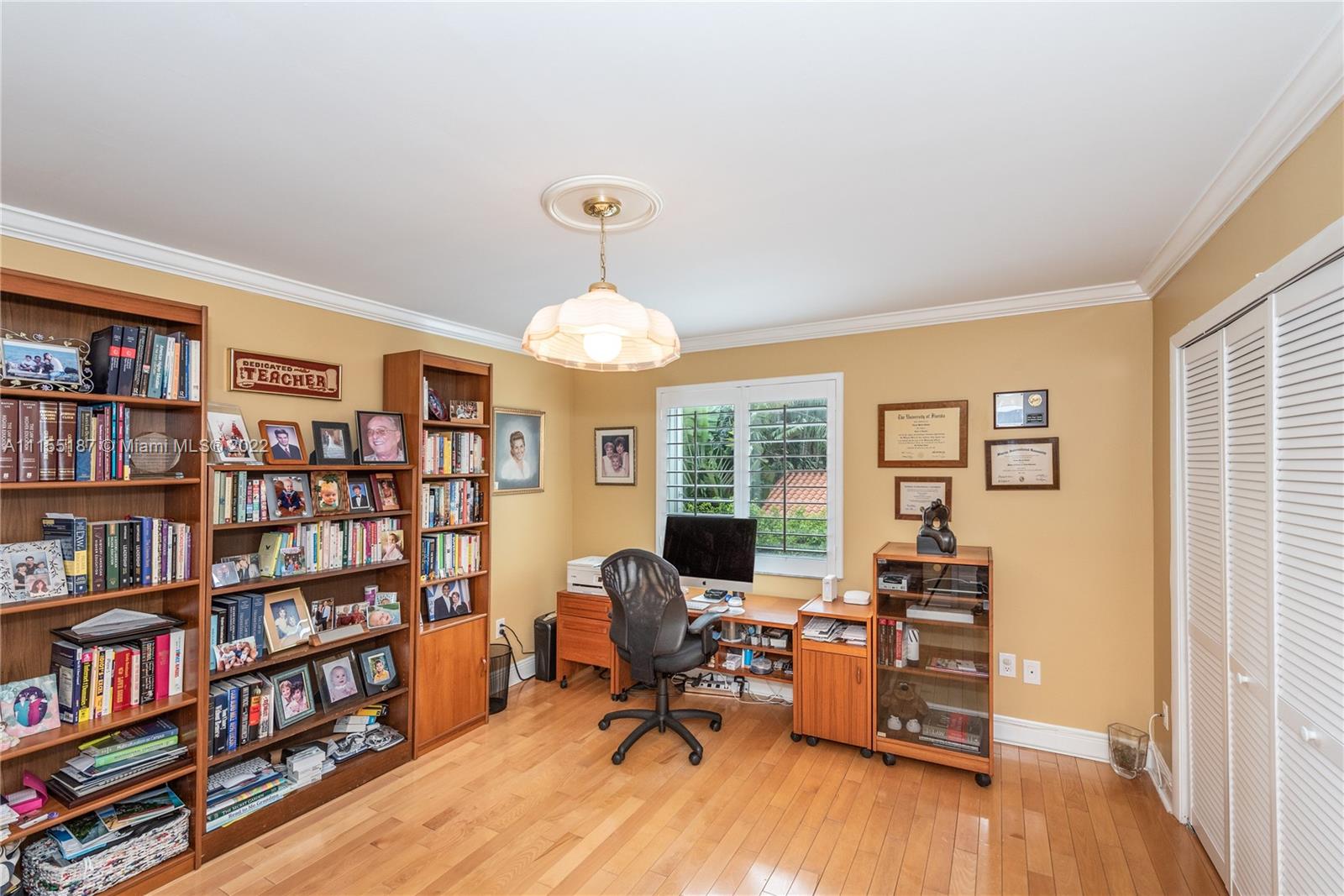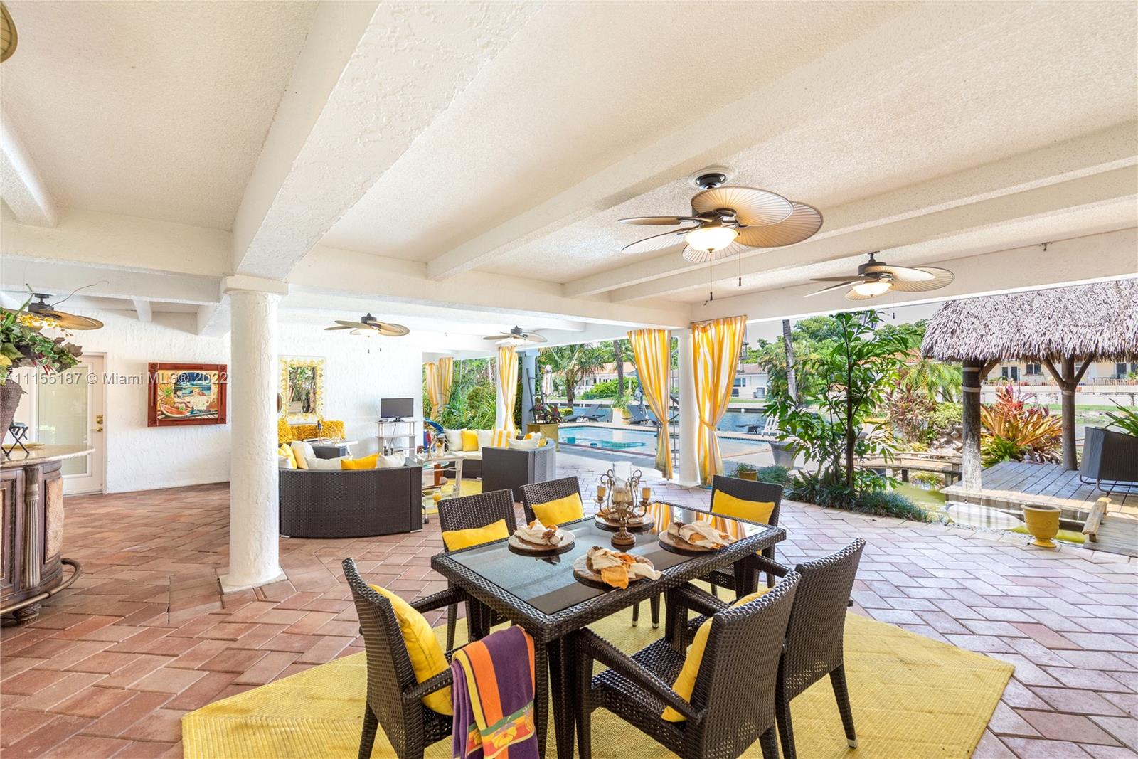 Elegant, two-story waterfront home with 5 bdrms / 4½ baths (with bidets), heated pool. a 10-seat movie theater, and a 4-car garage. 4,642 adj. sq. ft. on a 12,600-ft waterfront lot (NO ACCESS TO OPEN BAY). A curved driveway leads to the front door. Foyer entry. Formal DR to the right. Elevator. All white, newer kitchen with high-end appliances, and pantry overlooks the spacious Family room. Downstairs is an in-law suite with a full bath, billiard room, gym area, library/office, and storage. Outside find the covered entertainment patio with bar. Water cascades, a chickee hut, and the theater entrance. Gated Gables by the Sea with lots of parking and privacy. Excellent public/private schools nearby. Spectacular!. The owner is FIRM on price. Sold "as is". The roof needs some tiles replaced.