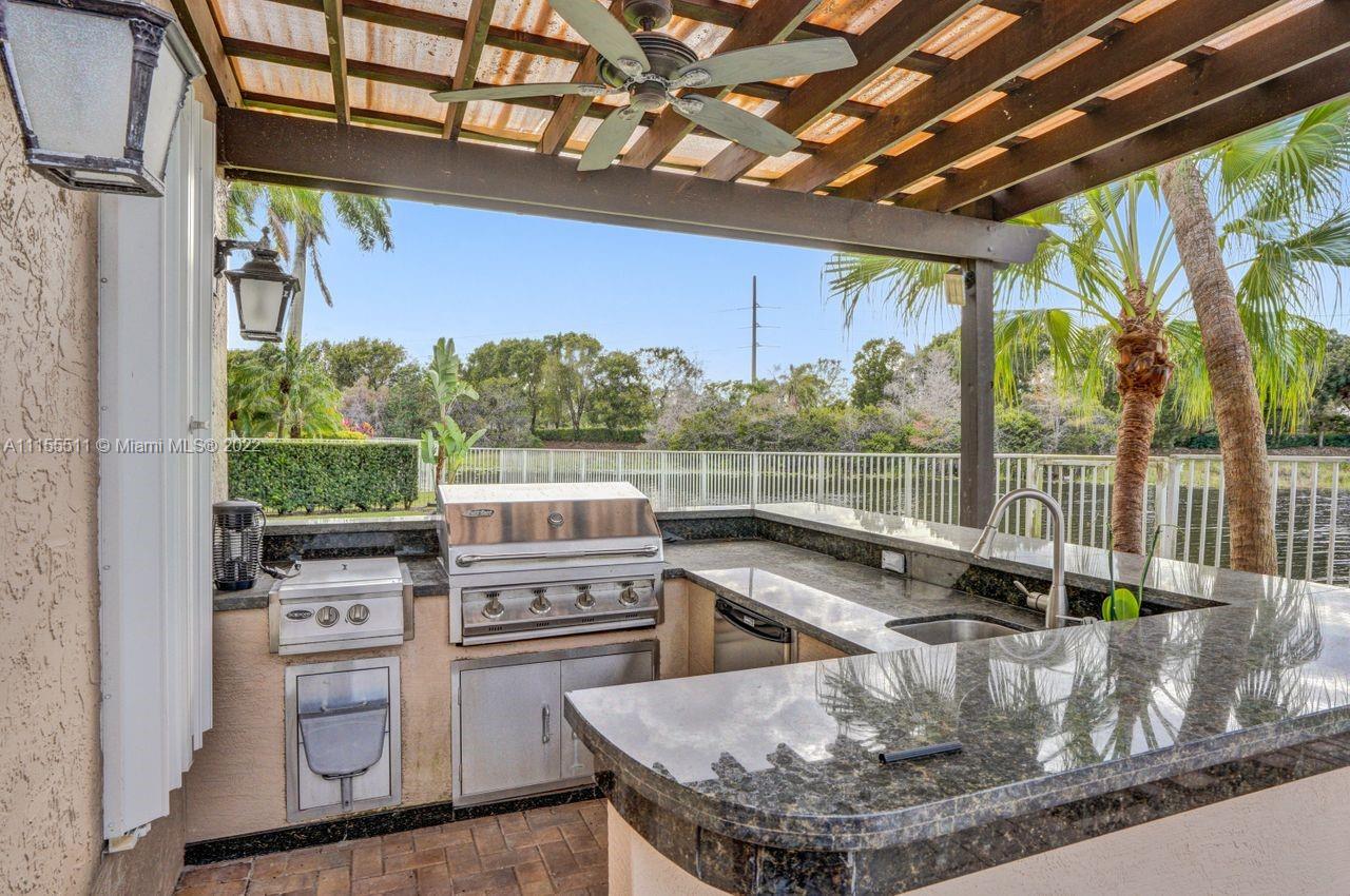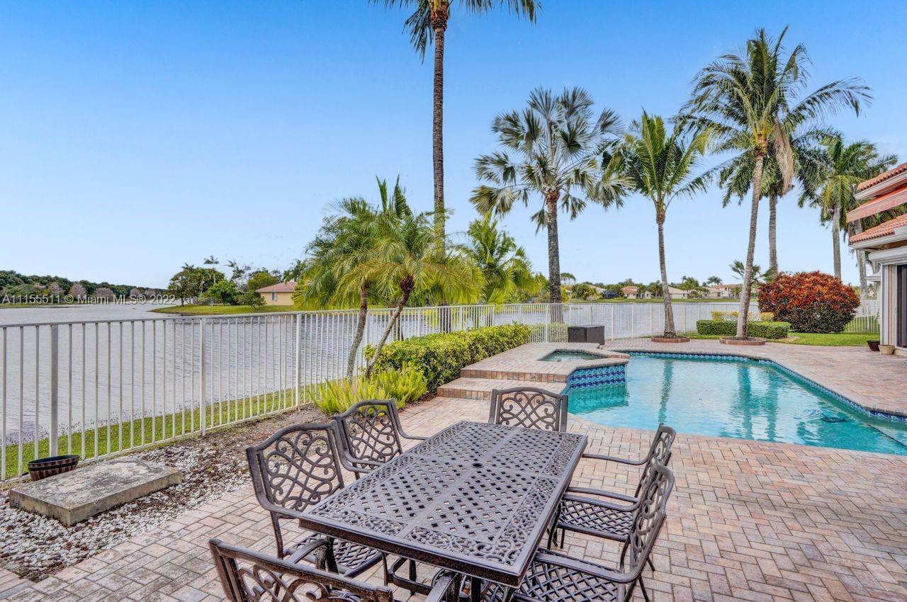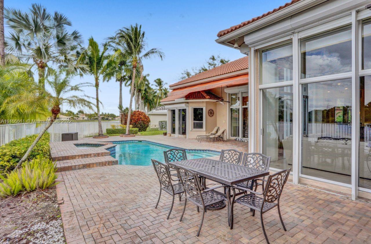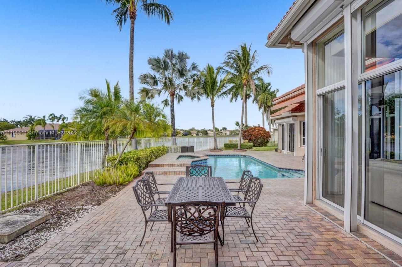 Absolutely gorgeous estate home on a huge 1/2 acre cul de-sac lot in Weston Hills Country club.Home shows great with 5 bedrooms and 5 baths with over 4000 sf living area. Open floor plan with high ceilings and marble flooring in main areas and real hardwood flooring in bedroooms.Nice open kitchen with stainless steel appliances, granite, breakfast area and huge family room. Step down bar area and nice formal area with views of pool and lake. Large master suite w/real wood flooring, tray ceiling and updated master bathroom.Stunning pool and patio area with barbeque and bar area, heated free form pool and jacuzzi with tranquil and long lake views. Oversized pie shaped lot with plenty of room to play and entertain. Home has accordion hurricane shutters, newer AC units and roof from 2009