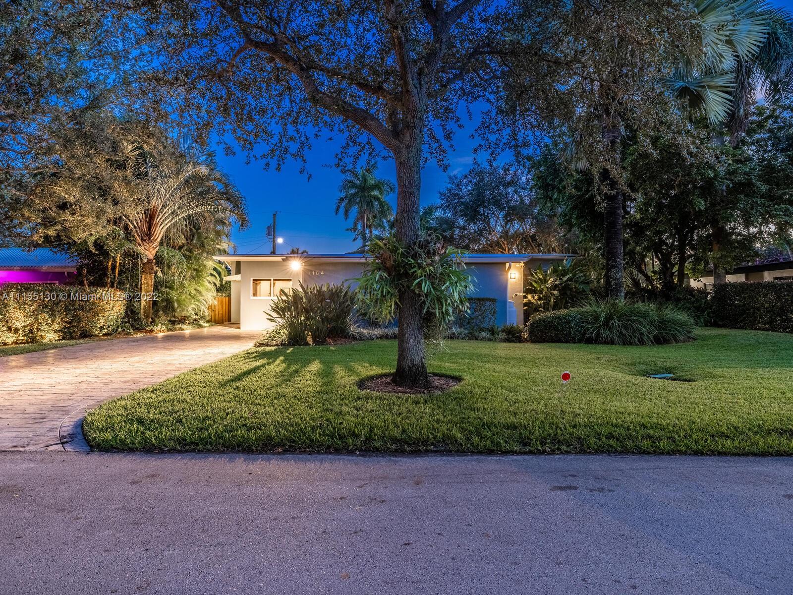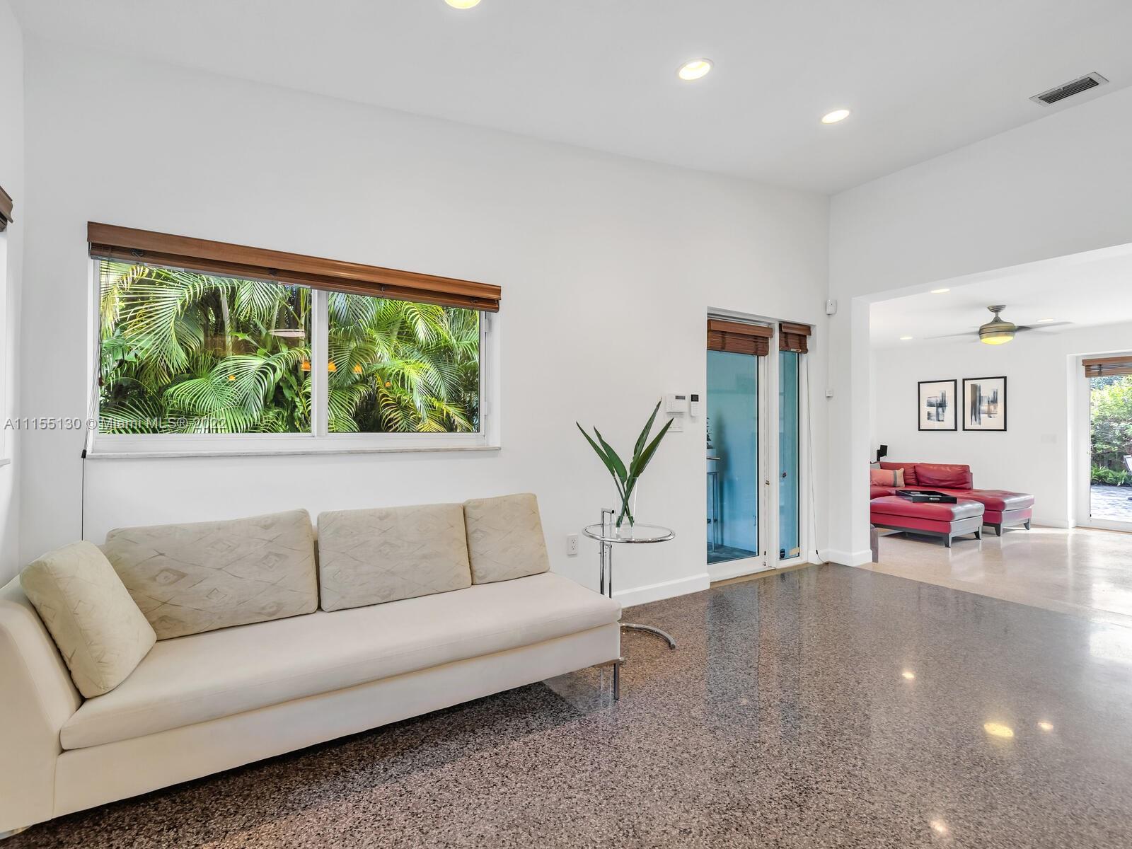 Welcome to Shores Casa Bahia! Breathe easy in your own personal oasis on a quiet East Miami Shores cul-de-sac in this updated, open flow Mid-Century Modern home with massive lush, illuminated tropical rear gardens. Spacious living and grand entertaining indoors and out! Expansive, fluid living with vaulted ceilings, dining, spectacular updated eat-in chef’s kitchen and beautiful terrazzo floors. Huge media room for watching your favorite movies. Updated main bedroom en-suite retreat with double vanities, large shower, tub, huge walk-in closet and double French doors to the gardens. Bright guestroom and separate private entrance office-- perfect to work from home! Plus, impact windows-doors and 1-car garage. Tucked away, yet close to all the cool downtown Miami Shores shops and restaurants.