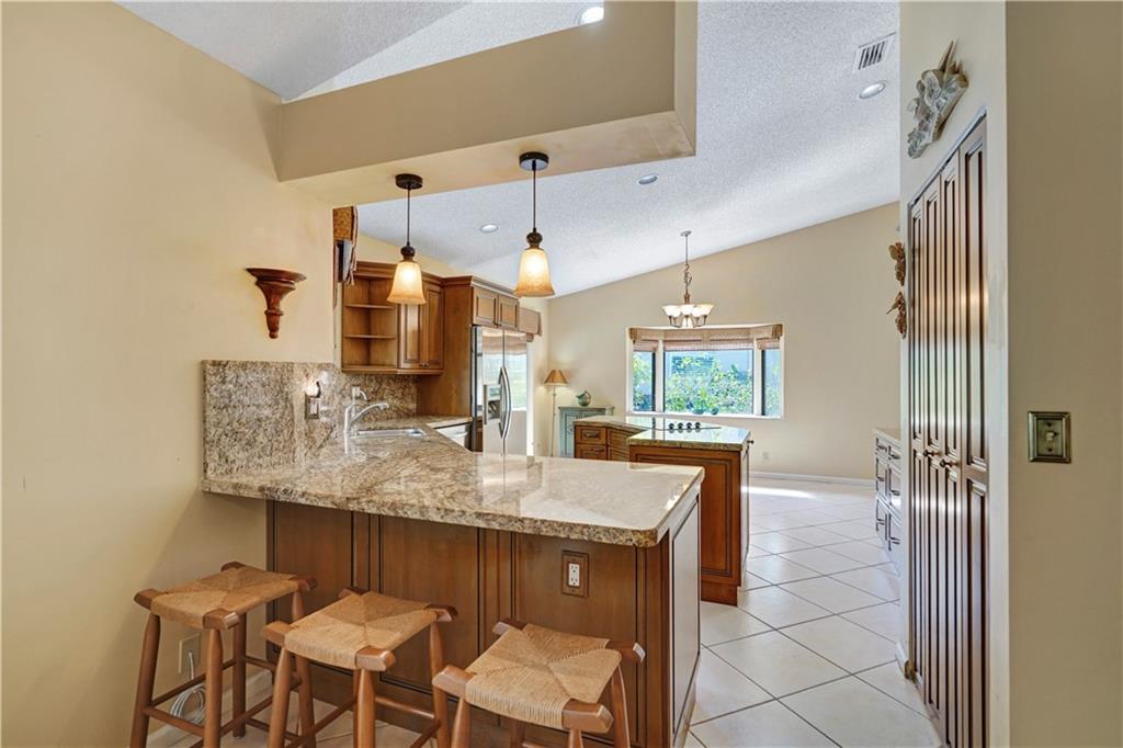This is it!! Updated huge 4 bedroom 2 bath waterfront pool home in sought after Pine Ridge. Vaulted ceilings greet you as you are drawn from the formal living & dining rooms through to the kitchen & great room with views of the yard, pool and canal. Renovated gourmet kitchen with huge granite island, custom cabinets & pantry. The primary suite features cathedral ceilings, walk-in closet & a remodeled bath with custom shower, dual sinks & a spa tub. Entertainers' private tropical oasis with pool & screened area with view of the canal. Fenced side yard for pets. Freshly painted. Roof installed 2020, A/C 3 years old, brand new electric panels inside and out. Impact windows up front with accordion shutters in back.