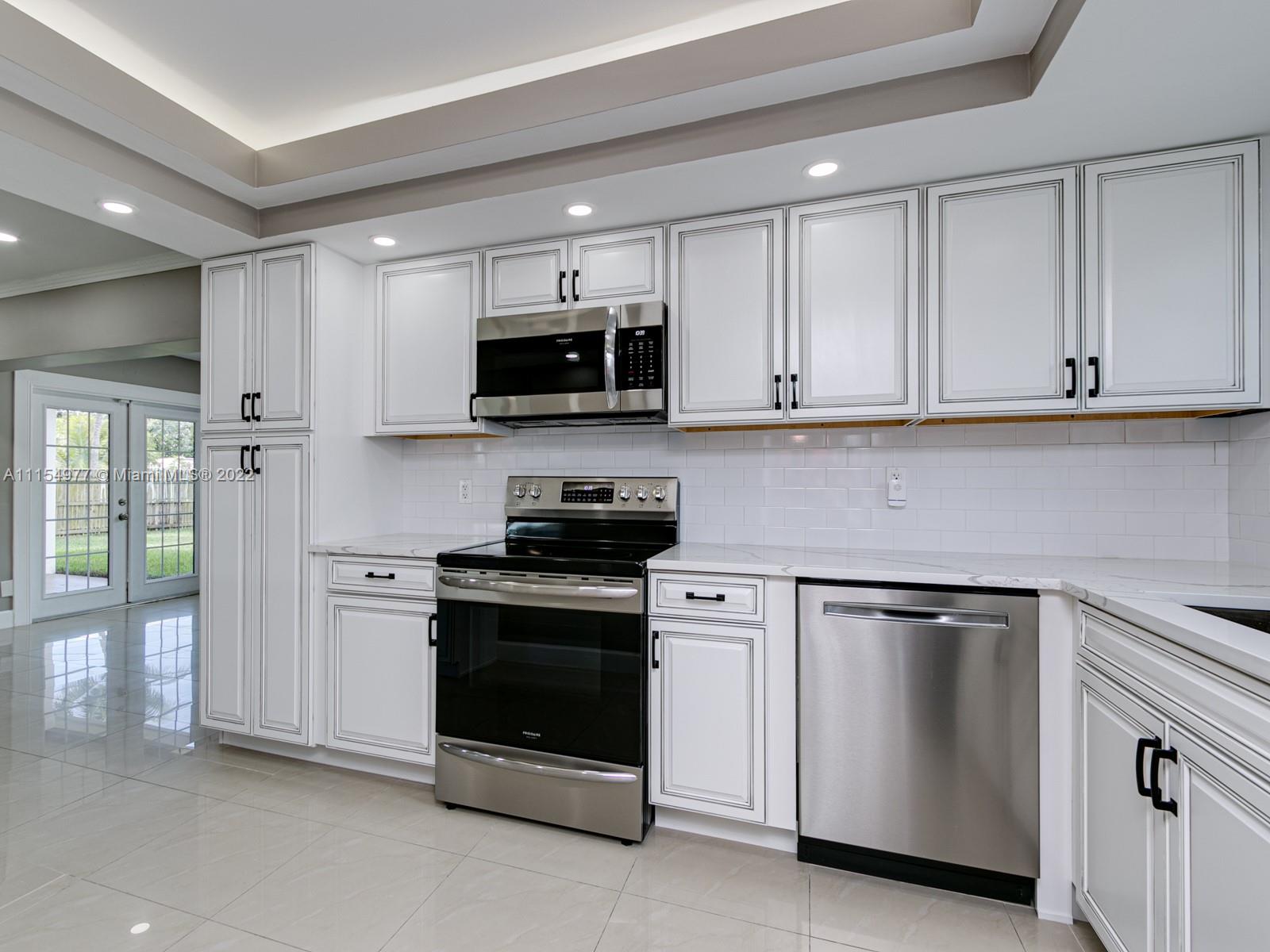 Wow! What a transformation on this Beautiful 4 Bed/2 Bath home w/ pool and large backyard. This home has a great open floor plan and meticulously updated with the most gorgeous finishes beginning with the top of the line kitchen cabinets and quartz counter tops with waterfall edge as well as new S/S appliances. New high end vinyl flooring, and bathroom updates as well. Hurricane windows and doors throughout property. New resurfaced pool and new deck as well! All new recessed lighting in home along with brand new electrical panel and rewiring. New tankless water heater, new washer/dryer. Security system with cameras surround the property, smart home. Home features a second entrance for MIL quarters or a future tenant. Move in Ready! The work has been done, just bring your furniture.