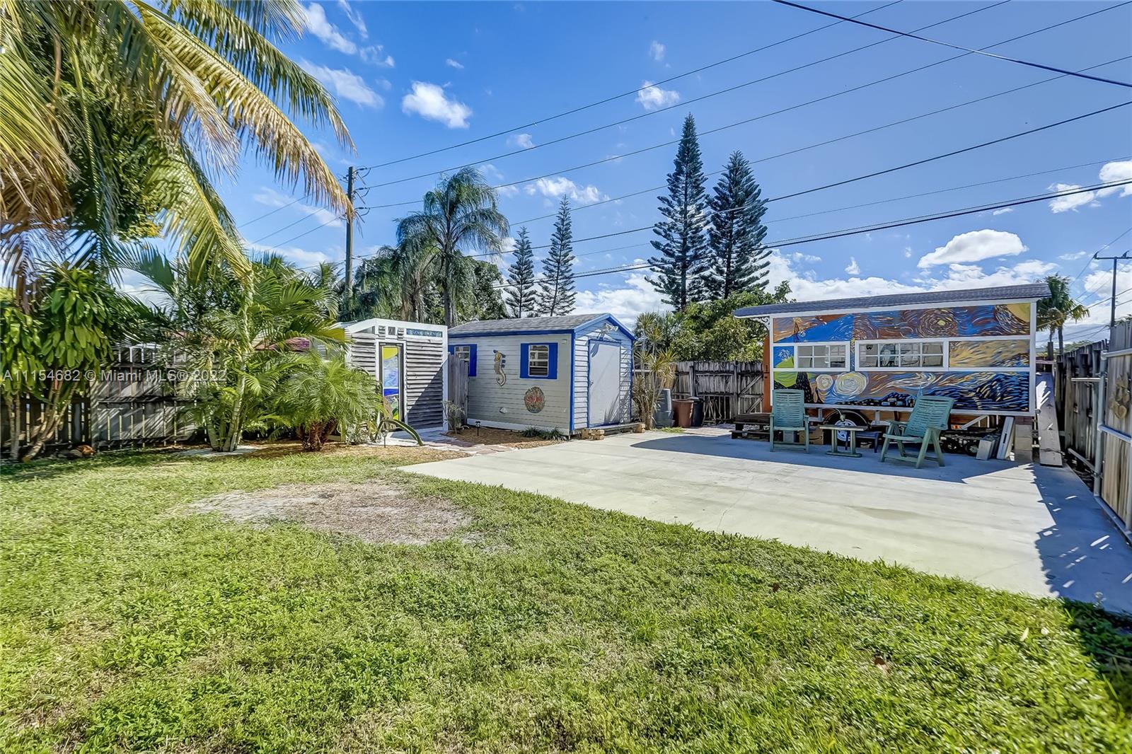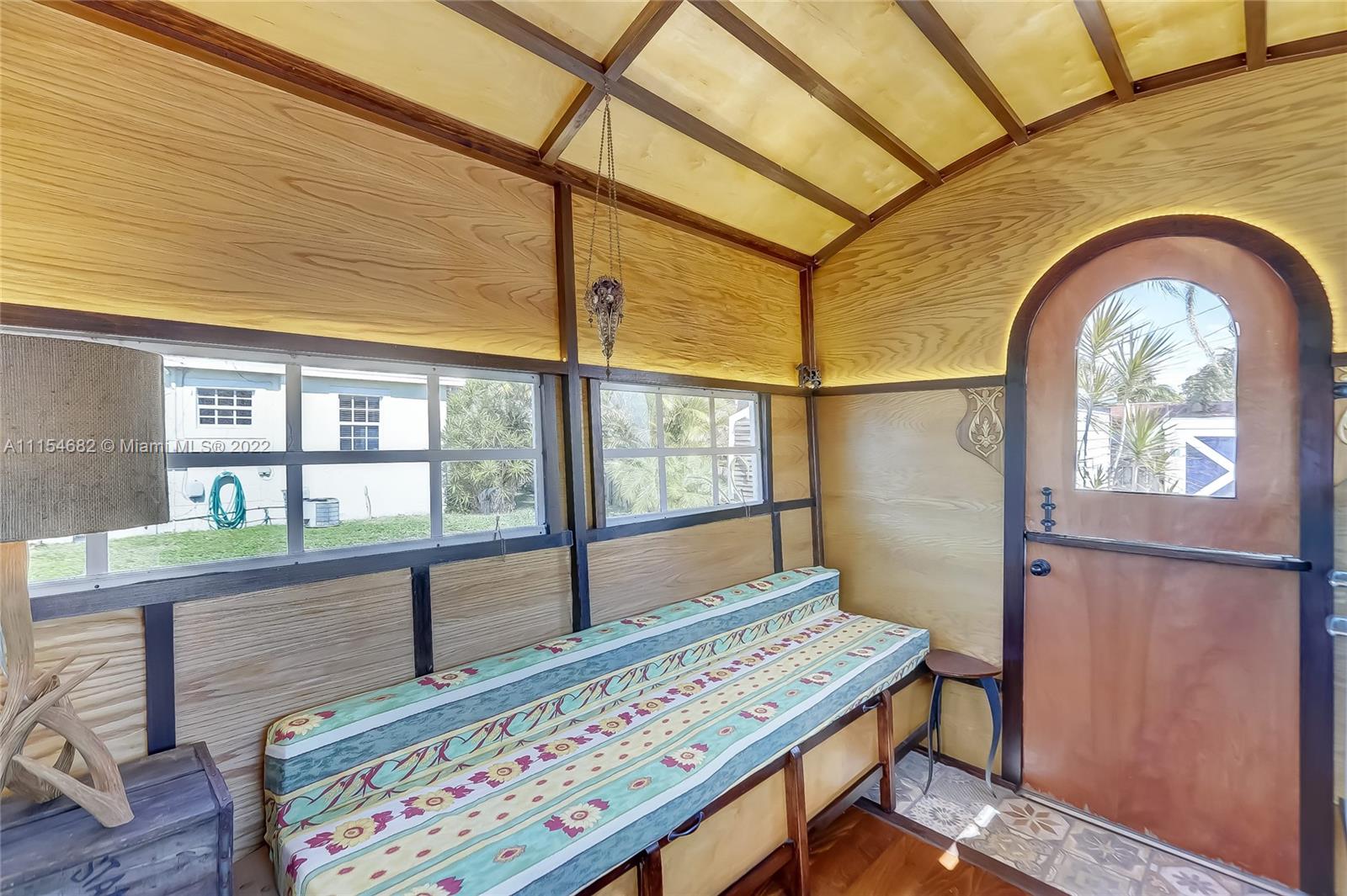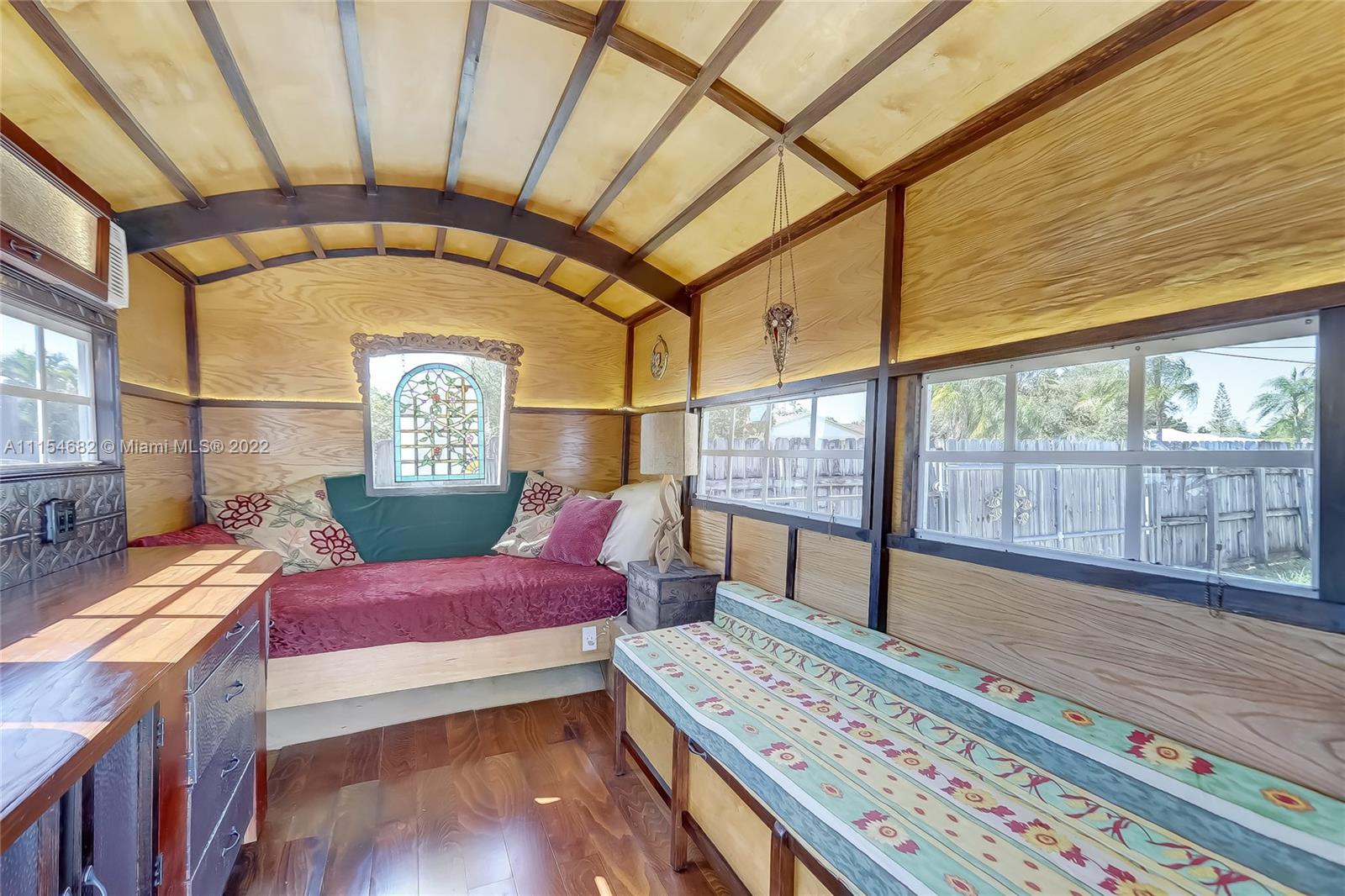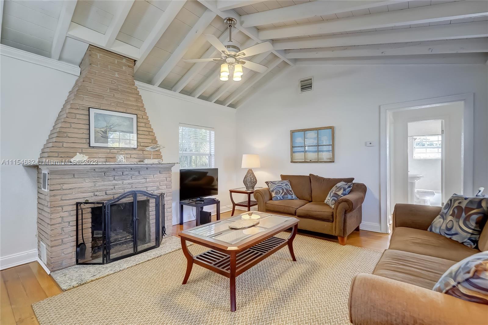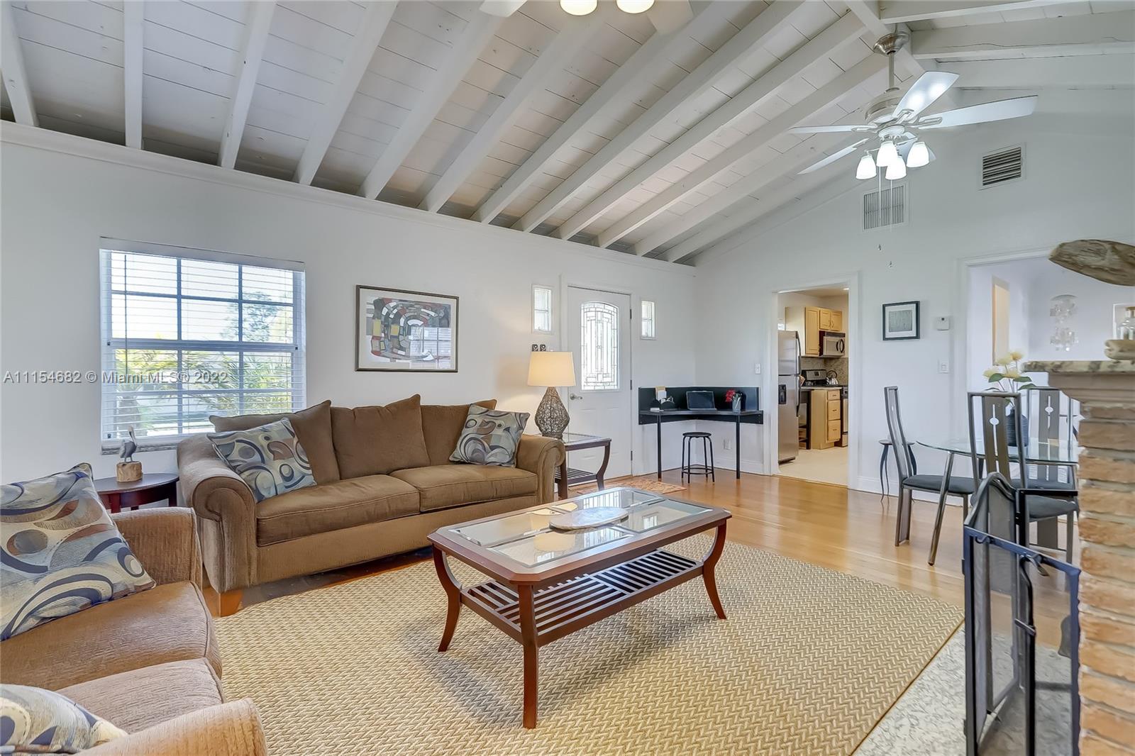 This charming Hollywood home has so much character and personality. Once you step through the front door you will be wowed by the gorgeous wood floors, dramatic and cathedral, white washed, wood planked ceiling and and exposed brick, wood burning fire place. The property has a split floor plan with 3 bedrooms and 2 full, moderately updated, bathrooms. The kitchen features granite countertops, wood cabinetry, and Stainless Steele appliances which includes a GAS stove. Take a walk out back and your corner lot has an outdoor shower to wash off after a day at the beach, a craftsman style workshop AND AN ADDITIONAL, CUSTOM BUILT, AIR CONDITIONED,TINY HOME. Being sold fully furnished and equipped! Sitting east of I-95 you are a very short drive to the beach.