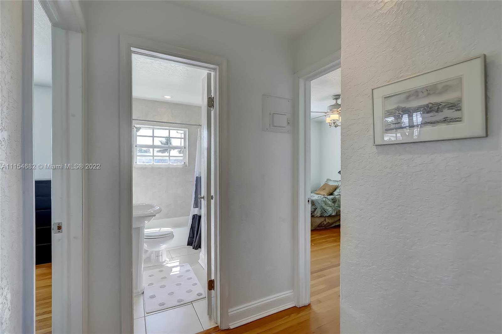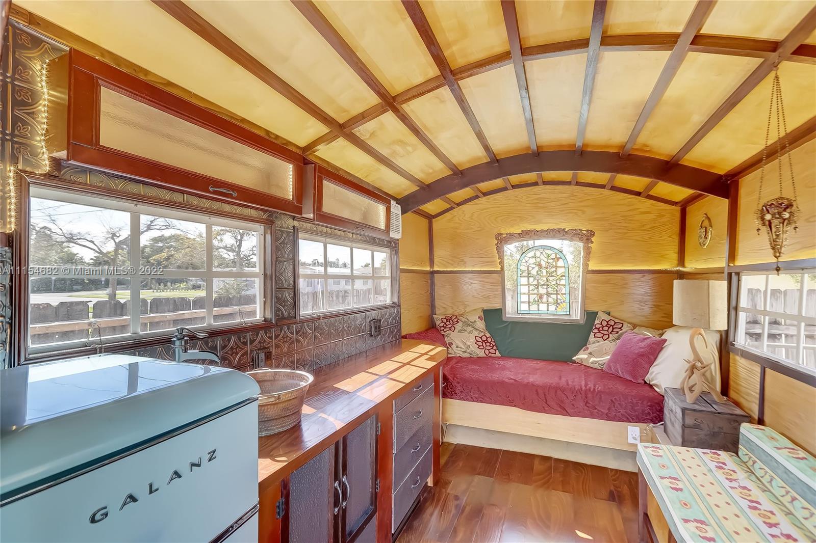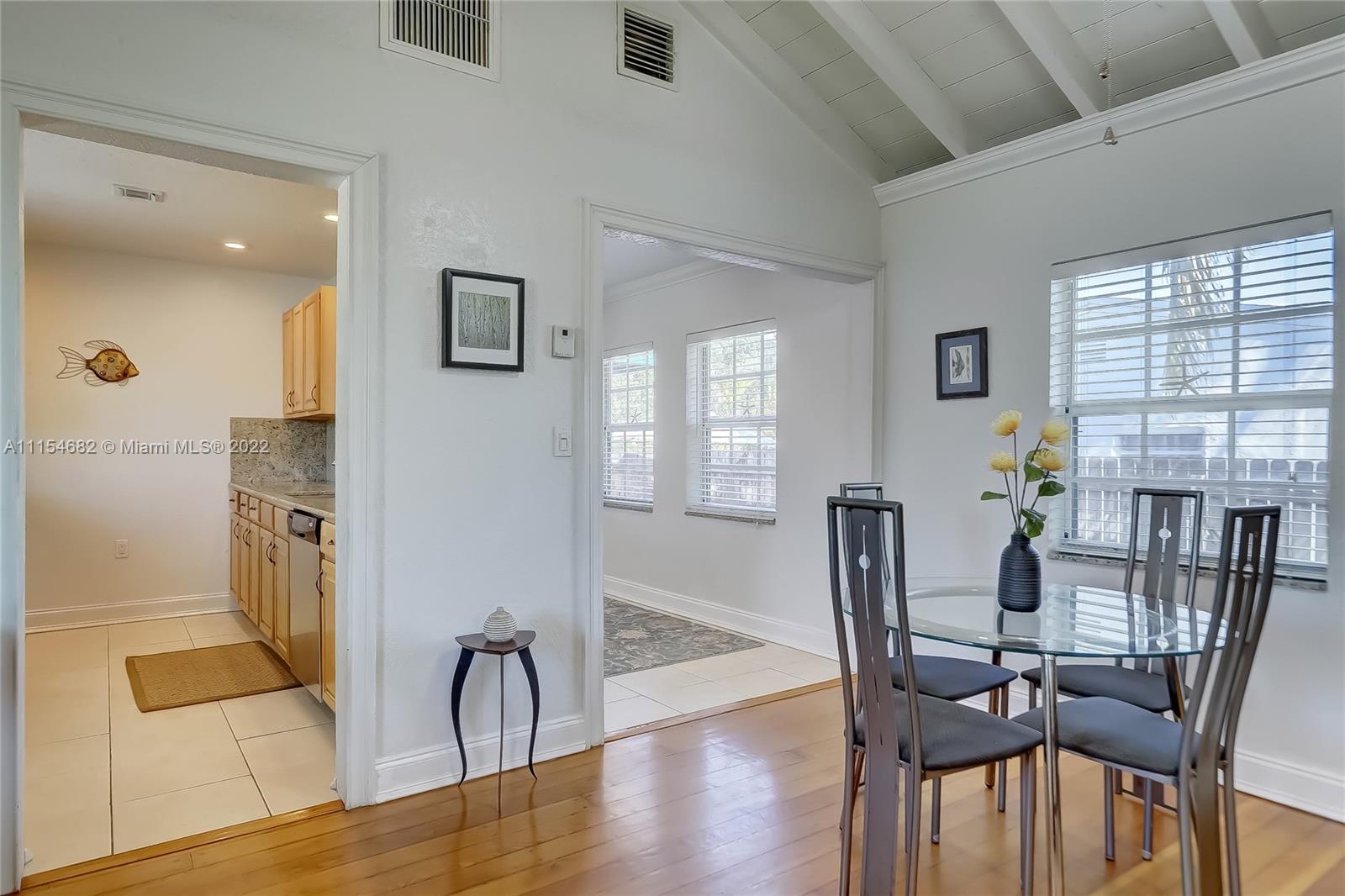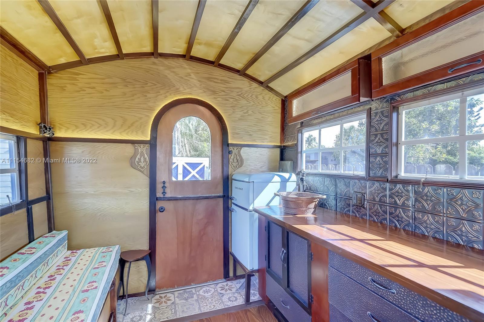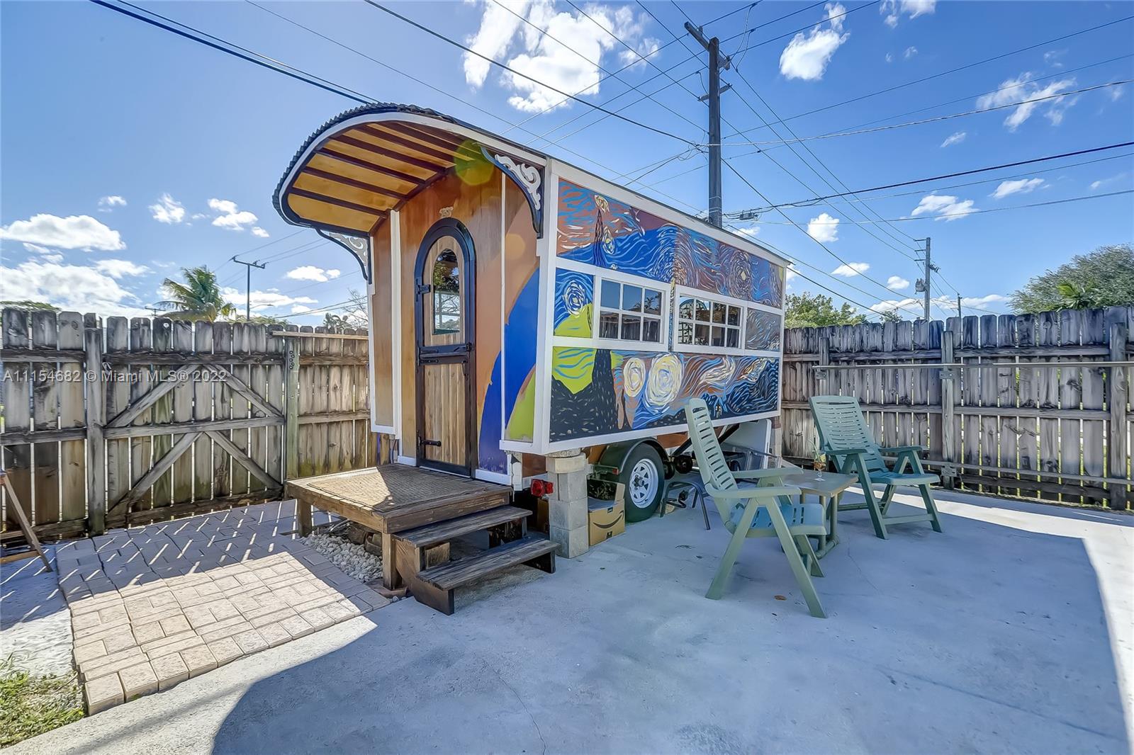 This charming Hollywood home has so much character and personality. Once you step through the front door you will be wowed by the gorgeous wood floors, dramatic and cathedral, white washed, wood planked ceiling and and exposed brick, wood burning fire place. The property has a split floor plan with 3 bedrooms and 2 full, moderately updated, bathrooms. The kitchen features granite countertops, wood cabinetry, and Stainless Steele appliances which includes a GAS stove. Take a walk out back and your corner lot has an outdoor shower to wash off after a day at the beach, a craftsman style workshop AND AN ADDITIONAL, CUSTOM BUILT, AIR CONDITIONED,TINY HOME. Being sold fully furnished and equipped! Sitting east of I-95 you are a very short drive to the beach.