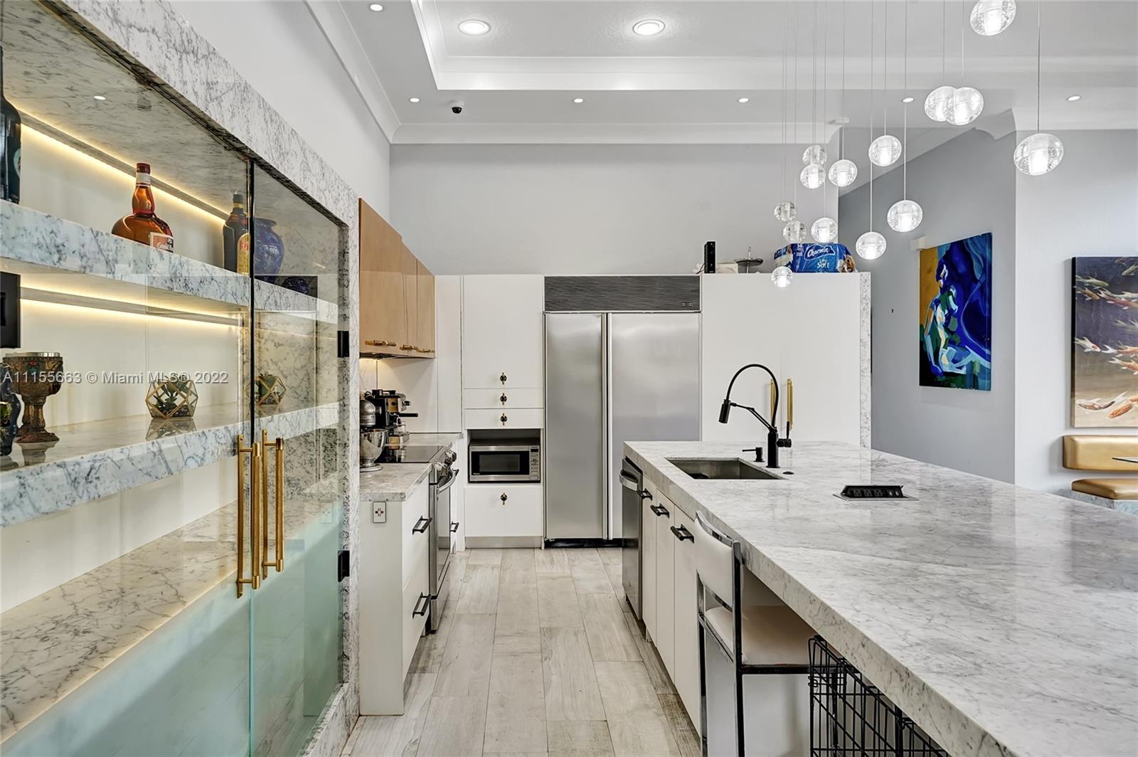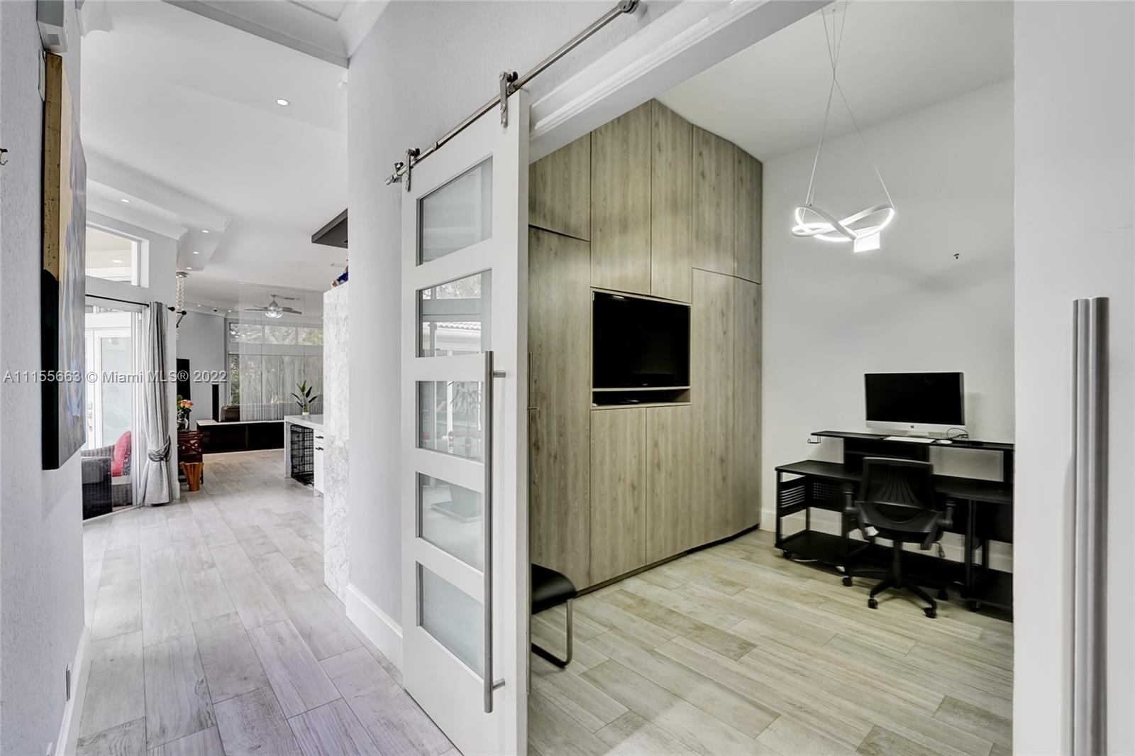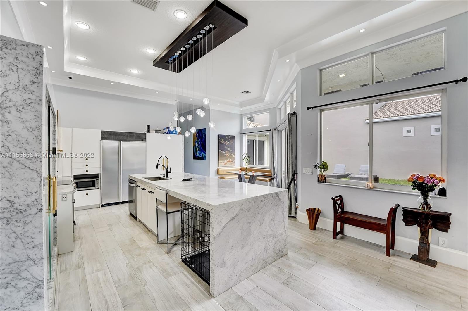 This luxuriously updated courtyard home features an open concept and decorator finishes throughout, perfectly blending natural light and modern luxury to add warmth, function and style. The primary suite is banked by sliding doors on both sides, maximizing indoor-outdoor living, and a spa style bath, complete with vessel sinks, a free standing tub and heated towel racks. The open chef's kitchen features marble countertops, custom cabinets, a Sub-Zero refrigerator and wine fridge. The 4th bedroom features barn doors and a full wall of storage -ideal as a bedroom or flex space. Porcelain wood plank floors throughout connect the split floor plan. A courtyard sits in the center of the home with a sparkling pool and private garden. Located in a prime neighborhood with resort style amenities.