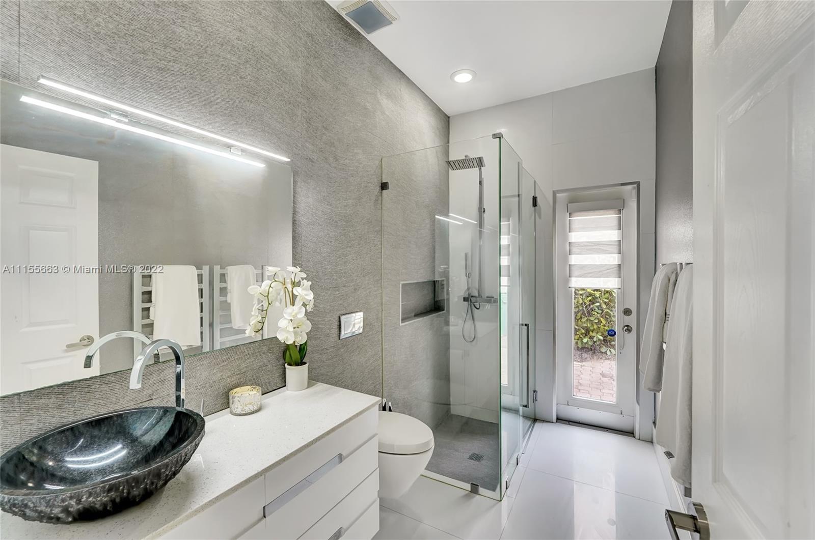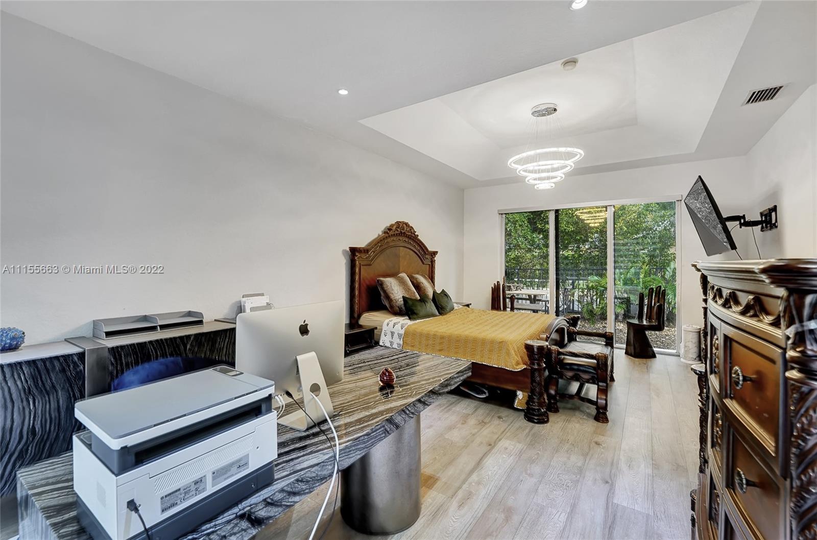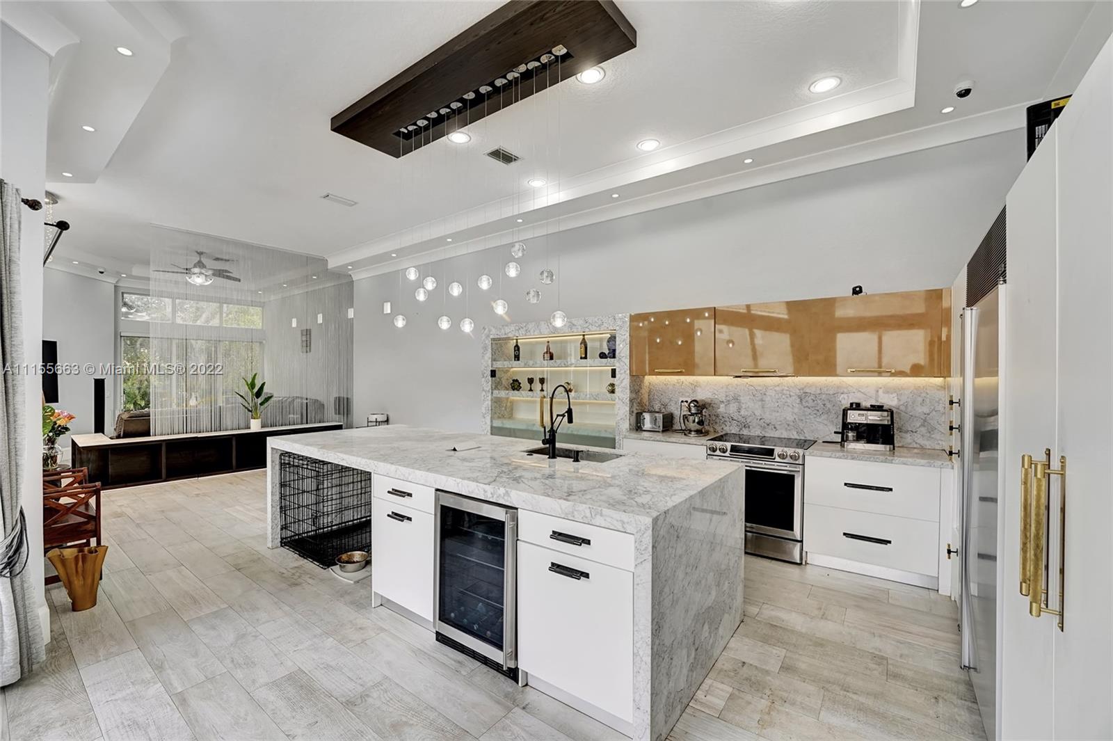 This luxuriously updated courtyard home features an open concept and decorator finishes throughout, perfectly blending natural light and modern luxury to add warmth, function and style. The primary suite is banked by sliding doors on both sides, maximizing indoor-outdoor living, and a spa style bath, complete with vessel sinks, a free standing tub and heated towel racks. The open chef's kitchen features marble countertops, custom cabinets, a Sub-Zero refrigerator and wine fridge. The 4th bedroom features barn doors and a full wall of storage -ideal as a bedroom or flex space. Porcelain wood plank floors throughout connect the split floor plan. A courtyard sits in the center of the home with a sparkling pool and private garden. Located in a prime neighborhood with resort style amenities.