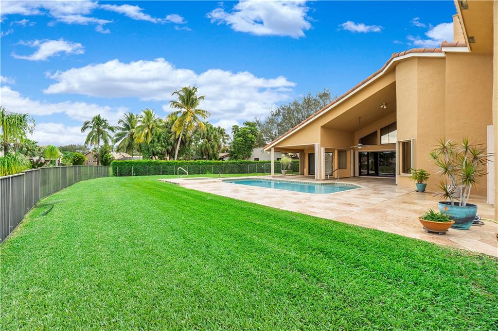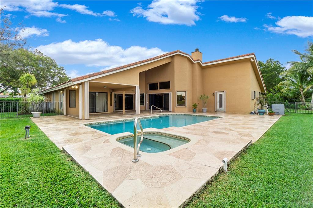 WOW! WHAT A VIEW!! AMAZING LAKEFRONT 5 BEDROOOM/ 3 BATH POOL HOME IN PINE RIDGE. APPROX 3000 SQUARE FEET OF LIVING AREA.FULLY FENCED YARD. WIDE OPEN TRIPLE SPLIT PLAN-GOURMET KITCHEN WITH WOOD CABINETS AND GRANITE COUNTERTOPS, UNDER CABINET LIGHTING. UPDATED BATHROOMS. PARTIAL IMPACT AND PARTIAL ACCORDIAN SHUTTERS. 2009 ROOF. CIRCULAR STAMPED CONCRETE DRIVEWAY.LOW HOA'S. CLOSE TO SHOPPING, DINING AND MINUTES TO SAWGRASS. 5TH BEDROOM IS AN OFFICE. VACANT AND READY TO MOVE IN. THIS GEM WILL NOT LAST.