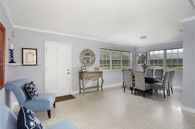 Spacious Mid-Century ranch home features an open floorplan and is surrounded by a lush privacy hedge, with hurricane impact windows and doors, recently restored terrazzo floors, updated kitchen with granite countertops, hardwood cabinetry and newer stainless steel appliances, and updated baths with natural stone tile and Kohler fixtures, newer HVAC, tankless water heater, and newer front loader washer and dryer. The home is centrally located within 0.5 miles from the University of Miami, 0.5 miles from The Biltmore Hotel, walking distance from the shops and dining of exclusive Merrick Park and 1 mile from the shops and dining of Miracle Mile; you won't find a better house at this price.