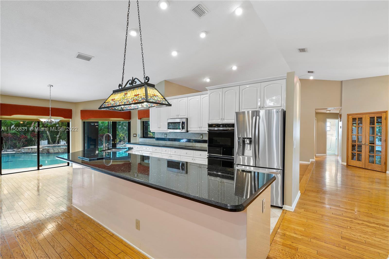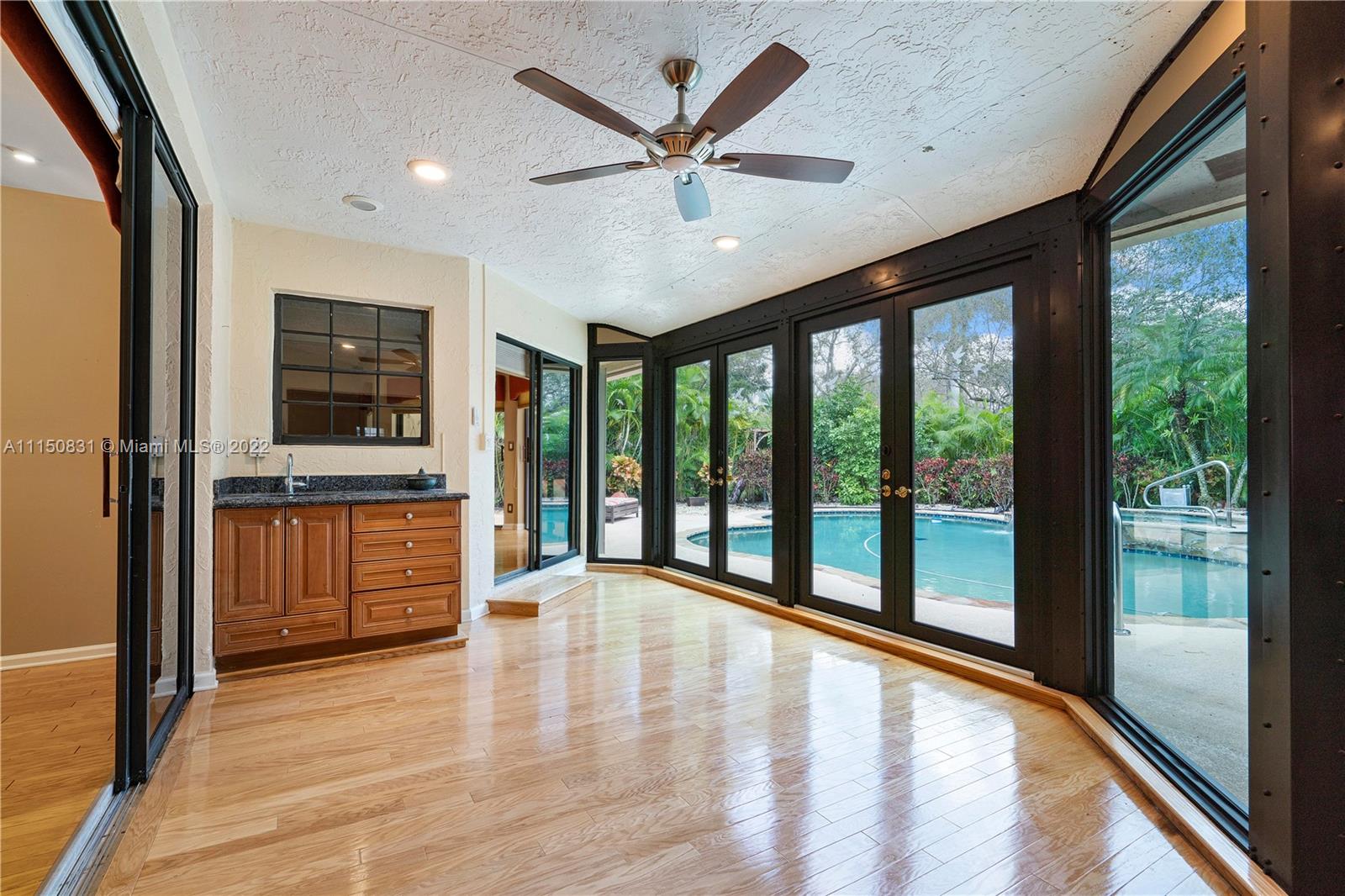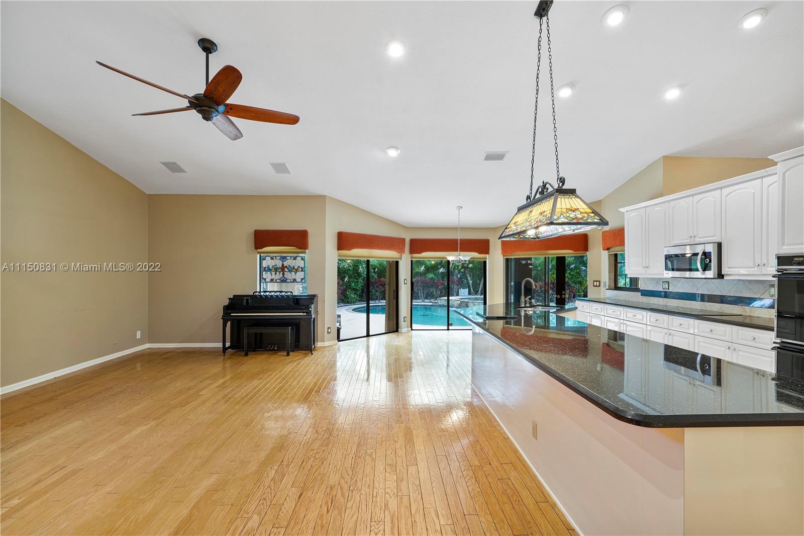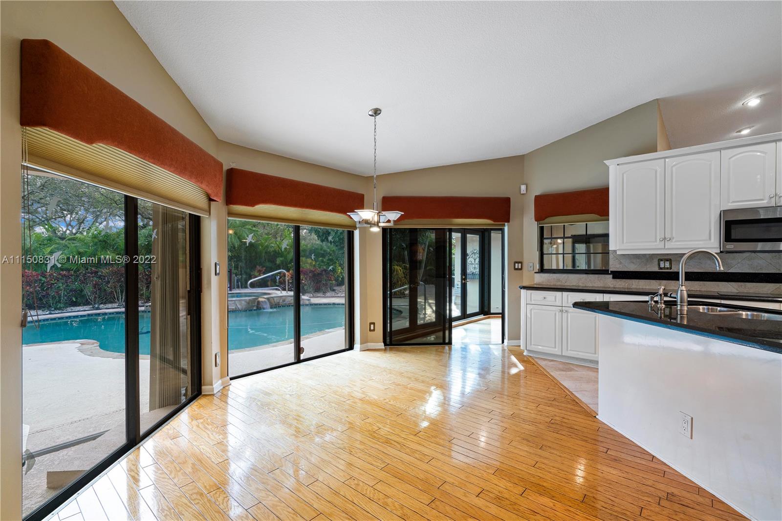 Wow! Beautiful 5 Bed / 4 Bath Pool Home with 3 Car Garage Located in Prestigious Gated Eagle Trace! New Roof 2012.Hurricane Impact Front Windows and New Sunroom With All Impact Windows And Doors. Accordion Shutters. Large Stamped Concrete Driveway. Hardwood Flooring. Large Open Split Bedroom Floorplan W/ Living, Dining, Family Rooms And Eat-In Kitchen. Granite Custom Kitchen With Extended Island, White Cabinets And Some Stainless Steel Appliances. Large Master Suite With Dual Closets. Master Bath Has Double Sinks, Separate Tub and Shower. 3 Large Bedrooms, Office, Share 2 Nice Size Hall Bathrooms. Indoor Laundry Room With Storage And Sink. Newer Two Zone High Efficiency AC's And Newer Water Heater. Security Systems. Private Tropical Backyard With Outdoor Shower And Half Bath. Must See!