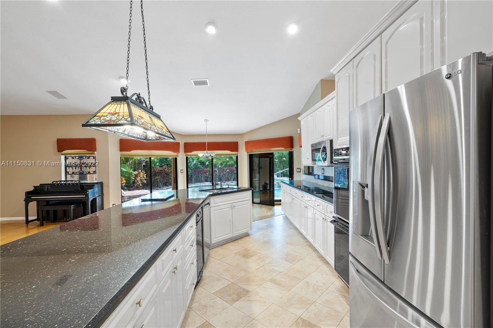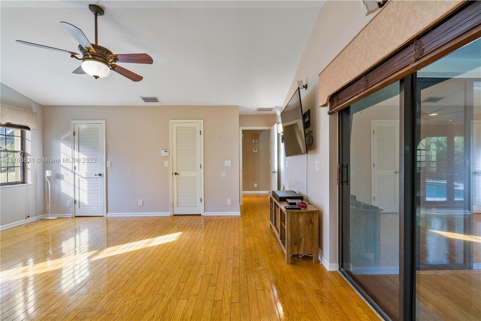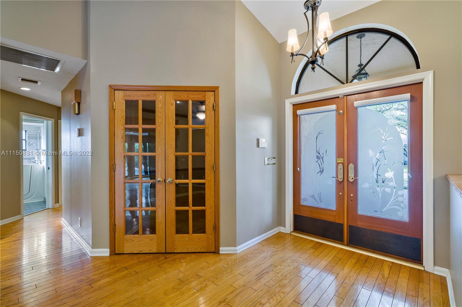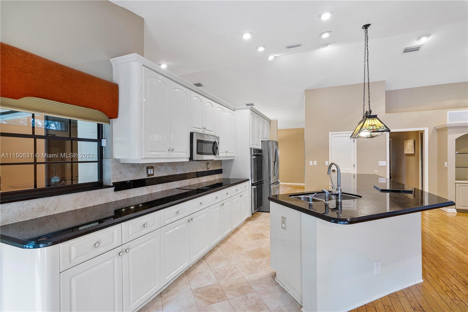 Wow! Beautiful 5 Bed / 4 Bath Pool Home with 3 Car Garage Located in Prestigious Gated Eagle Trace! New Roof 2012.Hurricane Impact Front Windows and New Sunroom With All Impact Windows And Doors. Accordion Shutters. Large Stamped Concrete Driveway. Hardwood Flooring. Large Open Split Bedroom Floorplan W/ Living, Dining, Family Rooms And Eat-In Kitchen. Granite Custom Kitchen With Extended Island, White Cabinets And Some Stainless Steel Appliances. Large Master Suite With Dual Closets. Master Bath Has Double Sinks, Separate Tub and Shower. 3 Large Bedrooms, Office, Share 2 Nice Size Hall Bathrooms. Indoor Laundry Room With Storage And Sink. Newer Two Zone High Efficiency AC's And Newer Water Heater. Security Systems. Private Tropical Backyard With Outdoor Shower And Half Bath. Must See!