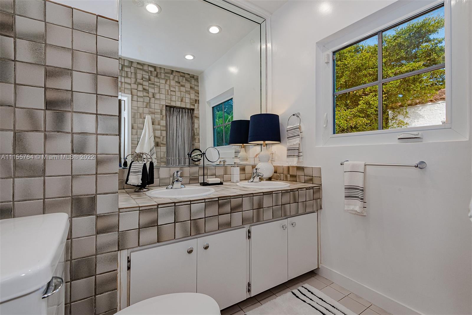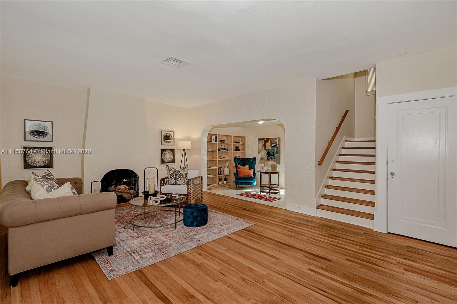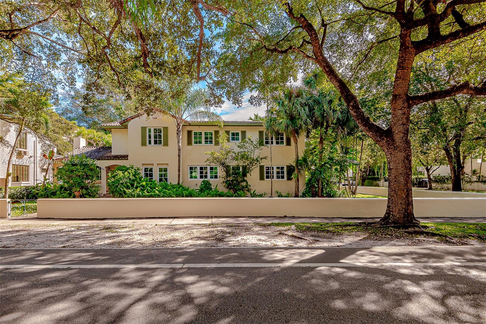 Charming Historic 1925 Mediterranean style house on prominent tree lined Alhambra Circle in Coral Gables. This lush landscaped house sits on a large 15,000 square foot corner with lot shielded within its perimeter wall. Main house features 5 bedrooms, 3 baths, two car garage, 9ft ceilings, oversized impact resistance windows and doors, hard wood flooring, fireplace in the living room. One bedroom, one bath downstairs. Kitchen is equipped with upgraded appliances. The large enclosed patio has a wet bar, heated pool with child safe gate and a full size guest cottage with living room, bedroom, bath and kitchenette. In addition, a large yard. Perfect house for family and entertaining.