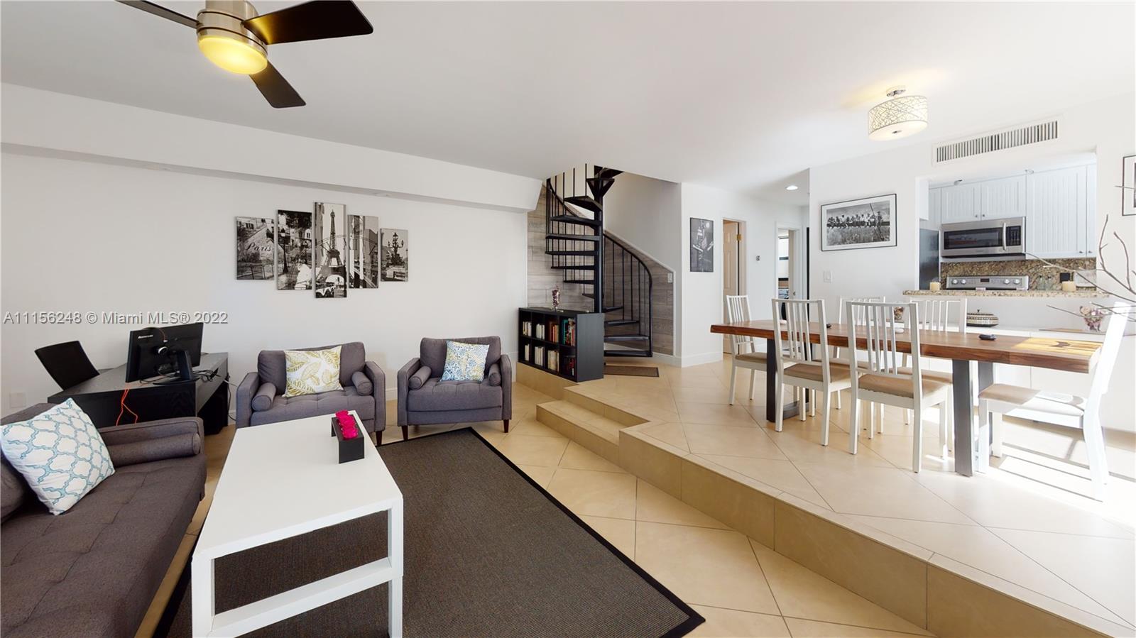 Updated Coconut Grove town home located on a quiet Center Grove street. 2 spacious bedrooms with their private baths. Powder room on the first floor. Open floor plan on the first floor with lots of natural light. New impact doors and windows. New roof. New A/C. New. bathrooms. Most of the appliances have been upgraded in the past 4 years. Large, no maintenance, walled in, private patio. Functional open kitchen with snack counter. Large living and dining rooms. Master bedroom with sitting area. Master bath with walk in shower and double sinks. Two walk in closets on the second floor and two additional large closets. Walk to downtown Coconut Grove, restaurants, shopping, public transportation. Two assigned, gated parking spaces. Pool in the complex. Ready to move in.