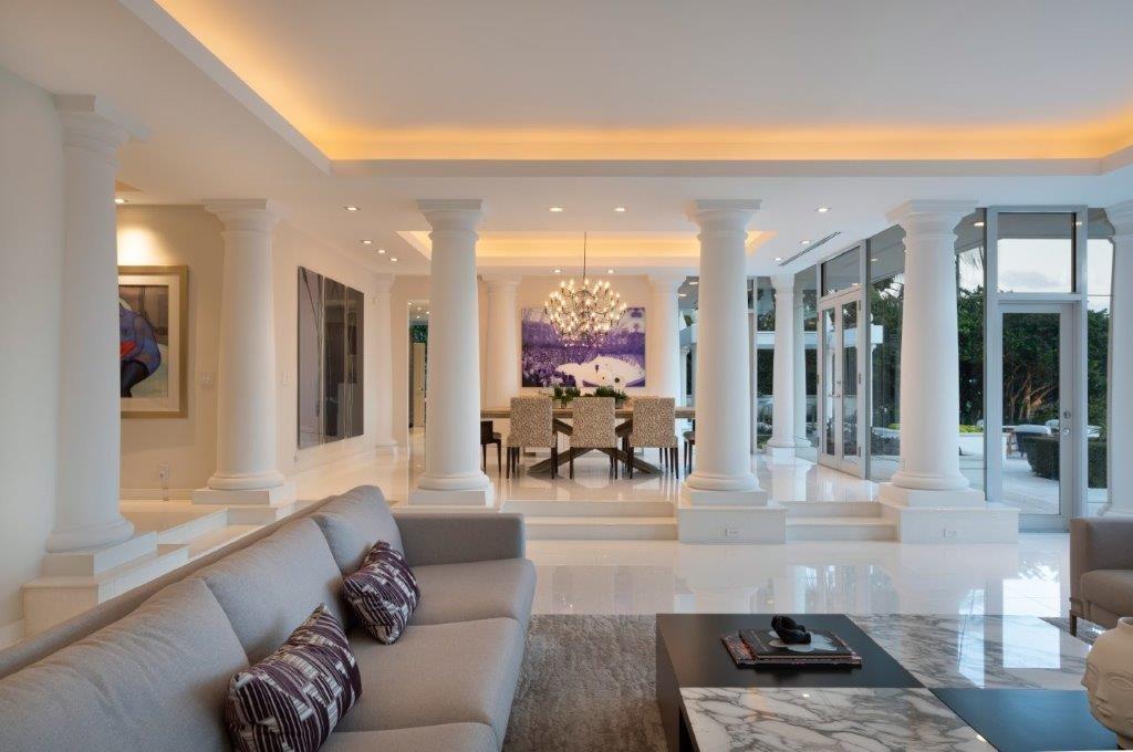 Stunning transitional waterfront estate located in prestigious Sunrise Key. Upon entering the home, you are embraced by wide water, Rio Barcelona, views through floor to ceiling glass windows and doors. Preferred southern exposure pours light into this custom estate reflecting on the white marble floors throughout. Modern Poggen Phol kitchen with Miele appliances including a 120-bottle wine refrigerator. Four generous ensuite bedrooms one of which doubles as a VIP suite with its own living room, breakfast bar, and private entrance. Primary bedroom with sitting area has floor to ceiling glass with spectacular panorama views and private balcony. Three car garage, 95' ipe dock and heated swimming pool. Dockage for large yacht, no fixed bridges with direct ocean access.