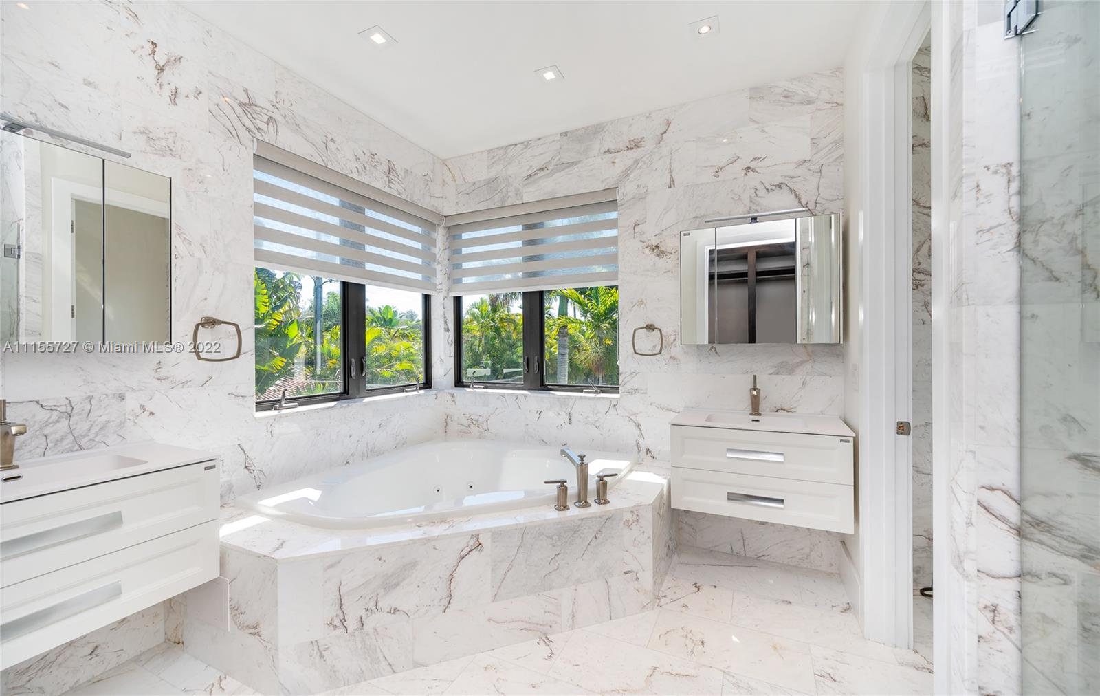 Beautiful modern house, backyard has space for a POOL. 4 Bed / 4.5 Bath nestled in one of the most desirable areas of Coral Gables, on a very quiet street, zero traffic, lined with trees producing a lush canopy. Conveniently located near US-1, Doctors Hospital, Merrick Park & Riviera Country Club. Built in 2018 with all the details & materials of modern architecture: Flat tile roof, Marble floors, Quartz countertops, ceramics in bathrooms, Italian wooden closets, impact resistant floor to ceiling windows & doors, recessed lighting, linear diffusers, motorized linen shades in living area, zebra shades & blackouts in all bedrooms. All 4 bedrooms have en suite bathrooms. 1 bedroom is on the 1st floor. Laundry Room is located on 2nd floor. Home has been impeccably maintained and move-in ready.