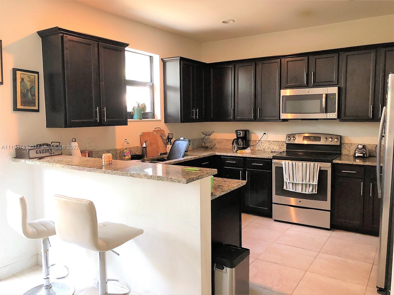 Comfortable townhouse with 3 bedrooms, 2 1/2 bathrooms, a few steps away from the biggest and newest Club House in Doral. Ample kitchen-family room with quality granite countertops and lots of cabinets, stainless steel appliances, hurricane impact shutters in all windows and external doors. The townhouse has lots of natural light and a fenced backyard, lake view from master bedroom. Short distance to Publix, restaurants and anchor stores. Short walk or bike ride to 2 stupendous new public parks and A+ schools. Easy access to Turnpike.