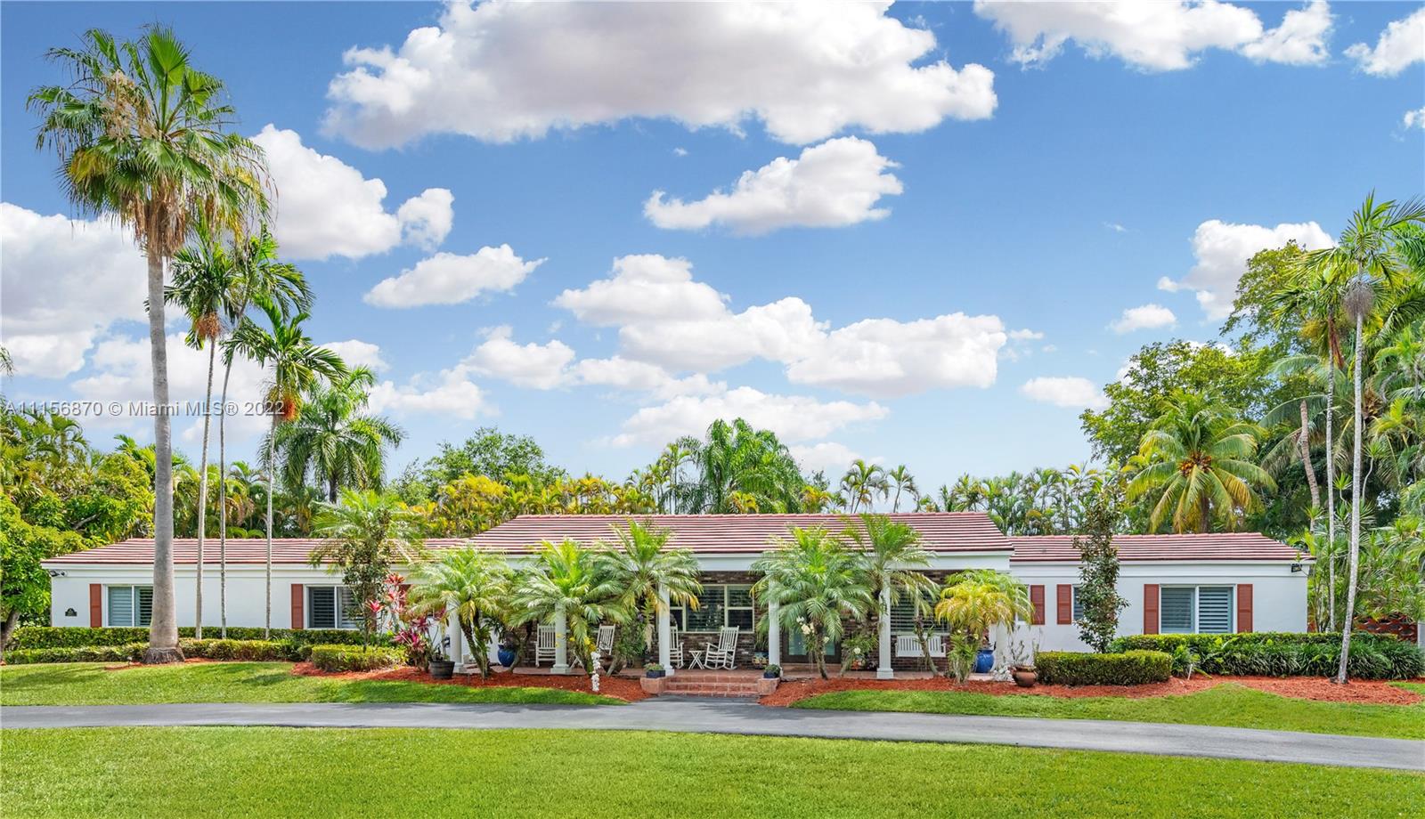 Sitting stately set back from the street on a 24,000 sq ft corner lot, this gracious one-story property offers over 3,600 sq ft of easy living. The updated and spacious home offers such features as 5 bedrooms plus a large guest suite, and a quiet built-in office. A charming front porch leads to a light and welcoming living room, then flows easily into a dining room, bright kitchen and comfortable family room. Entertain under the covered patio, and enjoy the private backyard and heated pool. Primary bedroom suite with large walk-in closet. 5th bedroom and bath could make a playroom or den. The guest suite features a kitchenette and separate entrance. Updates include all-impact windows and doors. Air conditioned garage/storage room. Tenant occupied until July 2022. Showings by appointment.