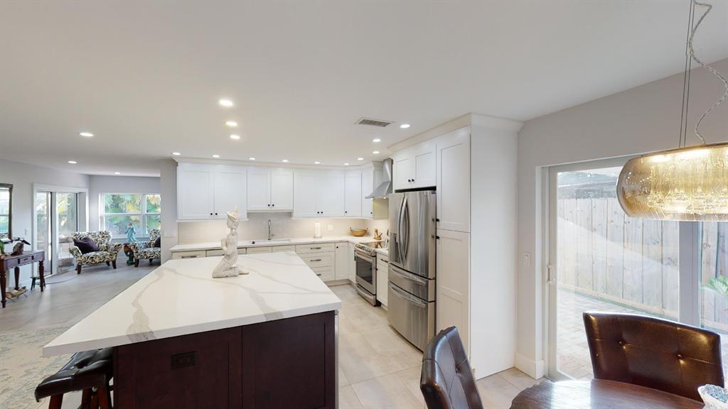 Just Listed New tile throughout. New kitchen with an enormous island for gathering (5ft x 8ft) and storage below. Bosch and LG appliances. New LED lighting through the home. Impact windows and sliders. Lite and bright. Solid wooden interior doors in a walnut stain. Blackout Blinds(com) roller shades in bedrooms. Skim coated ceilings. The garage is a two-car, however, a portion has been converted into an office accessible from inside the home as well as an open workshop area toward the garage door. So, room for one car but, Attic storage. There is a pergola on the west side of the home adjacent to a firepit for the not-too-common cold spells, great for marshmallows. An attached screened-in patio area is 22 ft ...