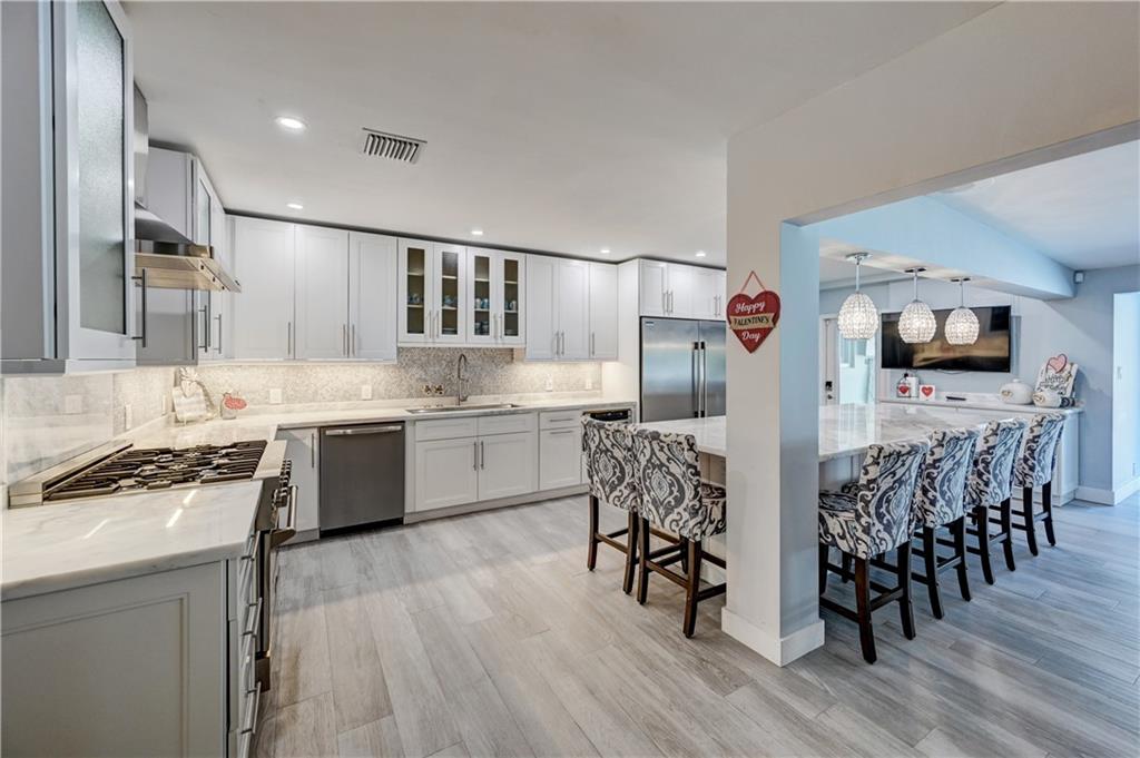 MULTI-GENERATIONAL HOME, SUBSTANTIALLY UPDATED!! MAIN HOME IS A COMPLETELY RENOVATED 3 BED / 2 BATH HOME W/ BRAND NEW PORCELAIN FLOORING THROUGHOUT LIVING SPACES, COMPLETE REMODELED KITCHEN WITH LARGE ISLAND FOR TONS OF SEATING, FINISHED WITH QUARTZITE TOPS & TILED BACKSPLASH, PAIRED WITH ALL NEW APPLIANCES TO INCLUDE A LARGE PROFESSIONAL REFRIGERATOR, GAS STOVE TOP W/ ELECTRIC OVEN & WINE COOLER. OVERSIZED LAUNDRY ROOM WHICH LEADS TO A TRUE 3 CAR GARAGE W/ SEPARATE WORK/STORAGE ROOM AND THEN FLOWS INTO THE MOTHER IN LAW SUITE WHICH IS A COMPLETE HOME WITH 2 BED / 2 BATH, ALSO SUBSTANTIALLY UPDATED. BOTH HOMES LEAD OUT TO A BRAND NEW PATIO W/ SALT WATER POOL W/ OVERSIZED SUNDECK AND OUTDOOR KITCHEN. TRULY THIS HOME IS UNIQUE. TOO MANY UPGRADES TO LIST, COMPLETE LIST UPON REQUEST.