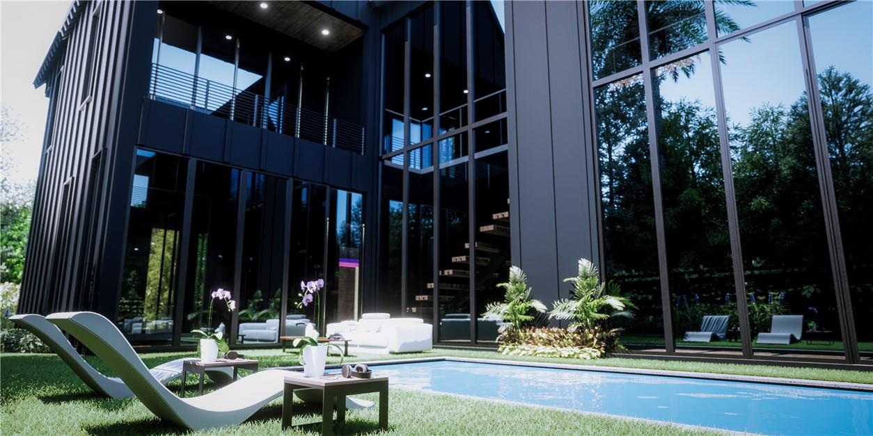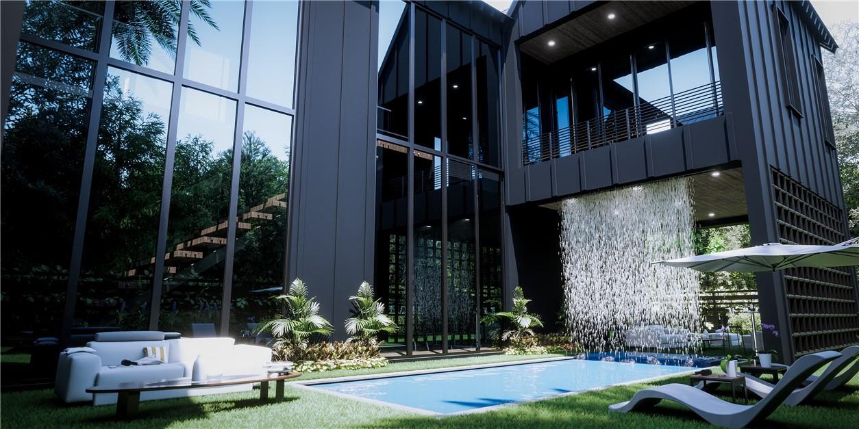 NEW CONSTRUCTION setting a new level of excellence with modern architecture & design. This one of a kind composition pairs function & esthetics, delivering a home conducive to today's lifestyle. The luminous open floor plan is enhanced by 2 story walls of glass, volume & 2 story ceilings & multiple doorways blending indoor & outdoor tropical living. A 1 story waterfall cascades from the ceiling of the covered patio into the oversized pool creating a wall of water separating the two areas. The 1st floor offers a culinary kitchen with large center island overlooking the great room & formal dining room, plus an ensuite bedroom & home office. The primary suite boasts 2 covered balconies lavish bathroom & walk-in closet. All bedrooms are ensuite & 2nd floor laundry. Sq. ft. from developer.