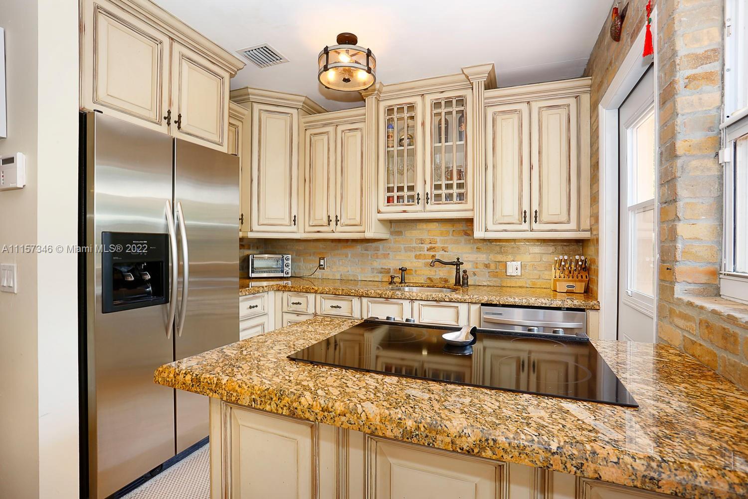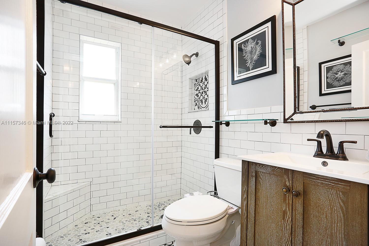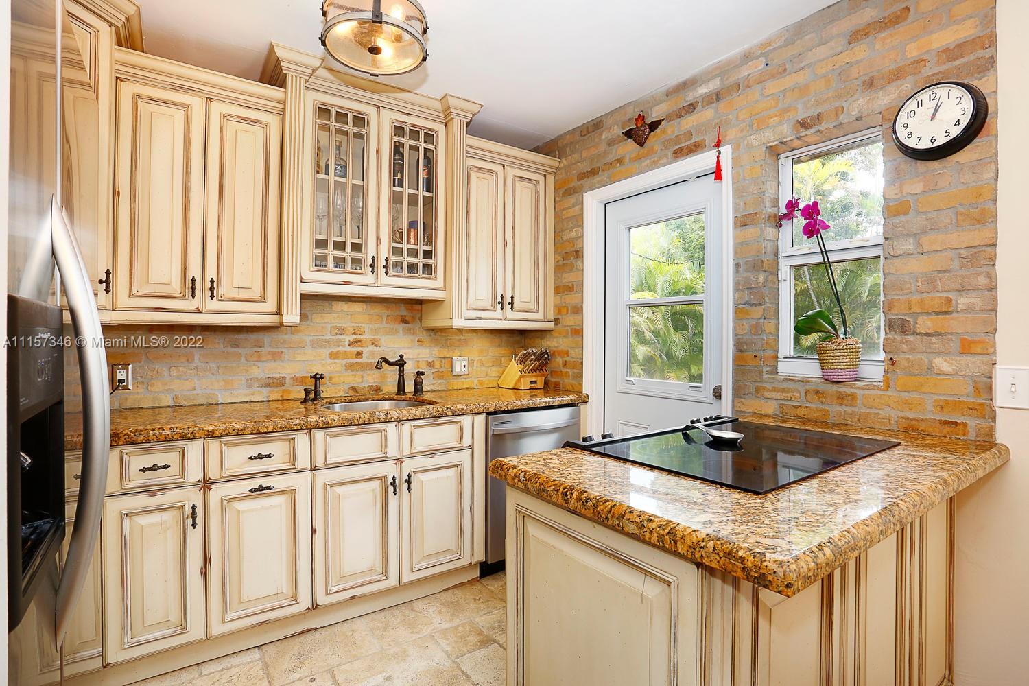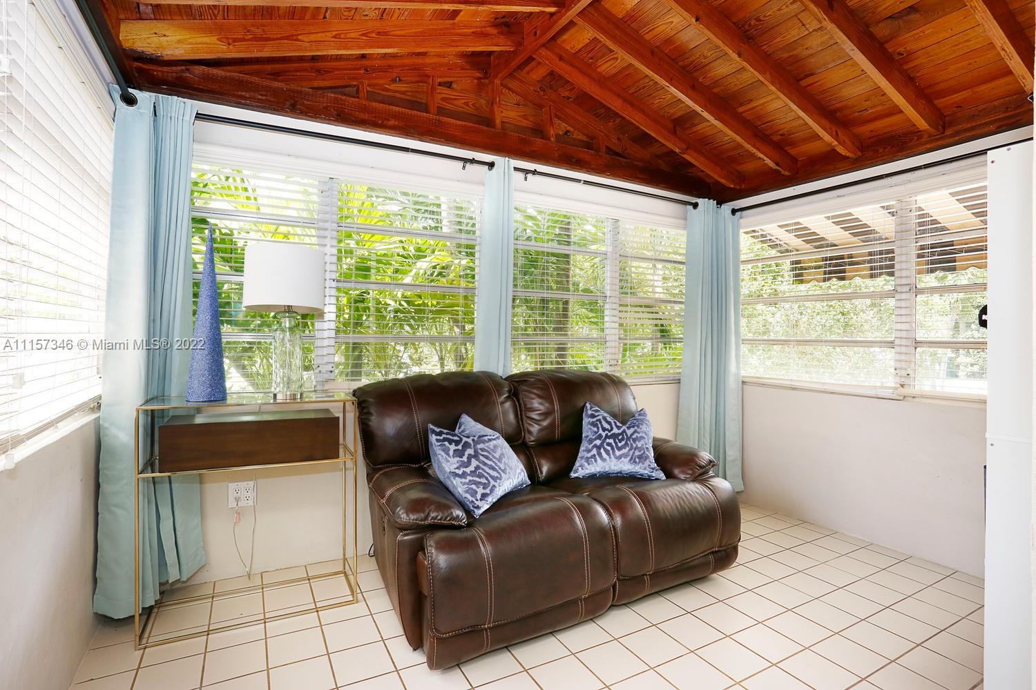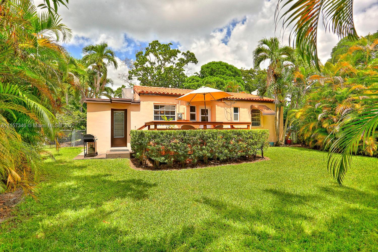 Gables home, filled with great design choices, a beautiful renovated kitchen and bath. Custom cabinets, stainless steel appliances, smooth cook top range w/microwave and conventional oven, granite counters. Kitchen opens to back deck. Closets have been maximized and customized! Lovely lighting features throughout. Spacious living room, fireplace and sunroom/den with open beam ceiling. Glass enclosed shower. Hardwood floors. Laundry room. Oversized, private yard, front porch, spacious driveway, lush landscaping and mature trees. Municipal water and sewer. Amazing location that checks off every box: lovely tree lined street, walking distance to Miracle Mile, fine dining and shopping just minutes from your door. Welcome home!